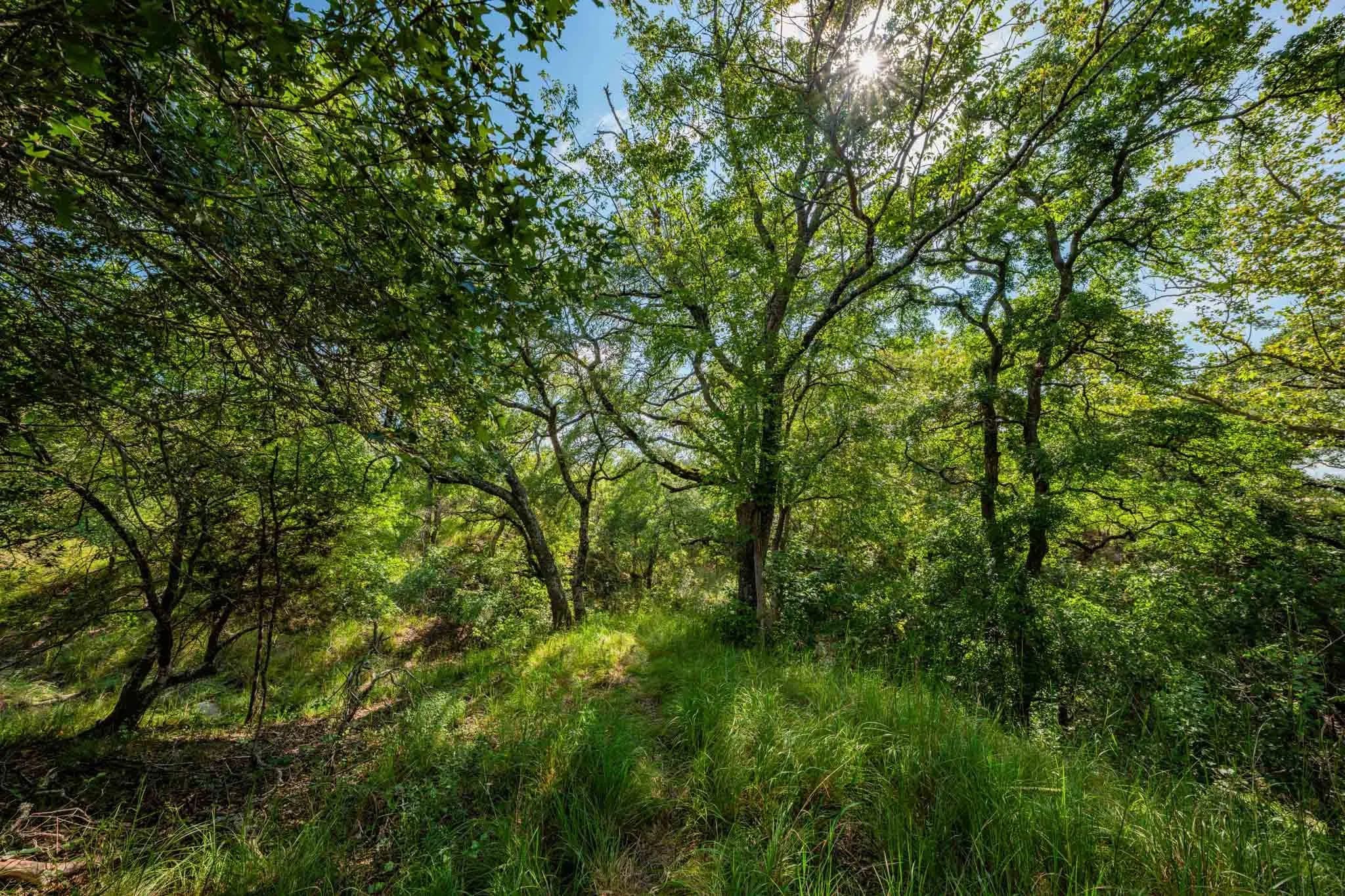 This incredibly diverse site features clean fields totaling 60± acres, with introduced and native grasses rolling down from RM 1888 to the Blanco River, backed by high, wooded hills offering distant views. Jeep roads provide access to most areas, with the high country being thick with shin oak and shrubs, and only limited cedar. There is a flint/chert quarry in the upper section of a canyon, and there are Native American sites throughout the property, including middens. A deep waterfall grotto with maidenhair ferns is spectacular, though seasonal, and a lake of 1 to 2± acres has never gone dry per the current owner, since its construction circa 1940. Hardwoods include cedar elm, Spanish oak, walnut, cherry, sycamore, heritage live oak, cypress, and a few pecan. Interestingly, the site is located within just a few miles of three river drainages, Blanco, Pedernales, and Guadalupe.