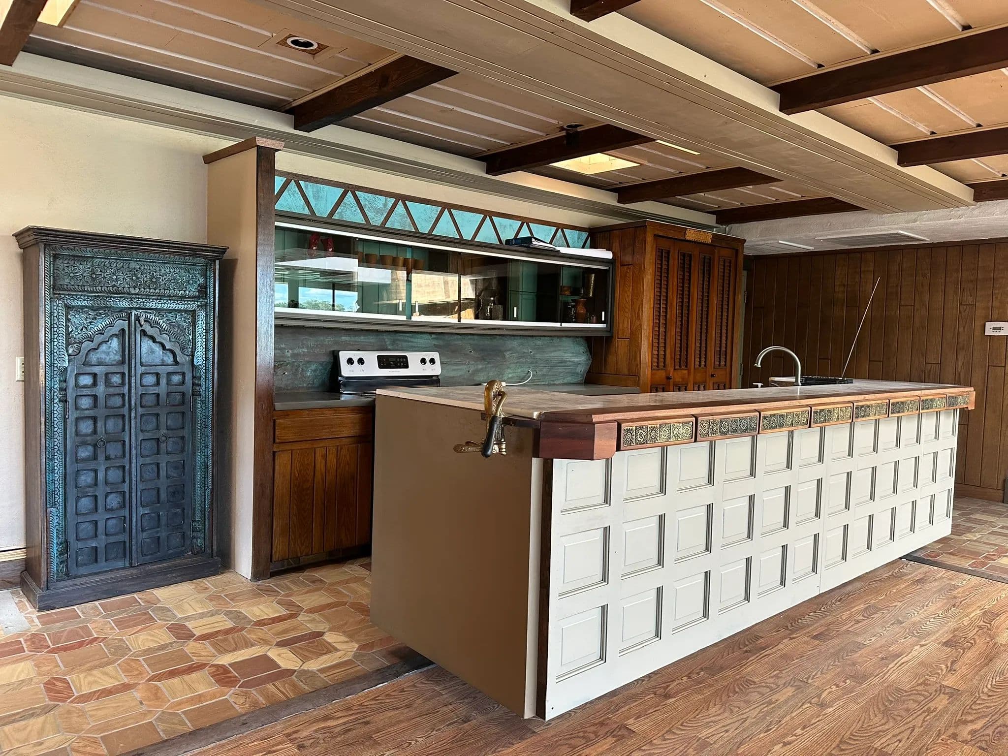 • Stucco wall structure surrounding the huge courtyard provides privacy from passersby