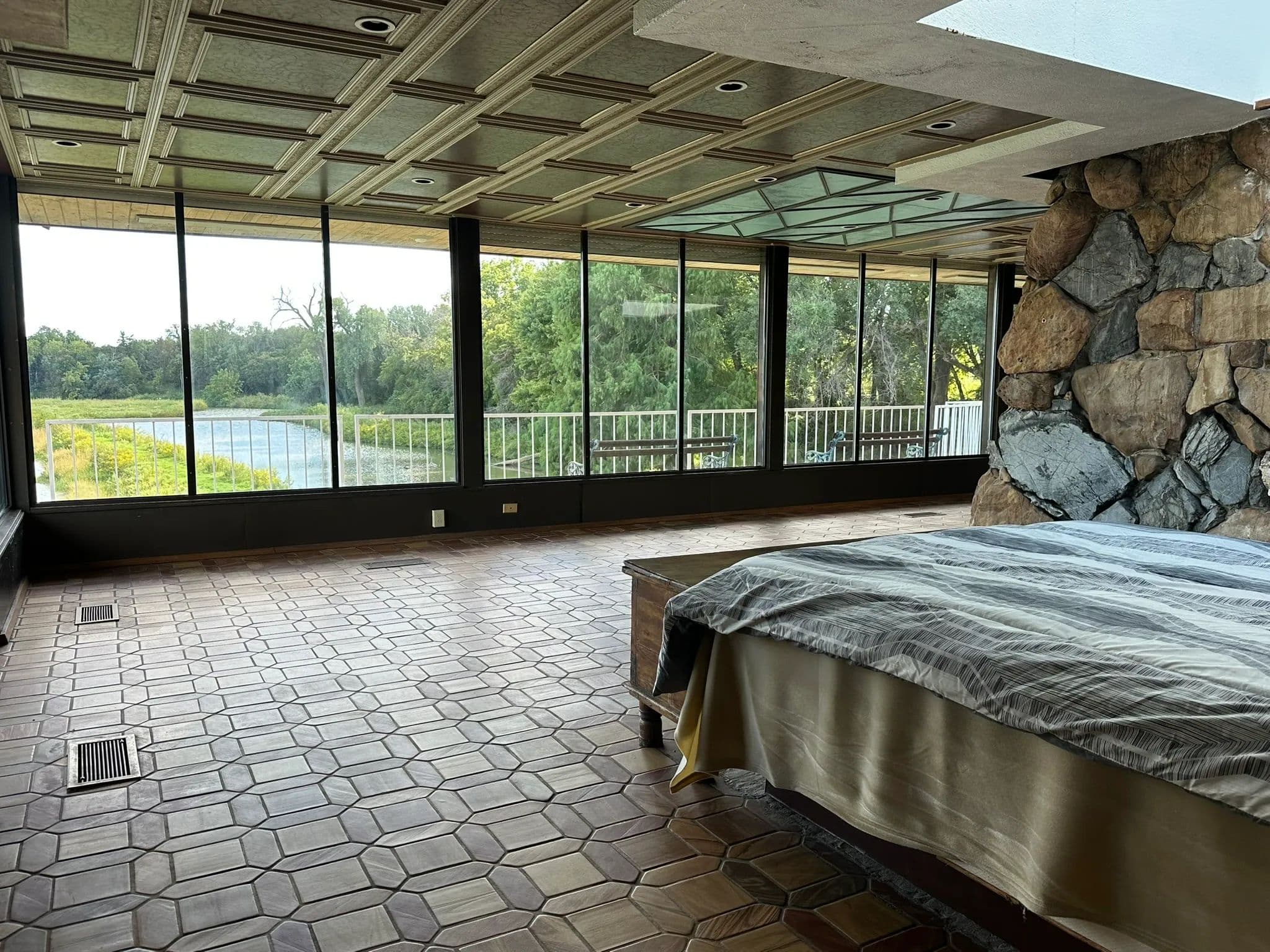 • 2,484 +/- SF of open concept, living space (designed for entertaining) with big skylights accentuating the massive, stone fireplace, 2 spacious rooms with floor to ceiling windows, & big bath with shower & sauna