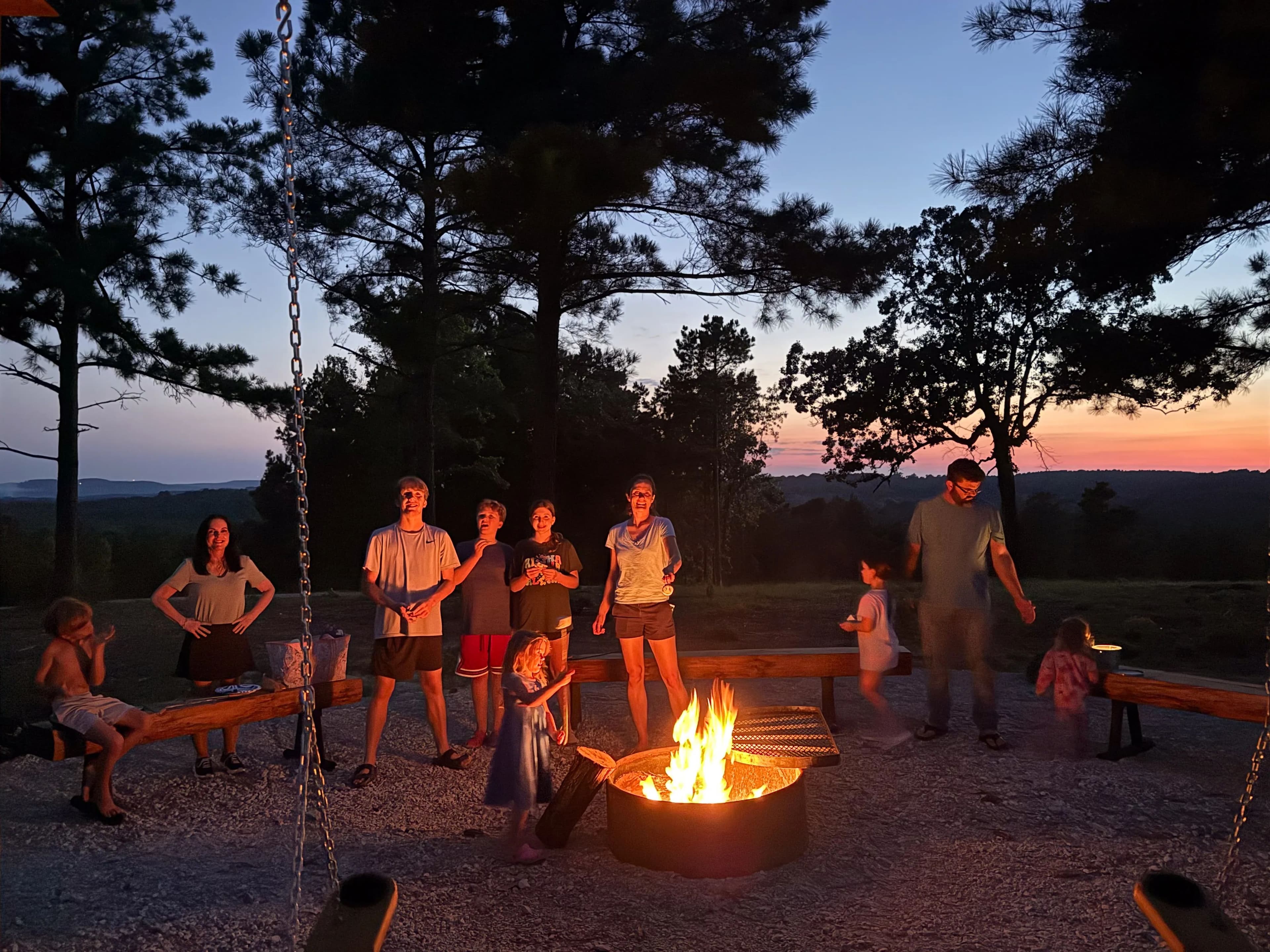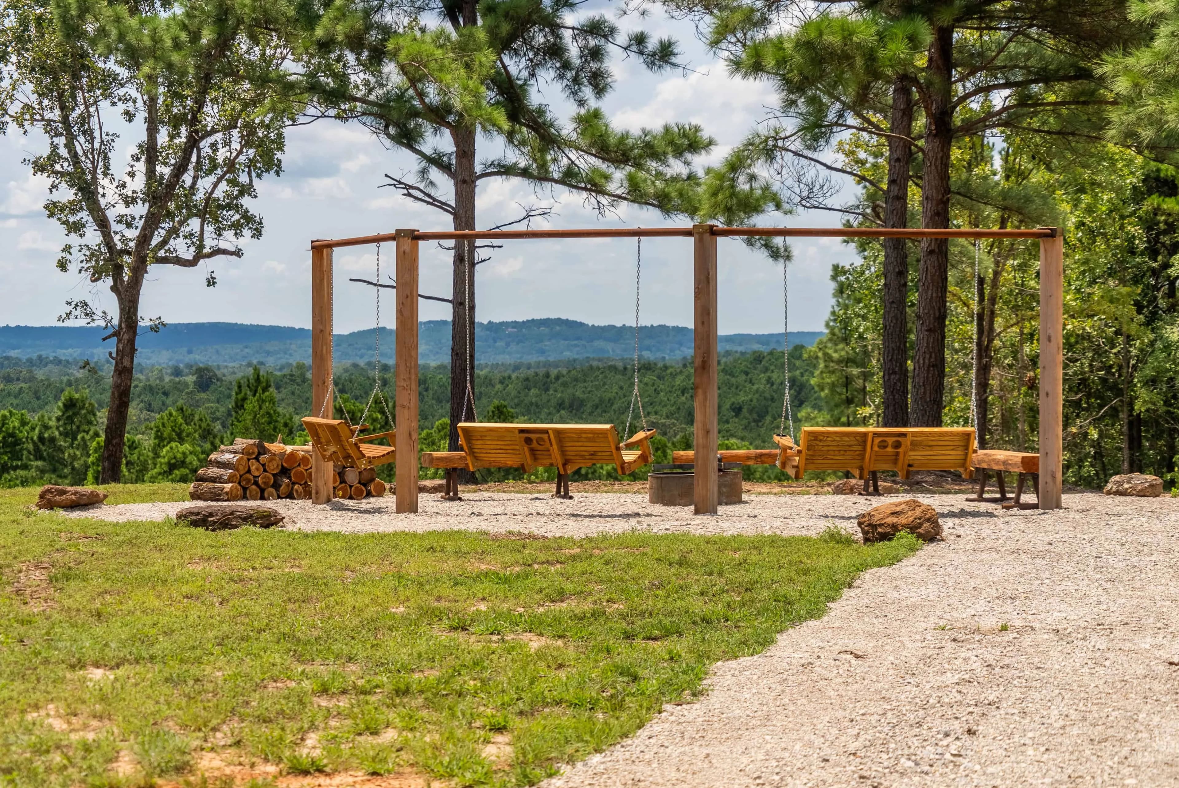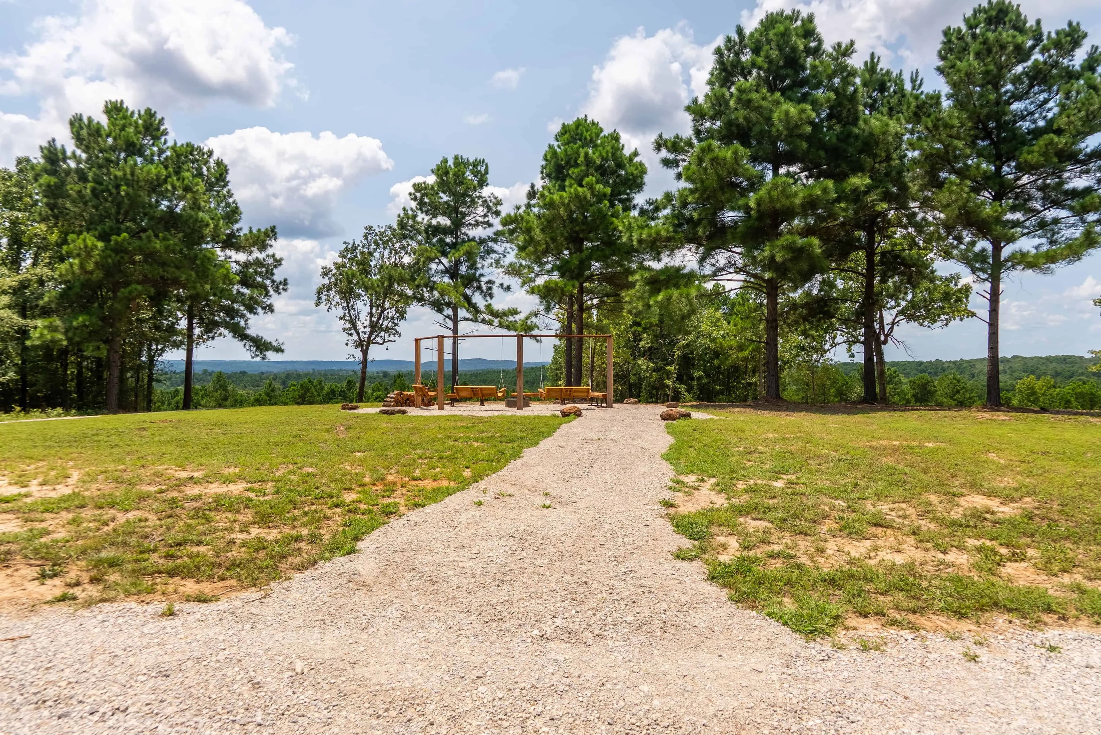 The land features rolling hills, diverse hardwood timber, and open spaces, creating a picturesque, green landscape with panoramic views. Miles of trails weave through the property, providing access for hiking, ATV and UTV riding, and exploring scenic lookout points across the ranch.