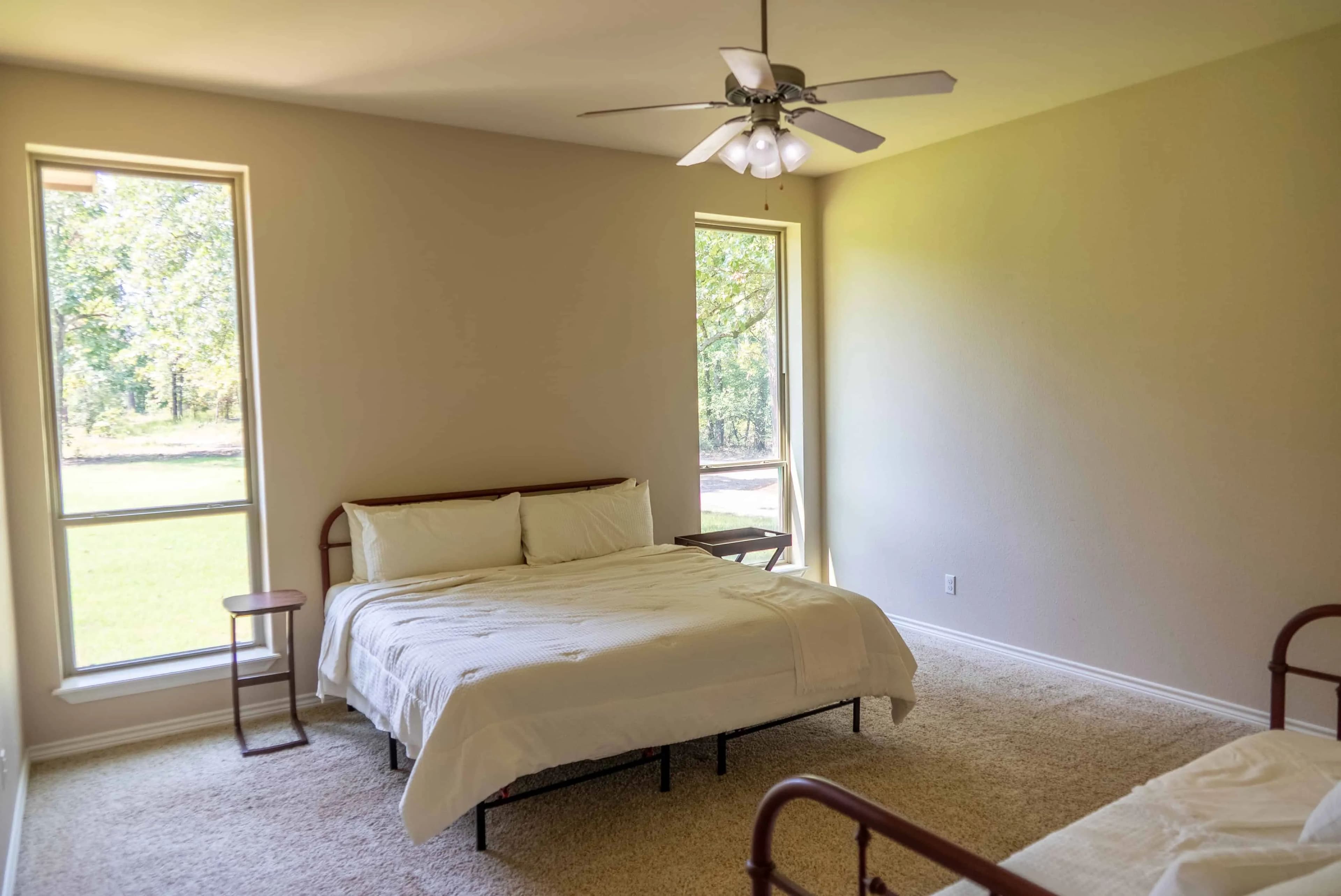 The ranch is highlighted by a 2,700± square-foot main home equipped with a wood-burning fireplace, central heat and air, high-speed internet, city water, and a Carrizo-Wilcox aquifer well. A Bob Ross-inspired guest cabin offers additional accommodations for guests or a private retreat. Outdoor amenities include a 400-yard shooting gallery with rifle, pistol, bow, and skeet stations, along with four deer blinds, four feeders, and two food plots. All-weather crushed limestone ranch roads provide reliable access throughout the property.