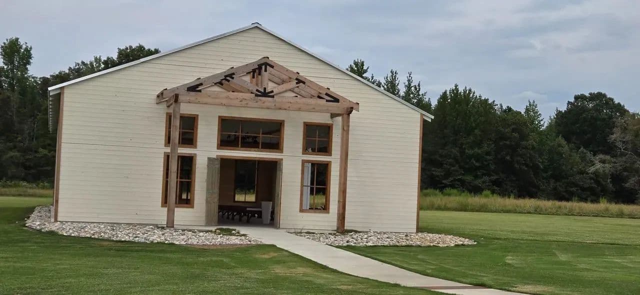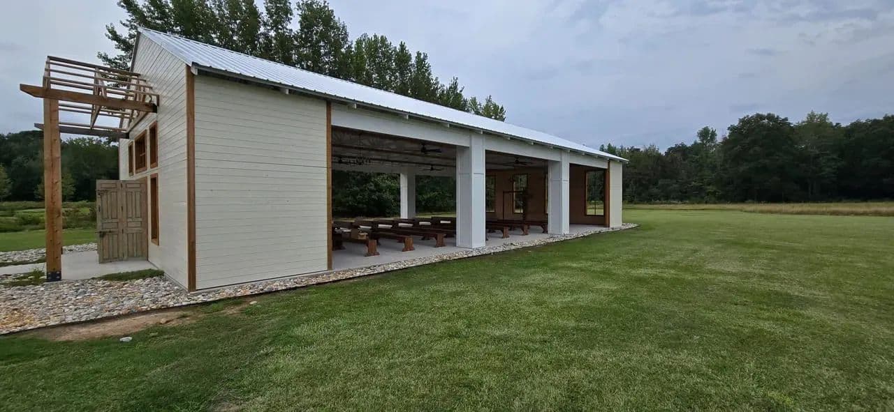 Anchoring the estate is a 4,808 SF two-level venue barn, complete with a groom’s quarter, bride’s quarter, and a fully equipped industrial kitchen. Just outside of the barn is a spacious open-air pavilion, perfect for ceremonies, receptions, or seasonal events under the Arkansas sky.