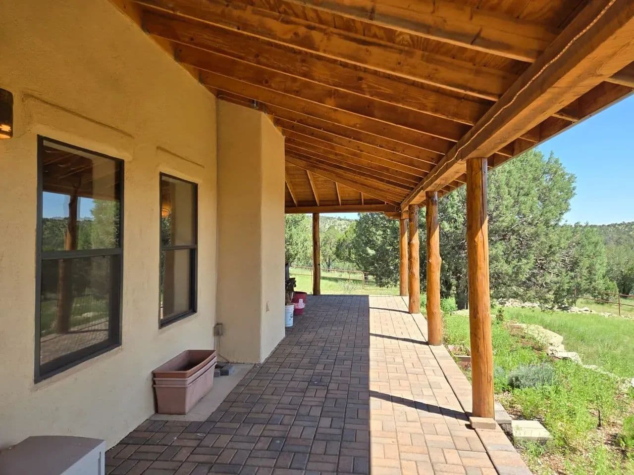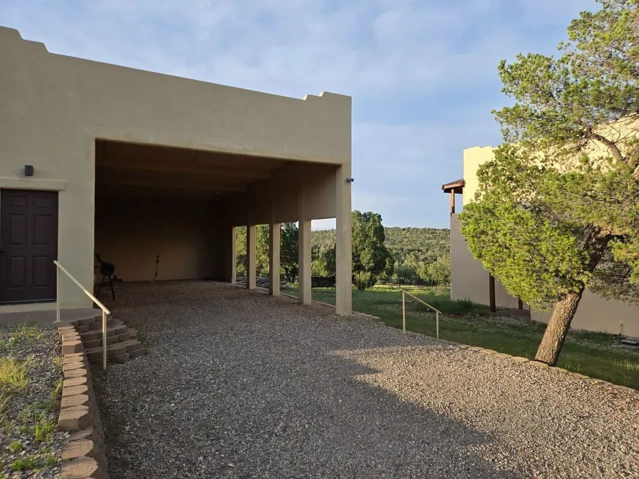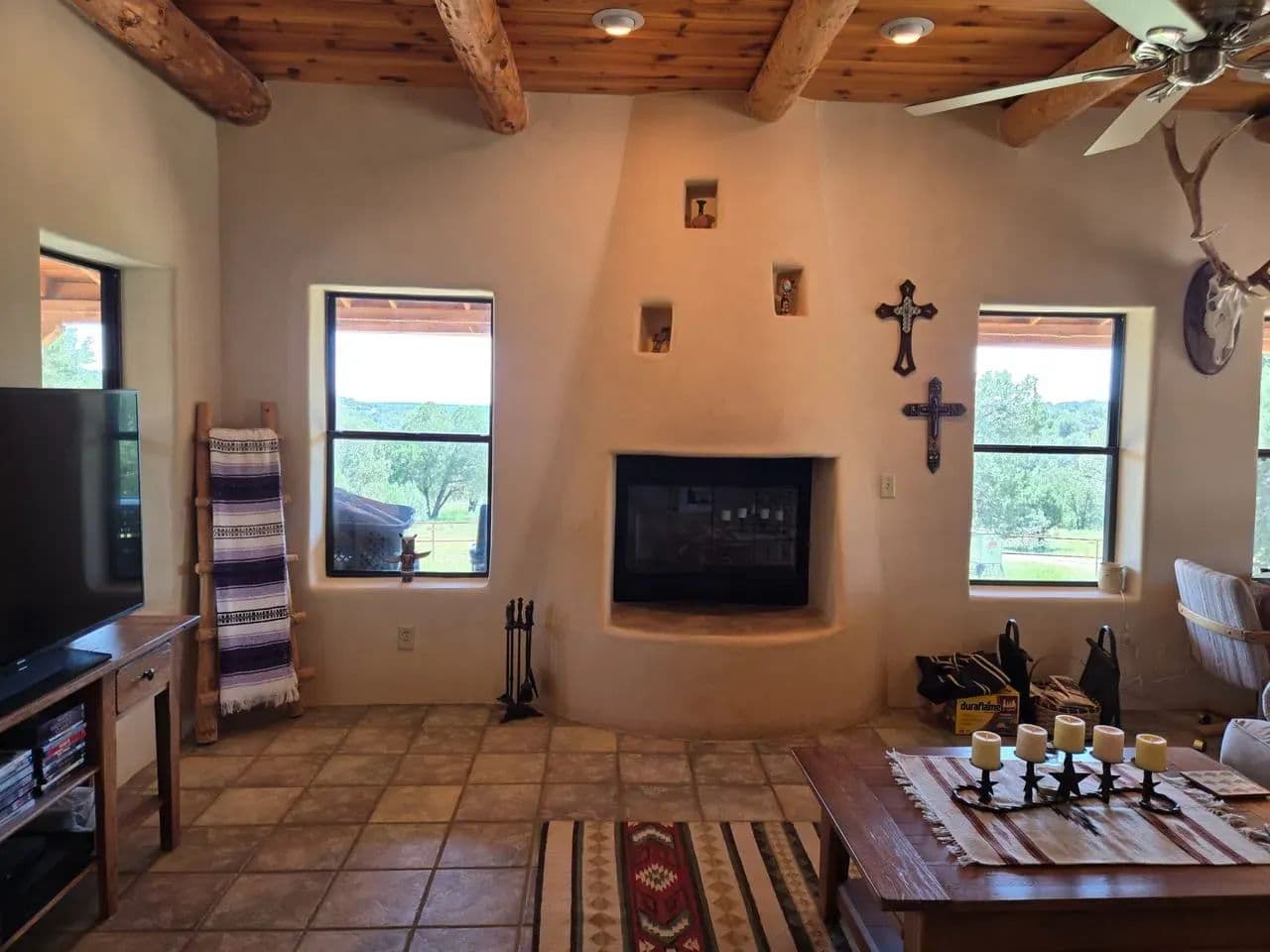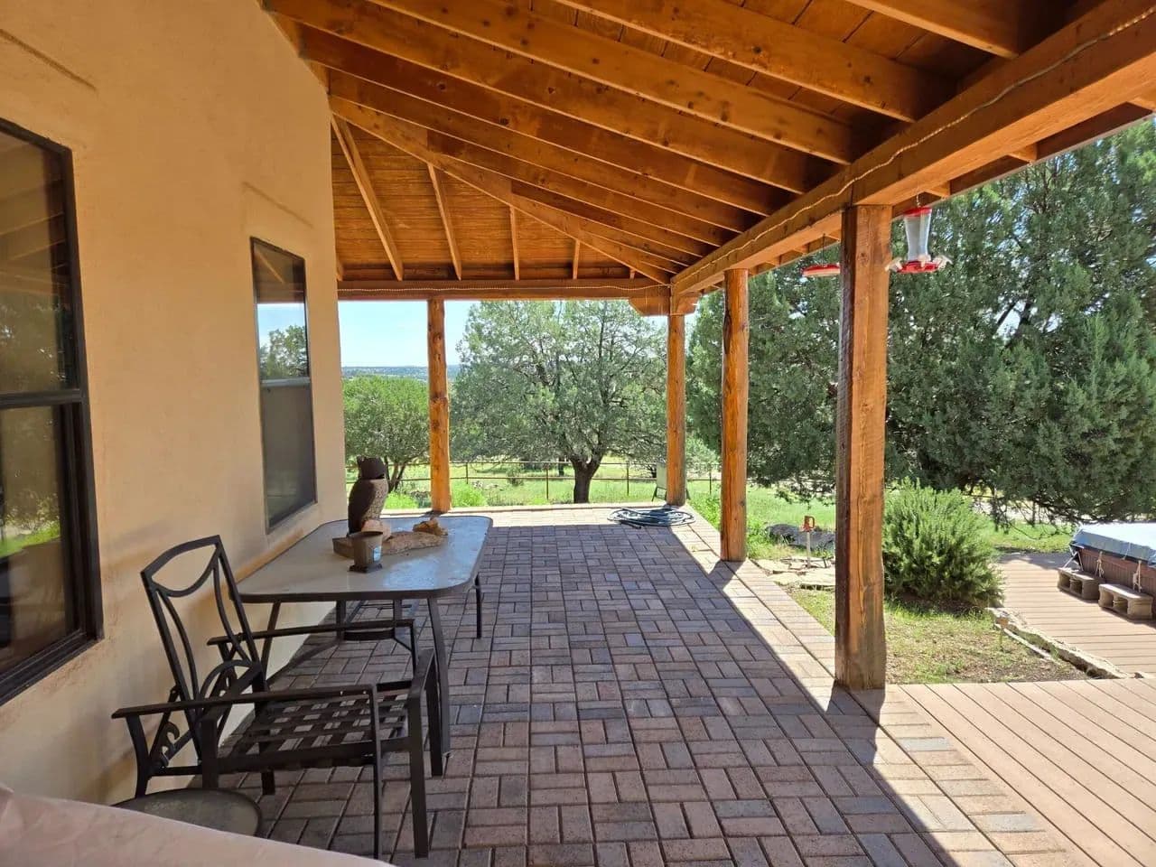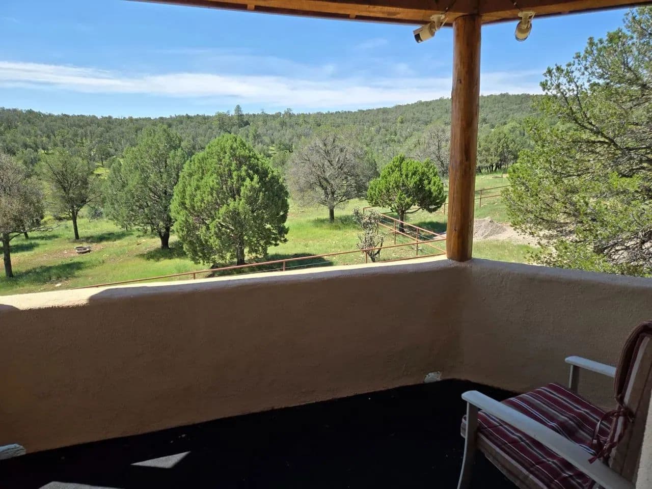 This 80 acre (+/-) secluded and unique estate is enveloped on 3 sides by the vast & breath-taking Lincoln National Forest, and features an enchanting 2,538 sq.ft. Spanish-style Hacienda. This luxury custom-built home is a perfect place to enjoy a stunning Southwestern sunrise cozied up next to the the Kiva-style fireplace under a vigas structured ceiling, encircled by mother nature at her best! Relax and unwind on the covered wrap-around veranda, that extends into a built-in deck and soak in a steamy jetted hot tub glimmering under star-filled skies.