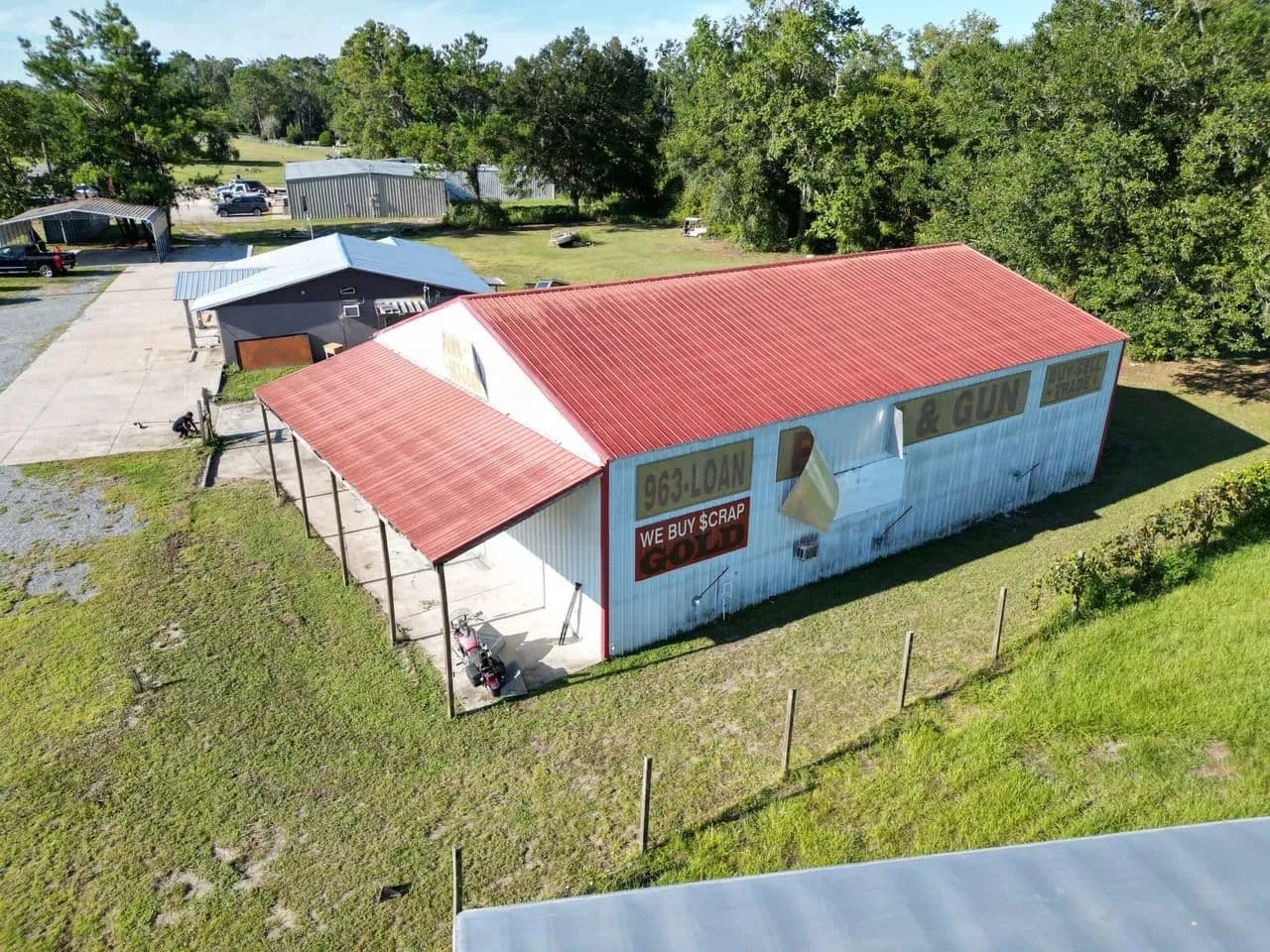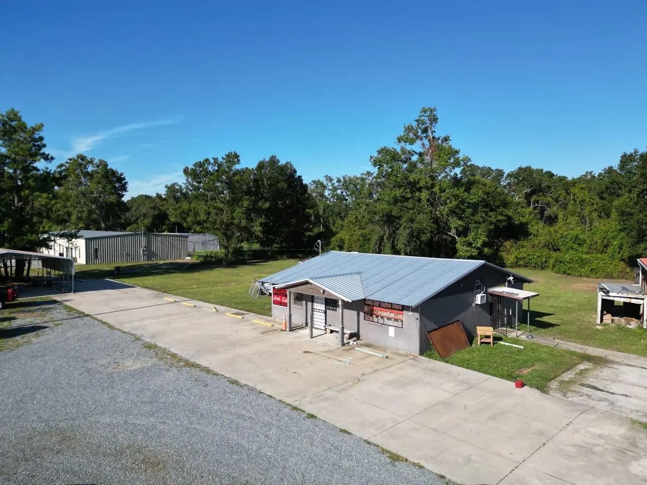 Prime commercial opportunity in Wellborn, Florida. This 1.4-acre property sits just behind the Busy Bee Gas Station and Dollar General at the corner of US 90 and CR 137, offering excellent exposure and convenient access to Interstate 10. The location benefits from steady traffic and strong visibility, making it an ideal spot for a wide range of businesses. The property includes three functional buildings ready to serve multiple uses. A 40' x 60' warehouse-style metal building provides generous space with electric service already in place, making it suitable for storage, light industrial activity, or operations. A 1,521 square foot brick building with a brand-new metal roof has previously been used as both a pawn shop and car dealership, offering a flexible layout for retail, office, or showroom needs. In addition, there is a 30' x 30' metal carport with water access, a convenient setup for vehicle washing or outdoor workspace. With paved county road frontage, proximity to established businesses, and room for parking or expansion, this property is well-positioned for entrepreneurs looking to establish or grow in a thriving North Florida community. Its combination of acreage, infrastructure, and strategic location provides the foundation for a variety of commercial possibilities. Whether you envision retail, automotive, service-based, or mixed-use operations, this versatile property delivers the space and access you need to succeed.