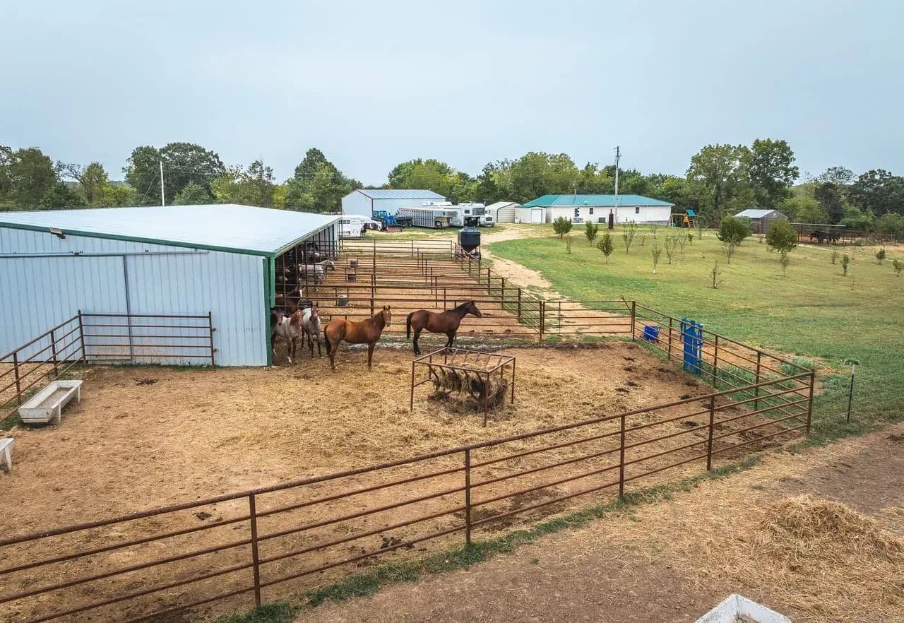 Discover 107 m/l acres of prime ranch land offering the perfect mix of open pasture, marketable timber, and abundant live, spring-fed water with multiple ponds. The property is well-equipped for livestock with a 30x120 barn featuring eight 30’ runs and four automatic waters, plus an additional automatic water servicing two pastures without natural access to water. A 30x40 shop provides excellent space for equipment and projects. The 1,800m/l sq ft ranch-style home is designed for efficiency and comfort, featuring 4 bedrooms, 2 full baths, and a tornado shelter conveniently located in the garage, wood burning fireplaces and beautiful Hickory cabinets. For equestrian and rodeo enthusiasts, the property boasts a 250x140 roping/riding arena with a 10’ return alley, perfect for training or events. Located just across the road from an access point to the Osage Fork of the Gasconade River, you’ll enjoy excellent fishing, floating, and outdoor recreation. With its versatility, natural beauty, and thoughtful improvements.