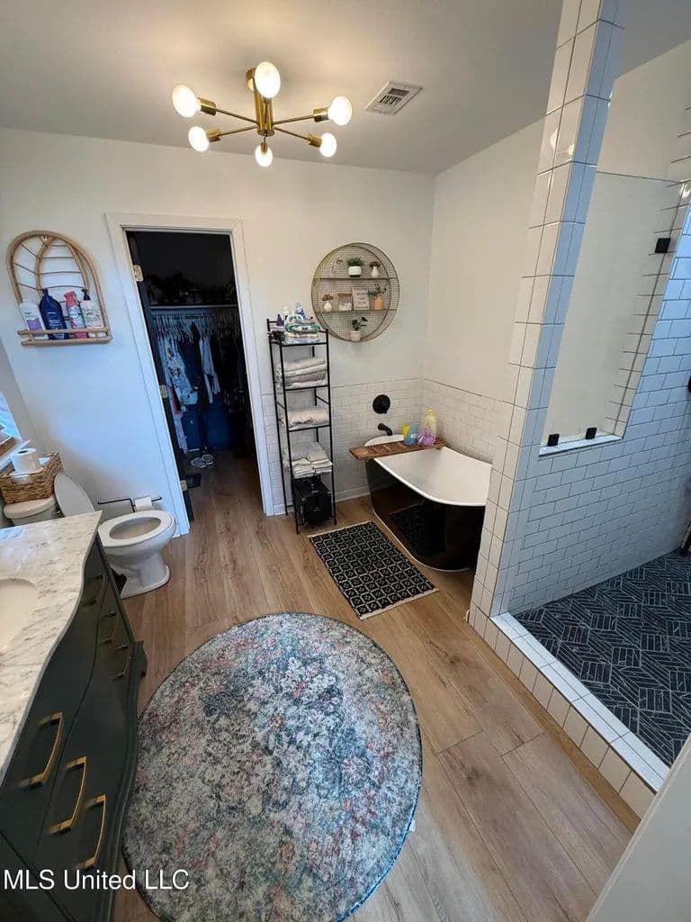 Upstairs, you'll find three inviting guest bedrooms and a modern guest bath. The front guest bedroom boasts a storybook-inspired vaulted ceiling, while the master suite includes its own vaulted ceiling and a cozy loft — perfect for storage or a reading nook. The master bathroom offers a standalone tub and follows the same modern design style found throughout the home.