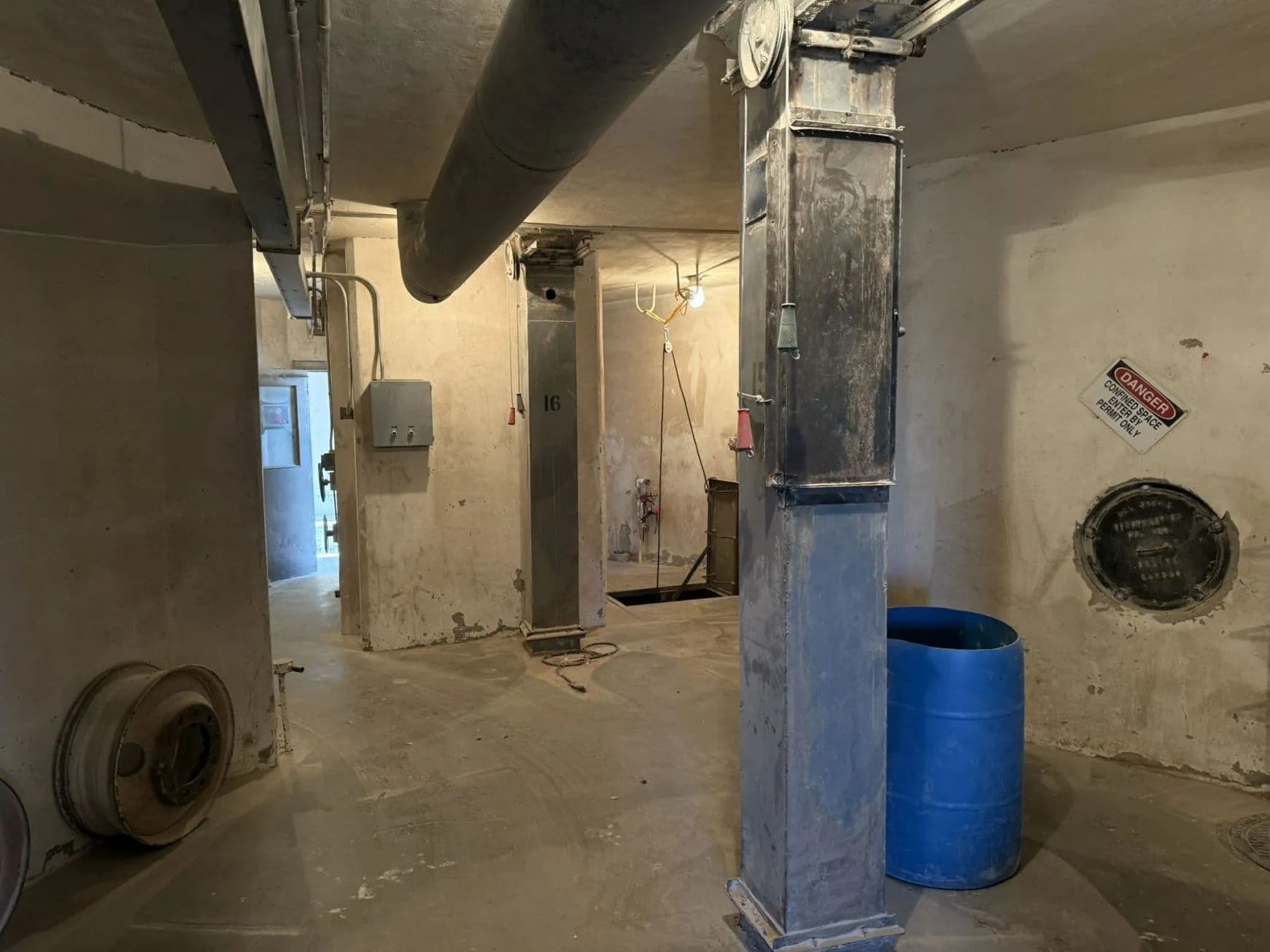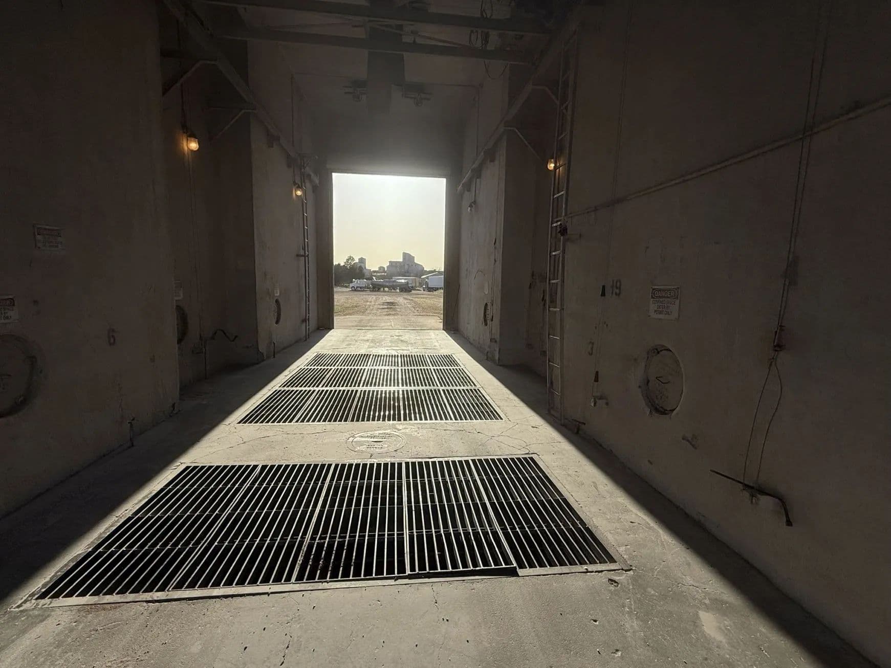 Concrete drive-through elevator with two grain pits