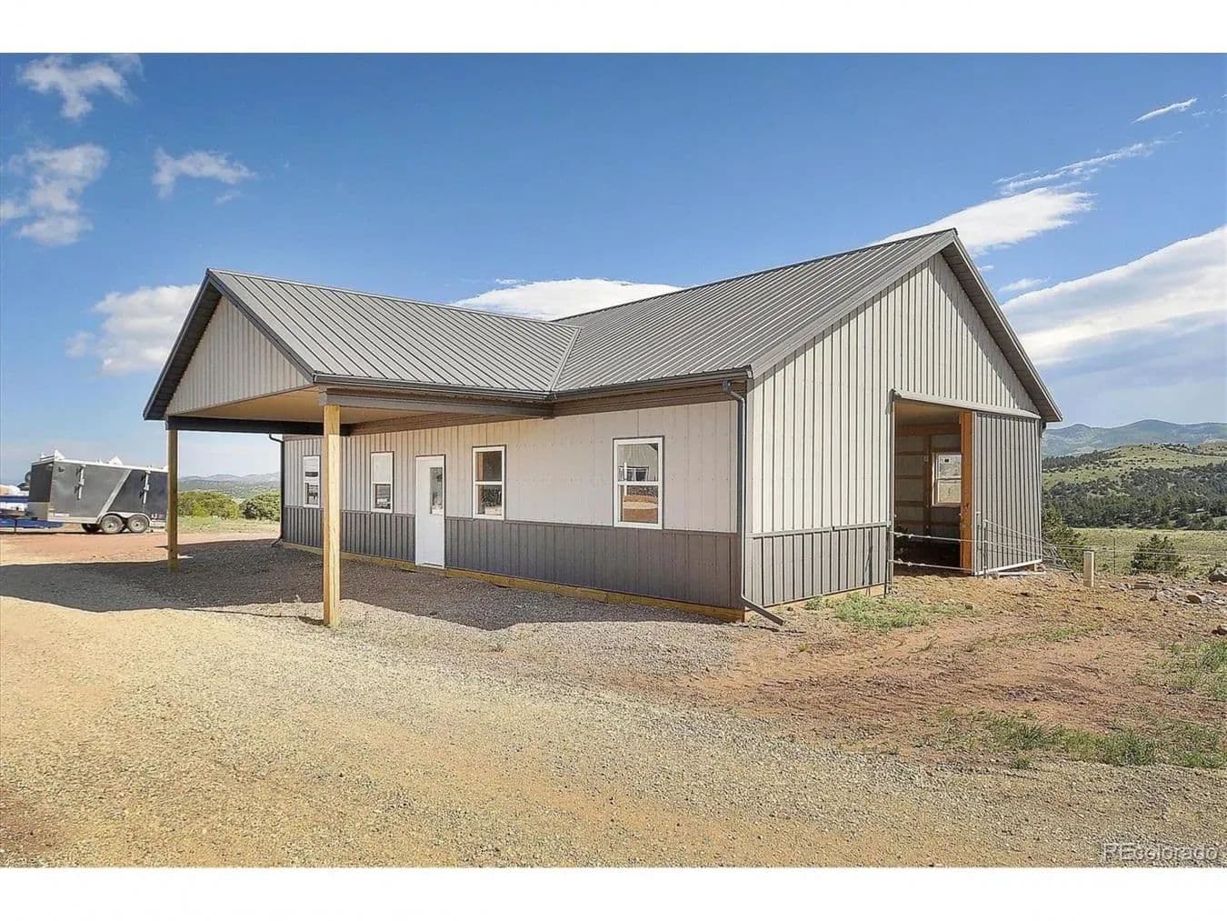Escape to peace, privacy, and self-sufficiency in this gorgeous 2022-built home, designed and built by a master mason, with 2x6 construction and spray foam insulation for ultimate comfort and efficiency. Set on 37 acres of serene land, this home offers breathtaking views of the Sangre de Cristo Mountains-all with no HOA restrictions! A massive solar system and generator provide reliable, sustainable energy, ensuring a low carbon footprint and off-grid independence. Inside, the main-floor primary suite features a spacious walk-in closet, while the chef's kitchen boasts dual sinks, custom cabinetry, ample counter space, and stunning mountain views. The dining area's sliding doors lead to a large patio, perfect for BBQs and al fresco dining under the vast Colorado sky. Need extra space? The HUGE 44x48 multi-purpose room includes a second kitchenette and opens to a covered 12x44 porch, offering endless possibilities-entertain, create, or relax! Radiant in-floor heating, on-demand hot water, reverse osmosis, and a water softener are just a few of the thoughtful systems in place. Car enthusiasts and hobbyists will love the attached 28x60 pass-through garage, with room for up to six vehicles. Horse lovers and ranchers will appreciate the 34x38 barn with space for six box stalls, plus five automatic waterers spread across the property. Enjoy easy access to shopping and dining in Westcliffe, with hiking, fishing, white-water rafting, skiing, and more just a short drive away. Fly in and out of Westcliffe's own community airport or take a scenic drive along Hardscrabble Pass to Canon City, Pueblo, and Colorado Springs...all within a 1 to 1.5 hour drive. This one-of-a-kind property is ready for you to live, work, and thrive-call today to schedule your private tour!