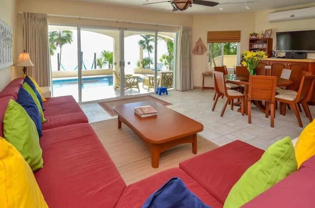 Margarita Villa includes a 6 bedroom, 6 bath home with 5,046 square feet and hosts up to 12 adults, an unlimited amount of children and designed for everyone of all ages. As you walk in, you see the living room, pool, beach, ocean, the reef and then the horizon and this feeling comes over you that you are home and on vacation! And yes, this incredible property comes completely furnished with all furniture, kitchen wares, patio furniture, kayaks, paddleboards and so much more. The bay is protected by a natural coral reef, eliminating large fish, waves and currents. The beach is wide and shallow and perfect for young children and for wading in the warm water all year round.