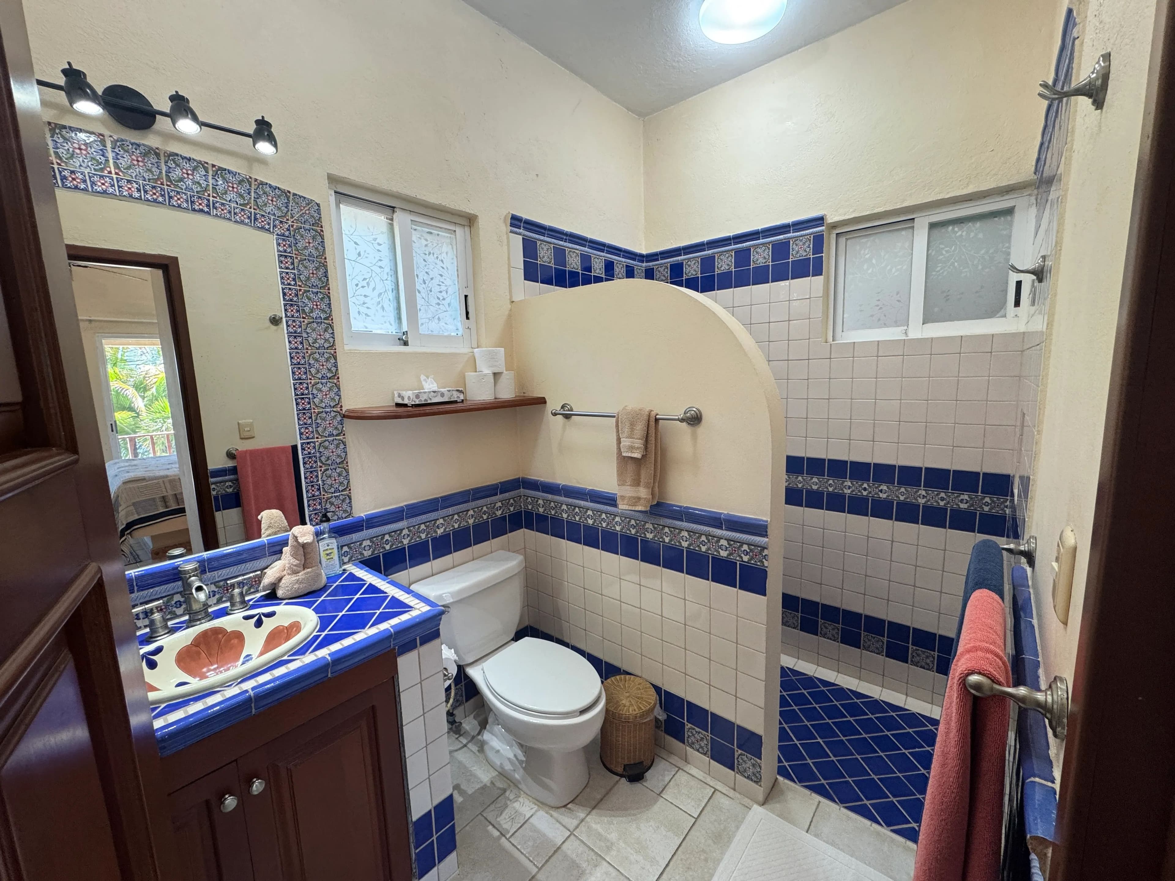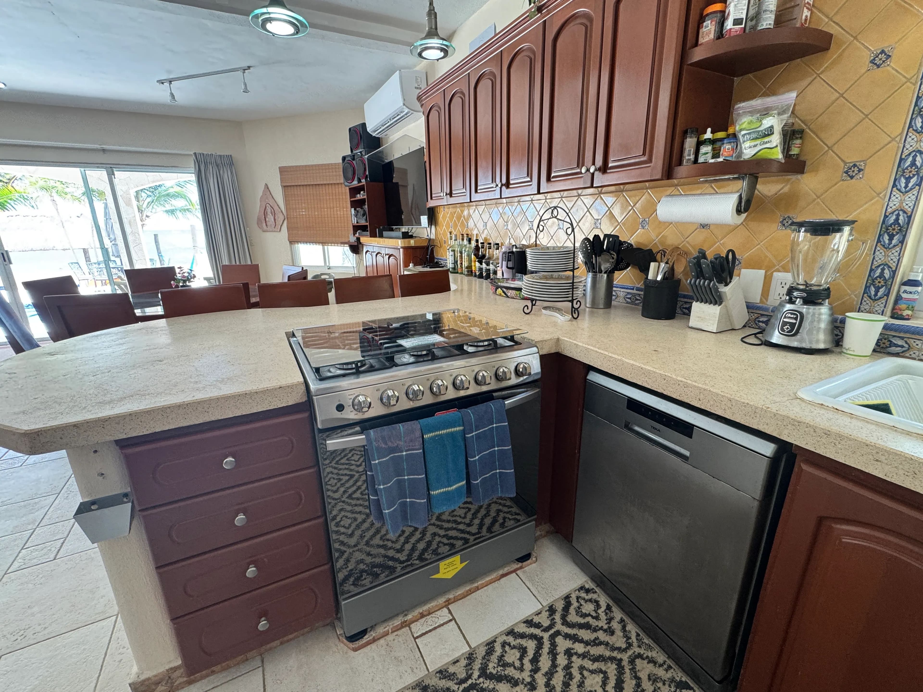 The house is very comfortable in the summer because it is on the water and always has a breeze. Restaurants and shopping are very close – Mantarey Restaurant and Pandano Restaurant are walking distance, with other restaurants in Tulum just 20 minutes away, Playa del Carmen 45 minutes, Akumal 20 minutes, and Cancun 60 minutes away. Restaurants, scuba, shopping and water parks are a big part of the local draw. Xel-Ha is awesome and one bay north of us! Tulum airport is 20 minutes away. Eco-Sheek is very big in the Tulum area.