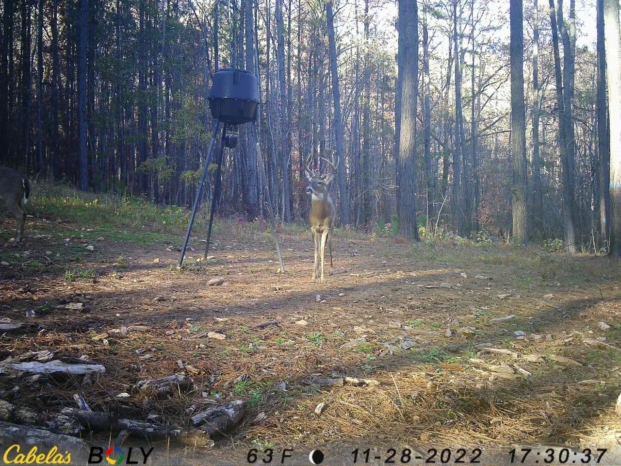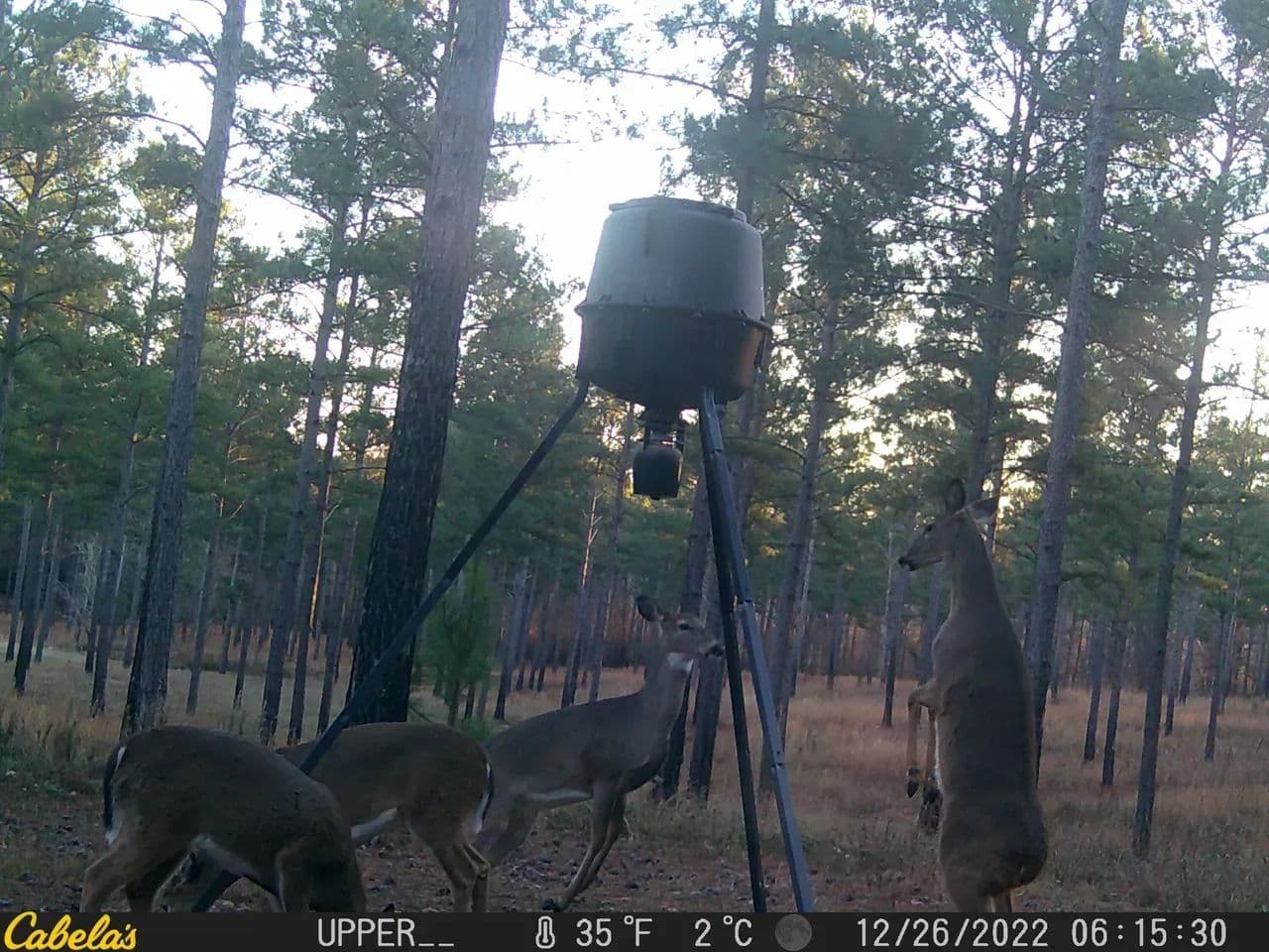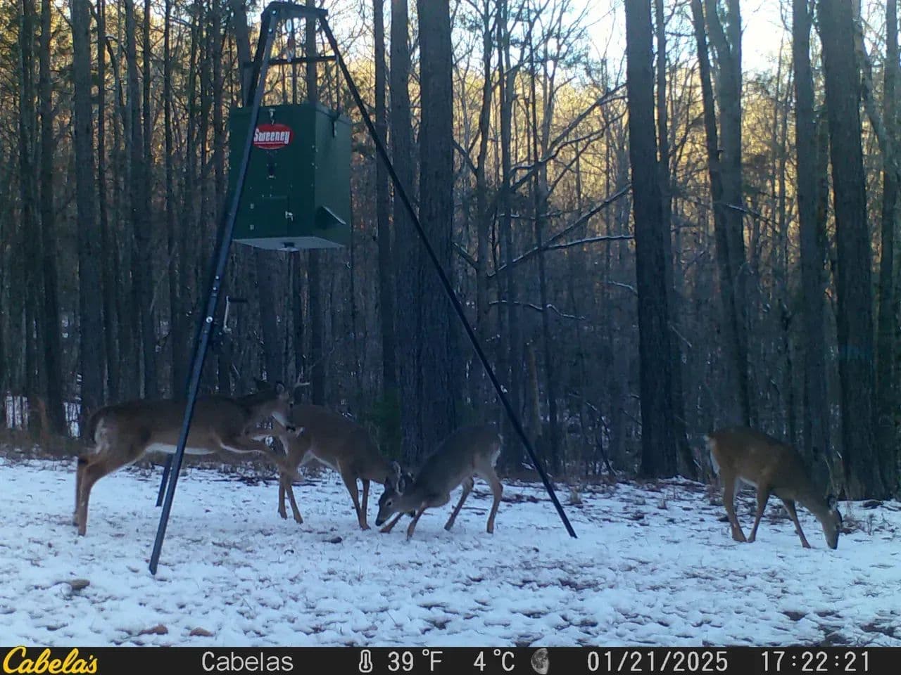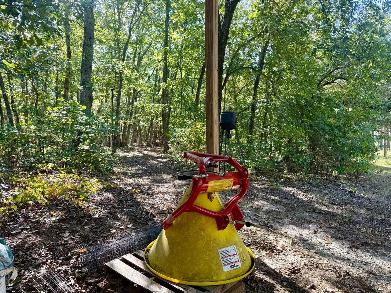 8' tall 5x8 Fat Boy Blind with metal roof, stairway and hand rails purchased in 2022. Feeders, portable deer stands, 2 ground blinds, deer processsing tripod, and trail cameras included.