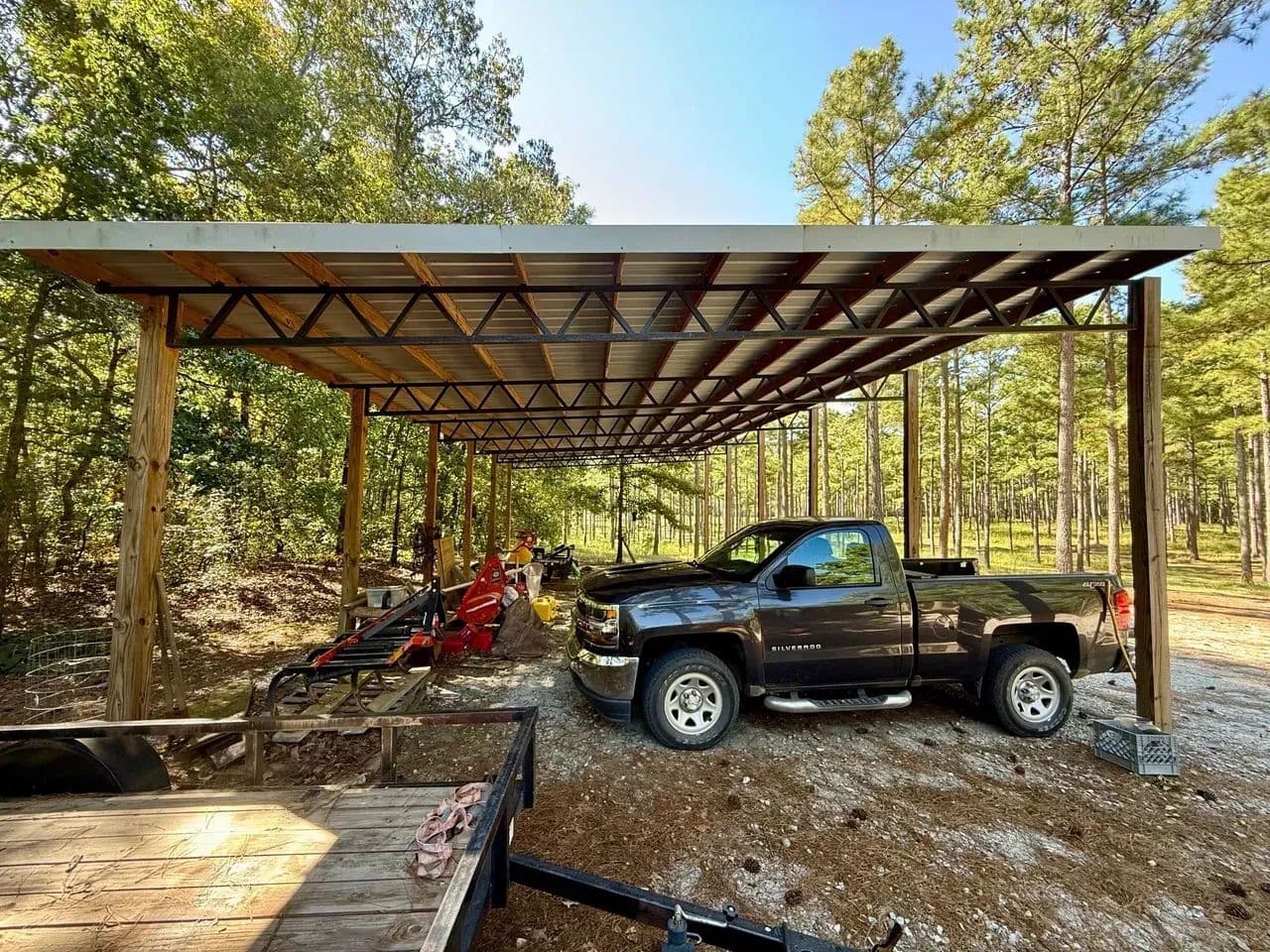 60'x25' open pole barn for equipment, vehicle, and tractor storage