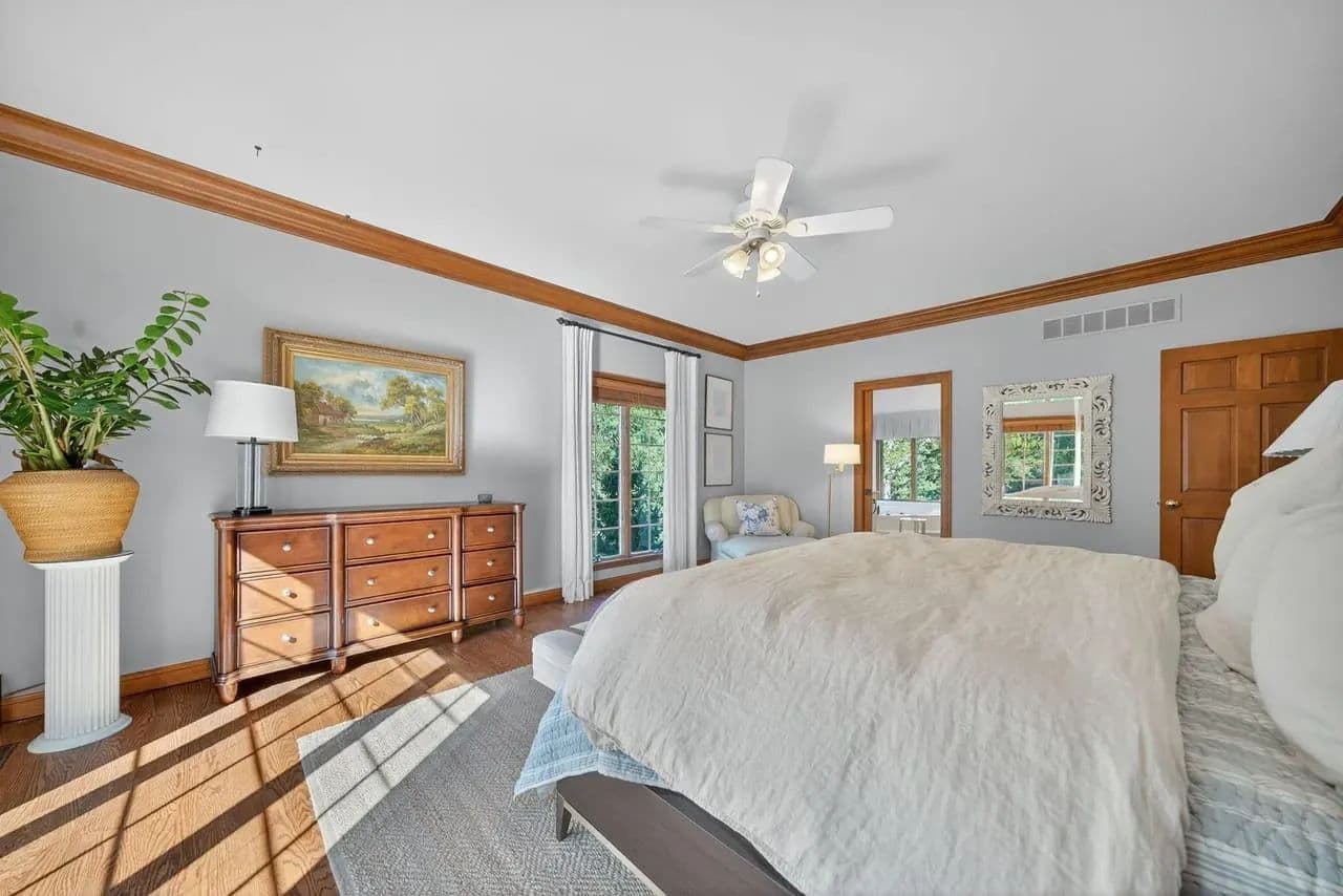 Welcome to your Dream Lake Home in the Heart of Chesterfield; nestled on a picturesque 3-acre lot along a serene lake. Surrounded largely by undeveloped land, this property is truly one-of-a-kind, blending comfort & outdoor living in perfect harmony. Thoughtful updates throughout: main flr primary suite, main flr gleaming hardwood flrs, custom moldings, solid wood doors, 9’+ ceilings & surround sound. The 2 sty foyer is flanked by a well appointed dining rm, a sun-drenched sitting rm & leads to the vaulted great rm. Center stage is the gorgeous stone fireplace along w/ a custom library nook. Chef’s kitchen features quartzite counters, custom cabinets &a breakfast rm surrounded by windows. Stylish main flr primary suite has new hardwood flrs & primary bath feat. jet &steam shower, heat flrs, & WIC. Upstairs: 1 en-suite bedrm & 2 add. bedrms connected by a jack & jill bath; all with great views of the lake. The expansive LL offers multiple living areas & updated full bath. Step outside & be transported to your personal paradise. The in-ground pool oasis w/ stone fireplace, hot tub & fountain invites you to unwind & relax in style. New deck.Covered patio. The grounds feature an English-style garden that leads to a small cottage / studio, a fire-ring & charming chicken coop for your fancy chickens. Perfect for artists, gardeners & those seeking a peaceful retreat. Fishing, Kayaking & much more; an outdoor lover’s dream! This home offers unmatched beauty & lifestyle.