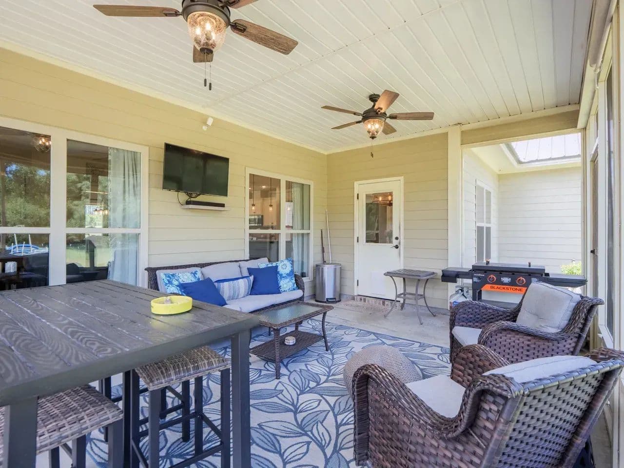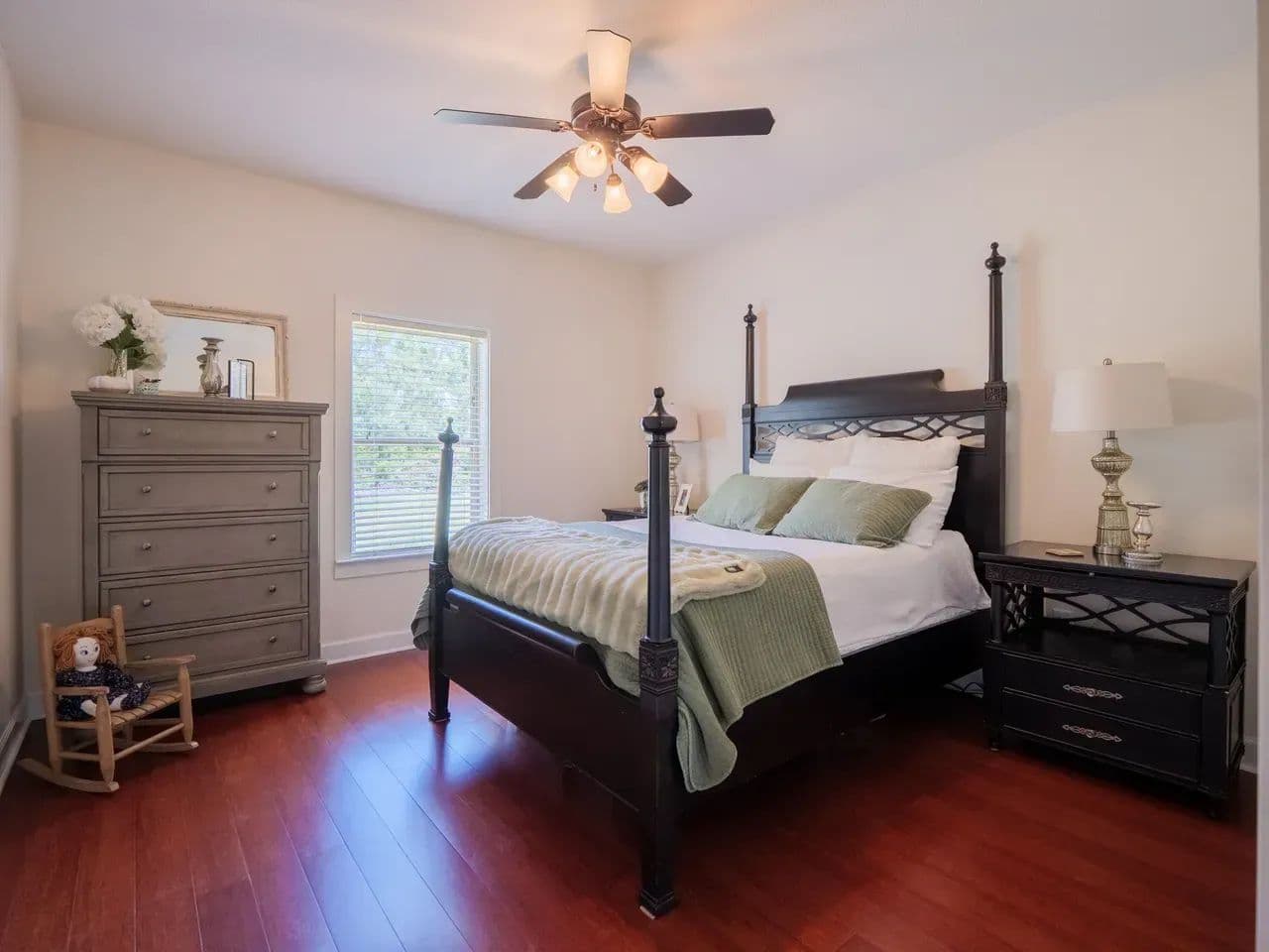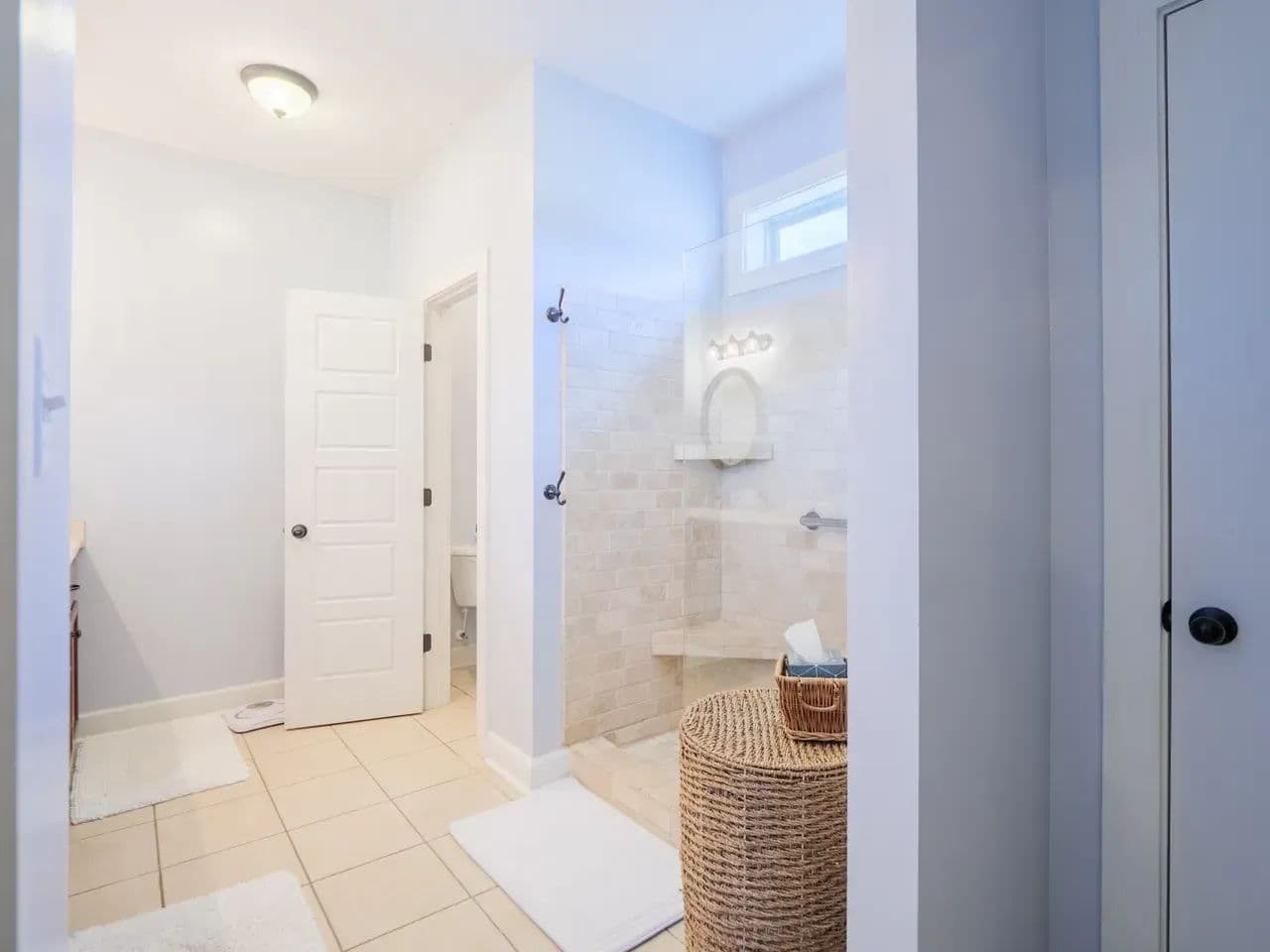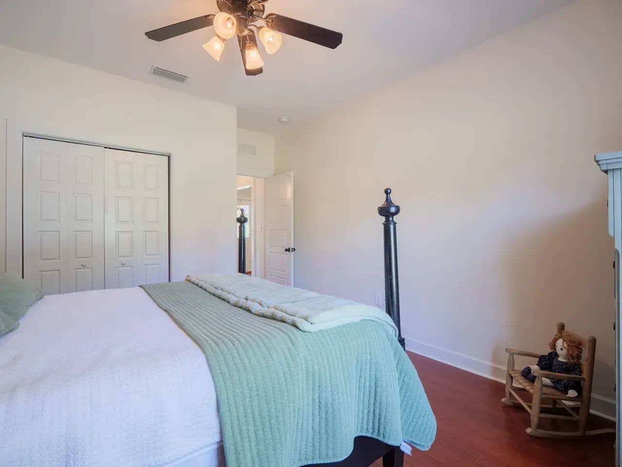 The master suite is a private retreat, complete with a large walk-in closet, oversized tile shower, double vanity, and a private water closet. On the opposite side of the home, two additional bedrooms and a full bath ensure comfort and privacy for family or guests.