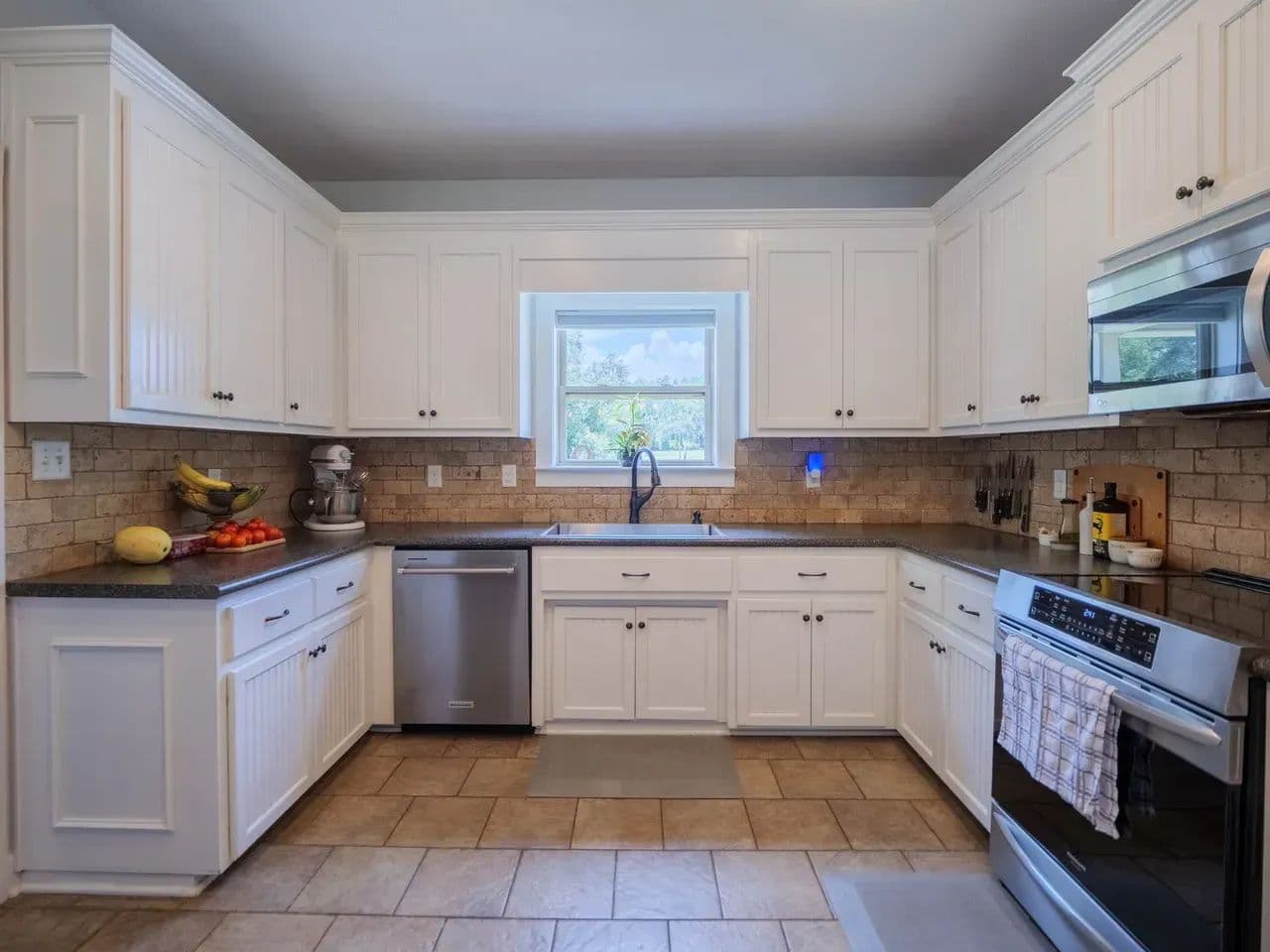 Inside, you’ll find a 3-bedroom, 2-bath split floor plan with 1,995 sq ft of well-planned living space. The heart of the home is the spacious kitchen, featuring stainless steel appliances, bar seating, and a sunny breakfast area—perfect for entertaining or everyday family life. A separate formal dining area flows easily from the kitchen, ideal for hosting guests.