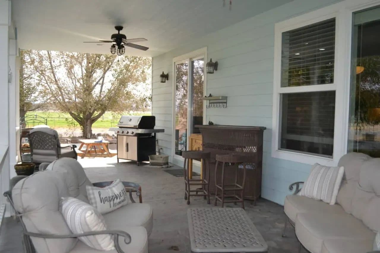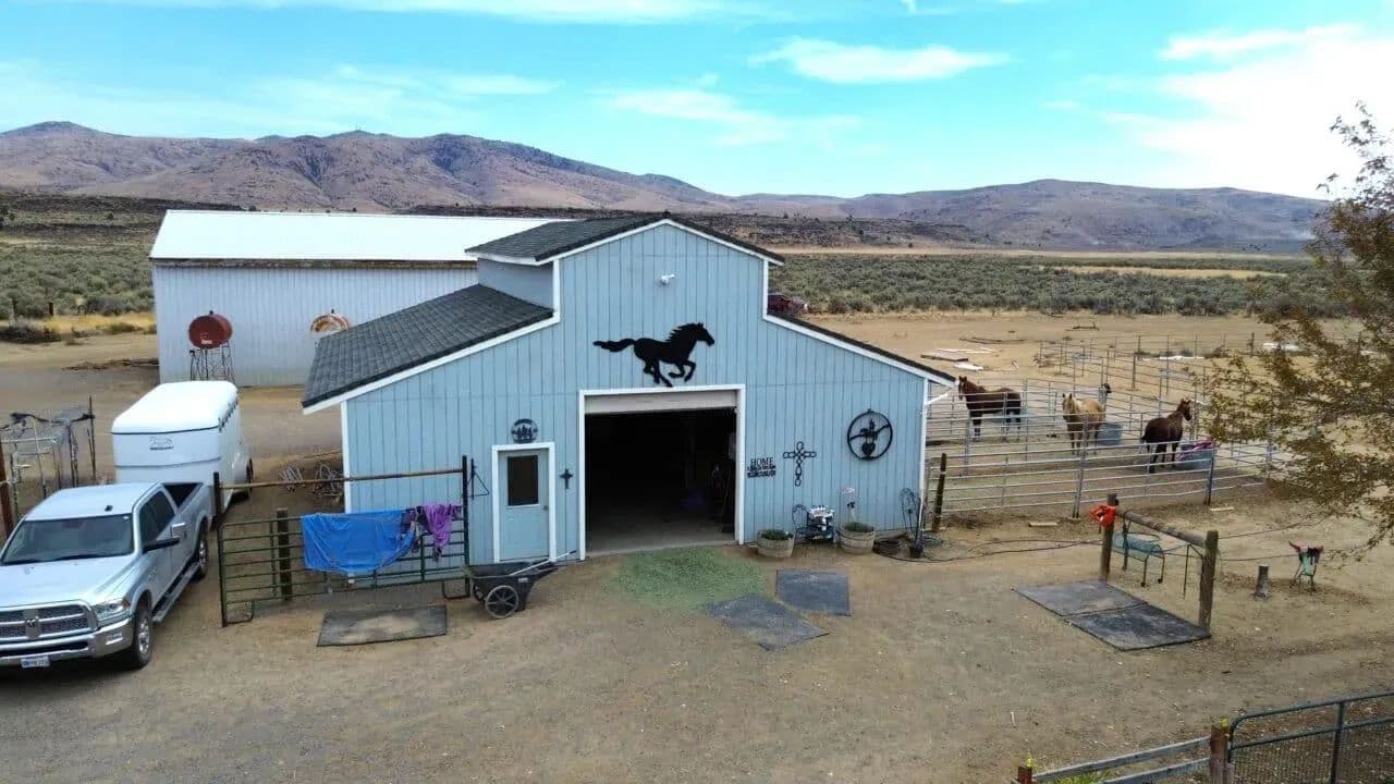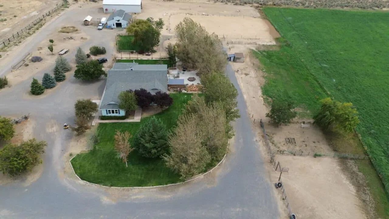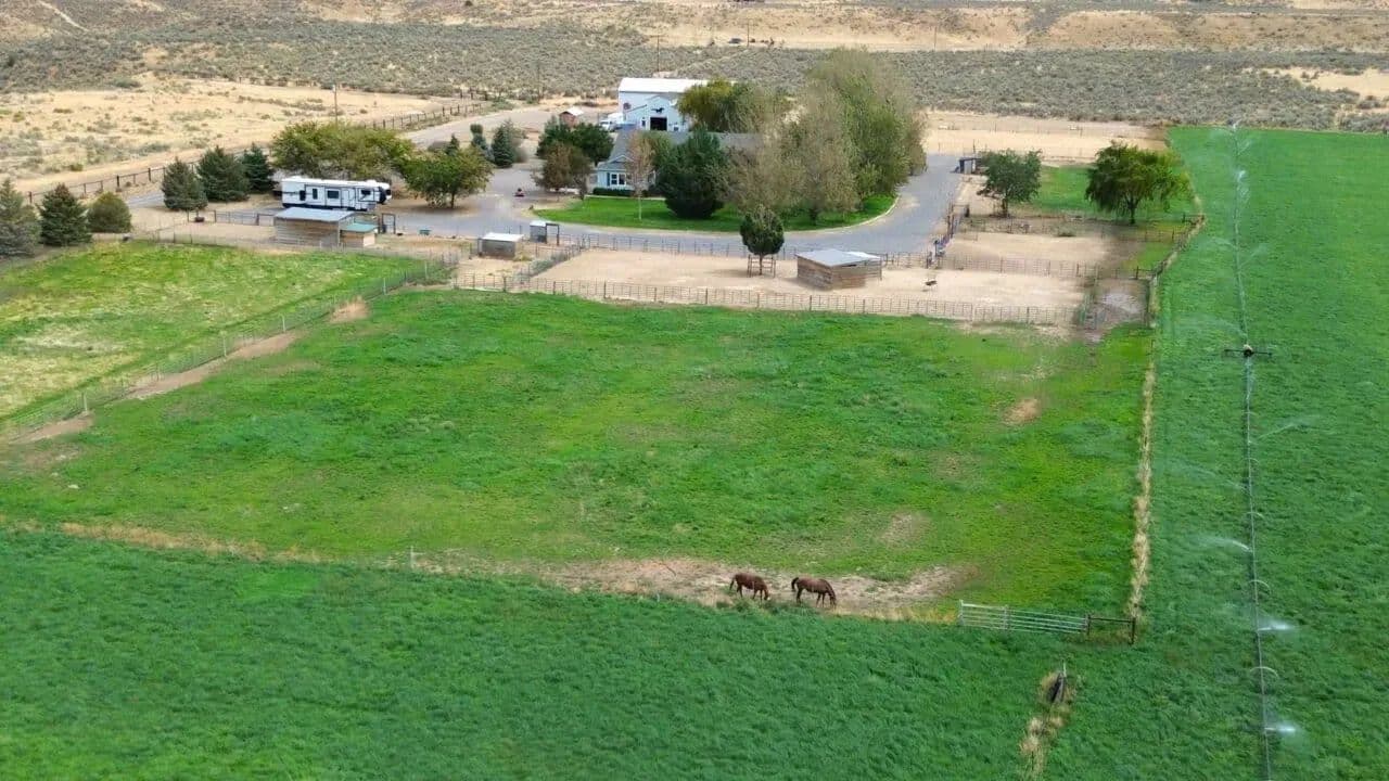 A horse lovers dream property on 39+ level acres. Expertly thought out with every detail appointed to in making this ranch perfect for raising and training horses. The 3,504 sf custom home is surrounded in a park like setting with large covered back deck and concrete patio for extended outdoor entertainment. The home was designed and built by the owner. The kitchen and living area occupy a large open space with high ceilings. Formal dining room, main suite, guest suite, two additional bedrooms, three full baths, office/den and laundry room opening to oversized three car garage. The layout of the horse facilities is set up with precision and functionality. Hay barn, irrigated pastures with 4 animal shelters and feed rooms. Round pen, riding arena, obstacle trail and track. 3 stall barn with runs, tack room, wash rack and training rack. Additional features include livestock pen, fenced garden area, chicken coop, fenced in dog run with lawn and shade trees. The farm ground covers about 27 acres, irrigated by wheel lines with high production ag well producing quality pixote orchard grass hay. There are so many extra features to this property, it may take a few times viewing to take it all in. Stunning views of surrounding mountains and valley. This property is a joy to show with a welcoming entry, beautiful home and well set up animal owners developed the property from scratch. Home built in 2007 and recently repainted. 3,504 sf. 4 bedrooms and 3 full baths. Office/den, formal dining room and laundry room. Attached 3 car garage. 9-10’ ceilings throughout, plus 8’ doors. 3’ tongue and grove hardwood floors throughout most of home. Minka lighting and ceiling fans. Rain gutters all around home. Concrete sidewalk to covered front entry. Back of home has concrete sidewalk to large covered back concrete deck with 2 ceiling fans. Propane plumbed to deck for BBQ. Opens to breakfast nook and master bedroom. Lower concrete open patio is spacious. Features a rock fire pit and garden boxes. Back lawn surrounded by concrete and ties into concrete patio.