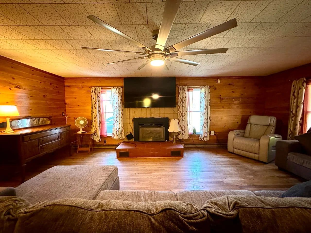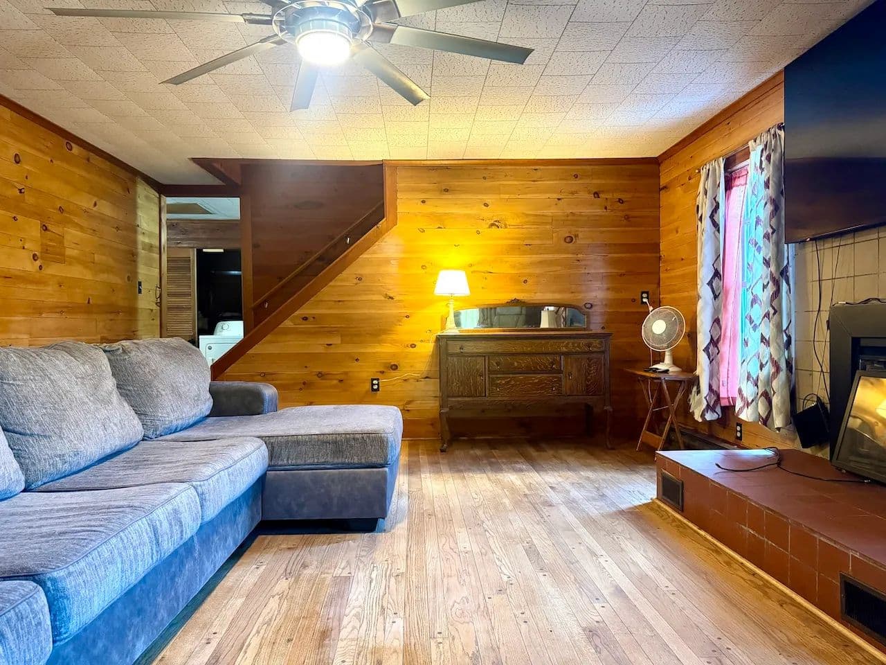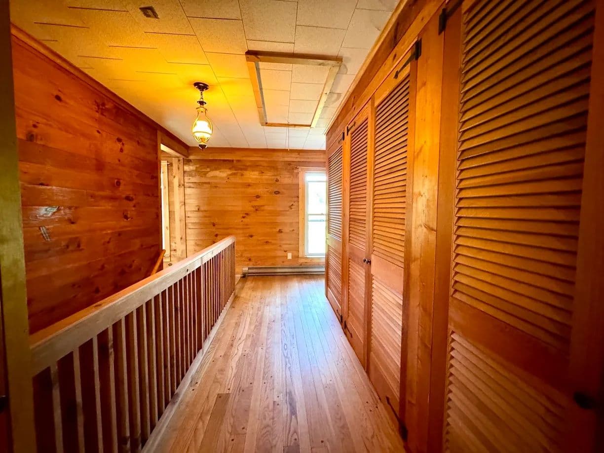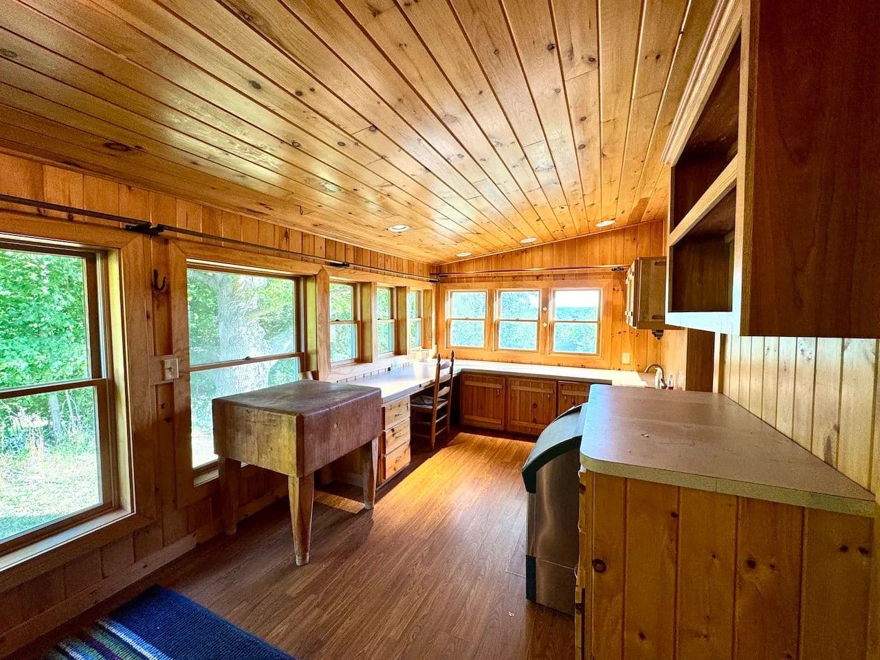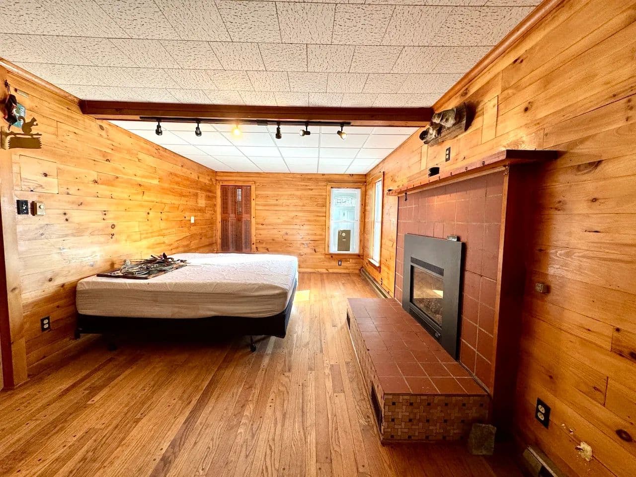 With hardwood floors, knotty pine shiplap walls, and two fireplace inserts, this home exudes rustic charm while providing modern comforts. The country kitchen is full of character featuring custom pine cabinetry and stainless steel appliances. Just off the kitchen, you’ll find a bright four-season room lined with windows and counter space perfect as a hobby room, office, or art studio. The open formal dining room is spacious enough for entertaining, while the living room centers around a charming fireplace insert for a relaxing atmosphere.