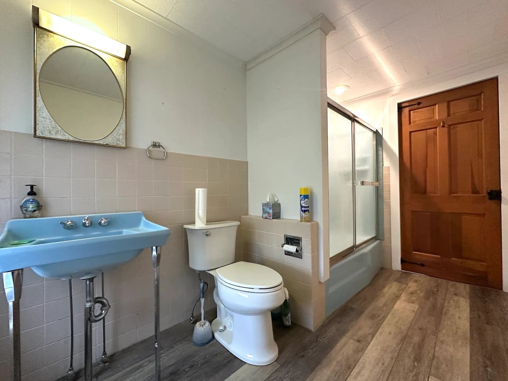 A first-floor bedroom and full bath add convenience, while upstairs you’ll find three additional large bedrooms including a master suite with a private half bath, and an additional full bath. The oversized mudroom, complete with a wood-burning stove, adds extra warmth and practicality during the colder months.