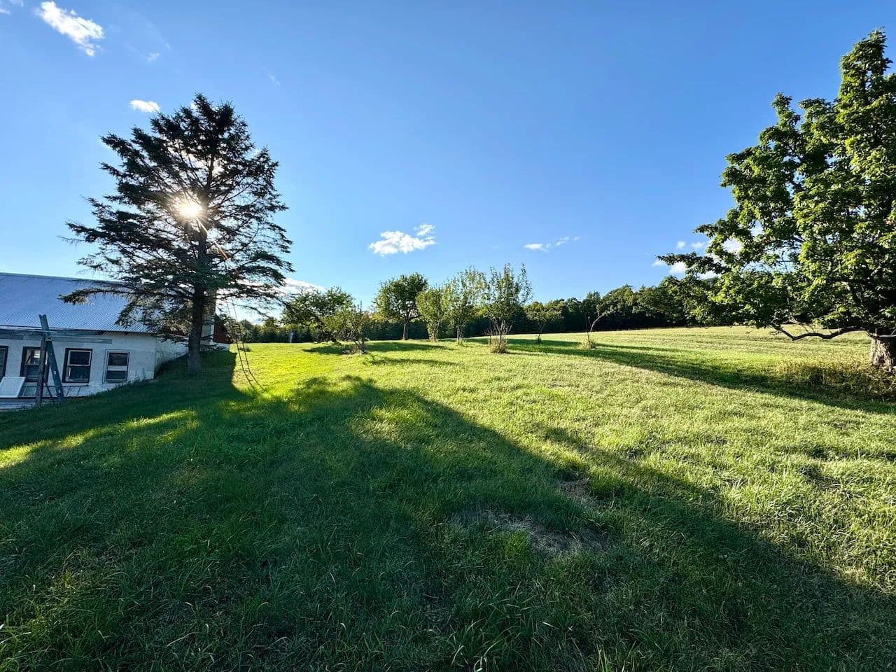 Step outside to enjoy a cement patio with raised flower beds overlooking the backyard. The property includes a detached two-car garage with an attached entertainment space complete with a bar, as well as an older wooden barn with a workshop. Sitting on 4.7 picturesque acres, the land features a pond, mature pear and apple trees, Concord grapes, and stunning views.