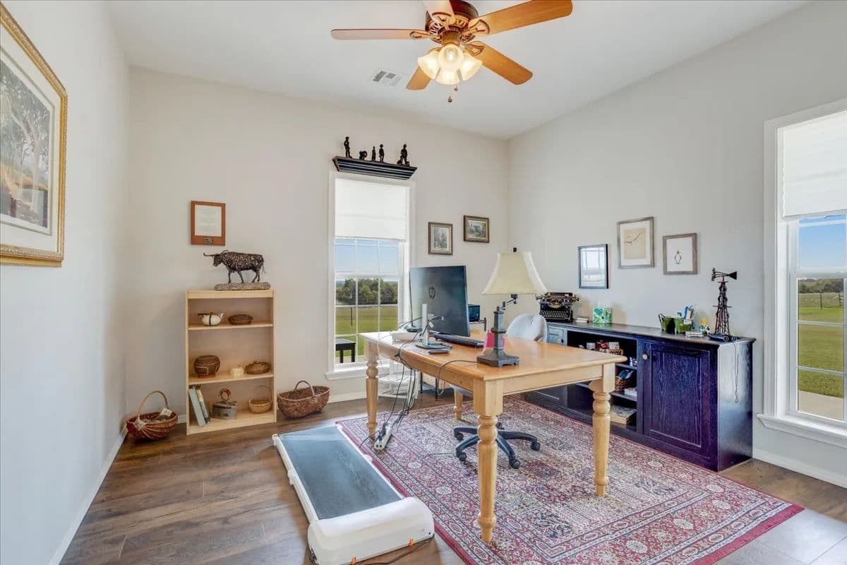 This beautiful 71.4-acre ranch has it all! The main home (2,733 sq. ft., 3BR/3BA + bonus room) features a wrap-around porch, gas fireplace, spacious kitchen, and a luxury primary suite with jetted tub & tiled shower. The second home (1,776 sq. ft.) is perfect for guests, rental income, or multi-generational living with a fireplace, sunroom, and handicap-accessible features.