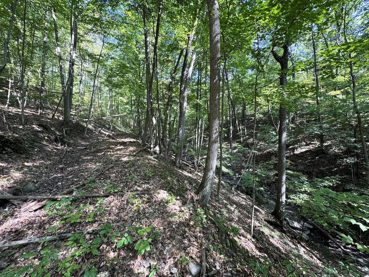 The land boasts a rich landscape of mature hardwoods including oak, maple, and black walnut along with an existing seasonal stream running through the gully that winds through the property adding visual interest and wildlife habitat. This natural feature could also lend itself to future landscaping or trail development.