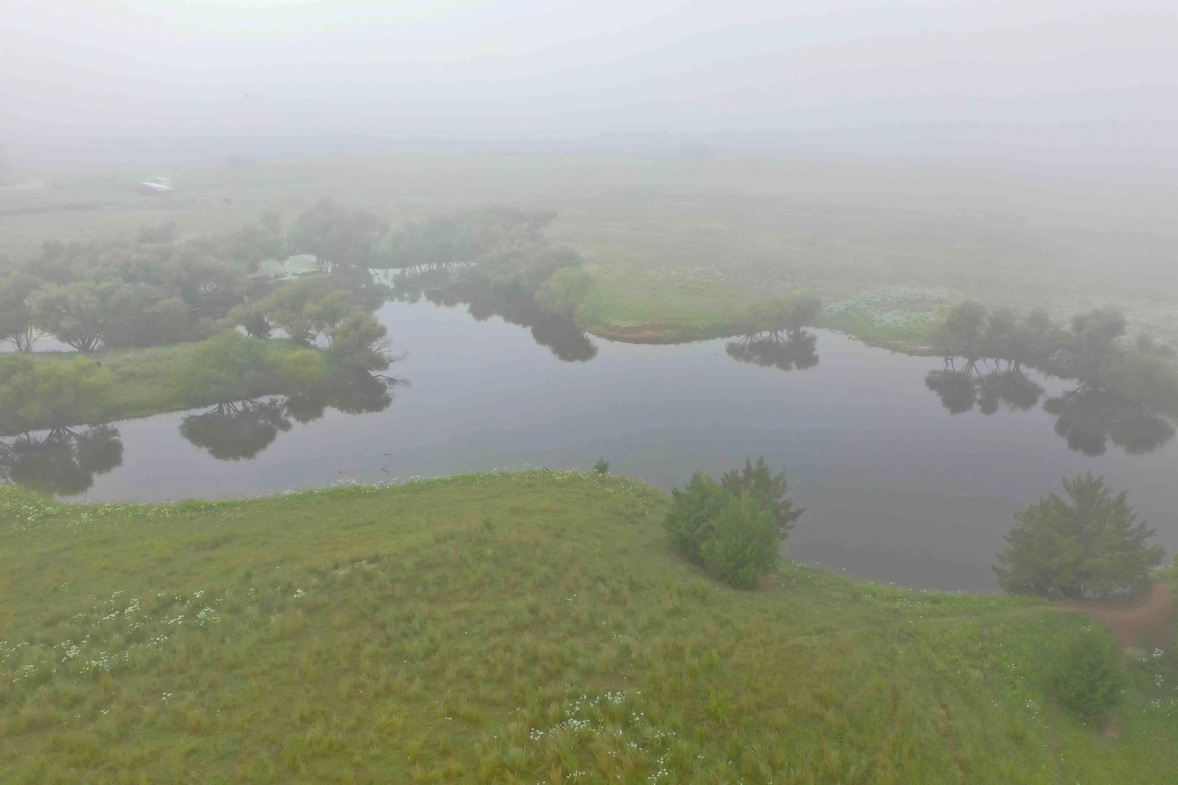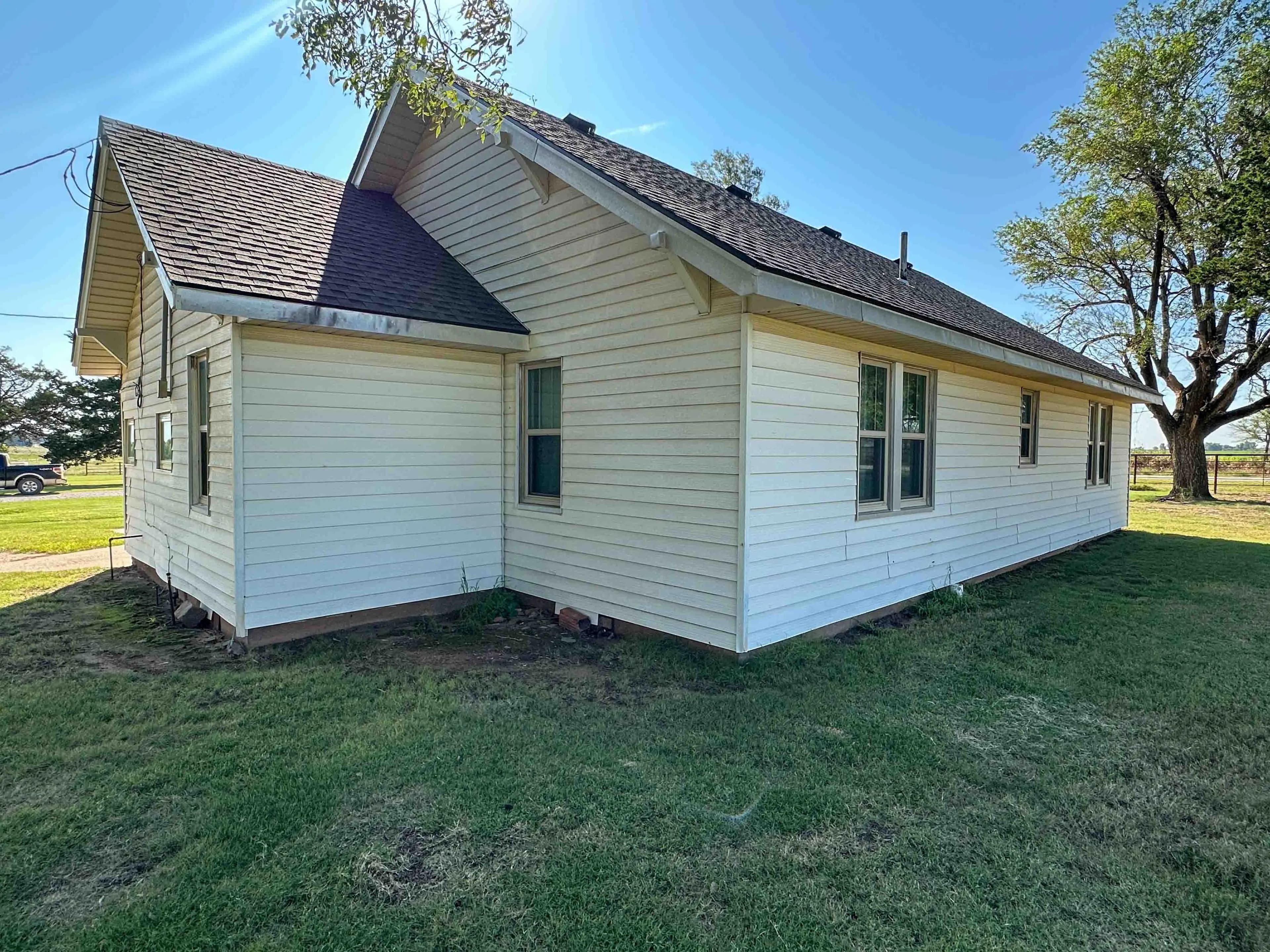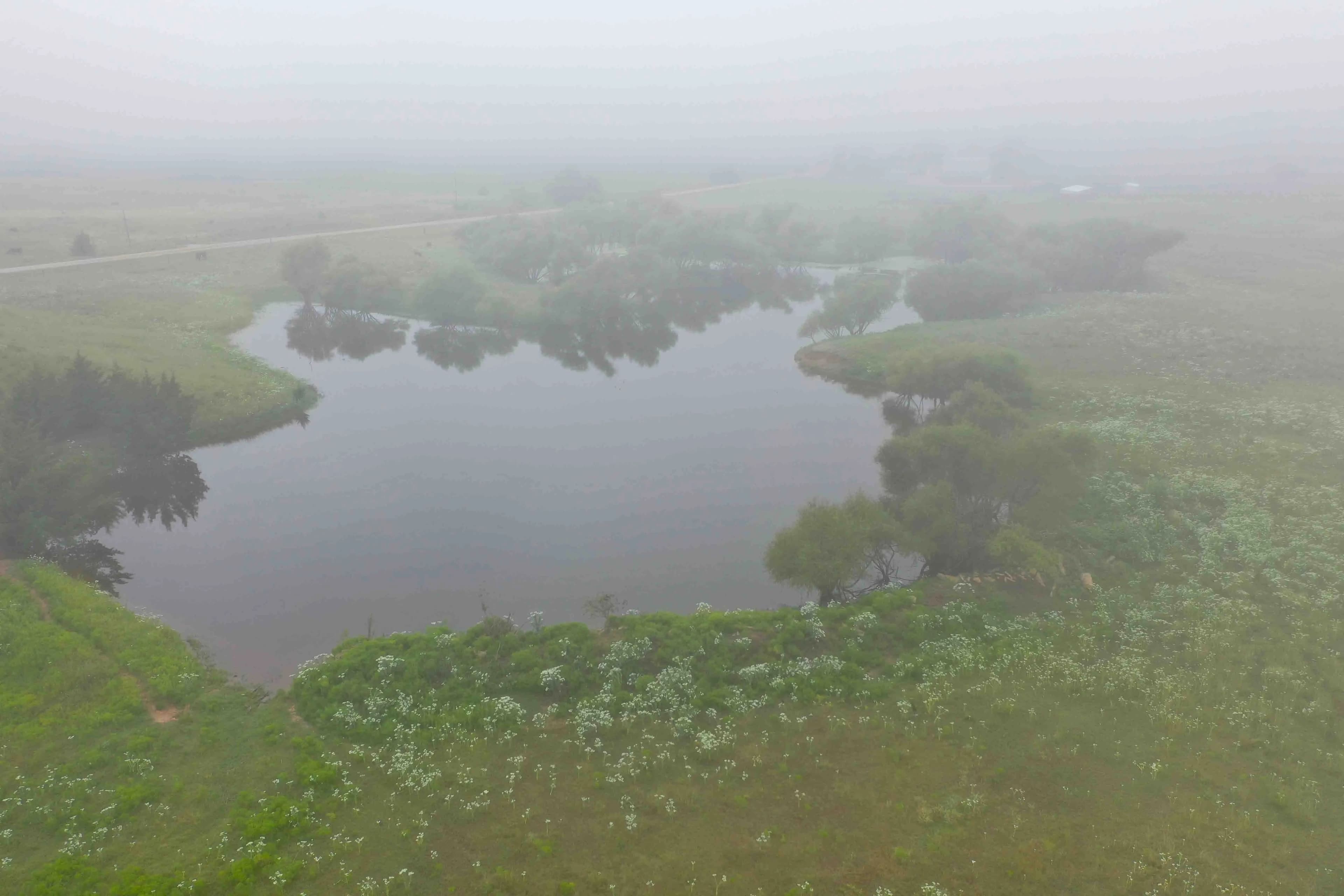 A large pond just east of the home provides not only a reliable water source but also attracts waterfowl and wildlife, making it ideal for nature lovers or hunting enthusiasts. The land itself is a balanced mix of improved grasses and mature timber, with perimeter fencing already in place—perfect for livestock, or recreational use.