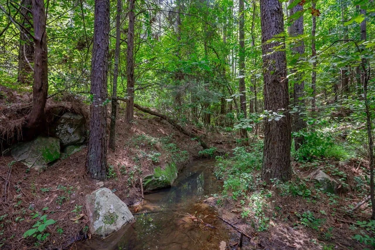 The Southern Moon Tract is classic Chester County recreational property with a variety of features that allow immediate enjoyment of life in the country. Over 70 acres of mature pines fill the middle of the property and provide countless hunting and habitat management opportunities. Nestled neatly within the conifer forest is a beautiful 3-acre pond, with a shoreline dotted with boulders. East and west portions of the property host young pine plantations that were established in 2001 and offer attractive cover and nesting habitat while exhibiting excellent growth. Natural mature hardwoods adorn Turkey Branch, which crosses the northern portion of the property. Scattered throughout but placed with purpose are several food plots and orchards, and well-planned roads and firebreaks provide access to every portion of the tract. At the north end of the property is a comfortable 1,000 square-foot cottage with a new roof and security system, neatly situated in the shade of old walnut trees. In all, the Southern Moon Tract is over 170 total acres of tree farming, fishing, hunting, tractor therapy and family gatherings. Additional outdoor activities can be enjoyed at the nearby Great Falls Whitewater Park and Debutary Creek Landing, both about 10 minutes away.