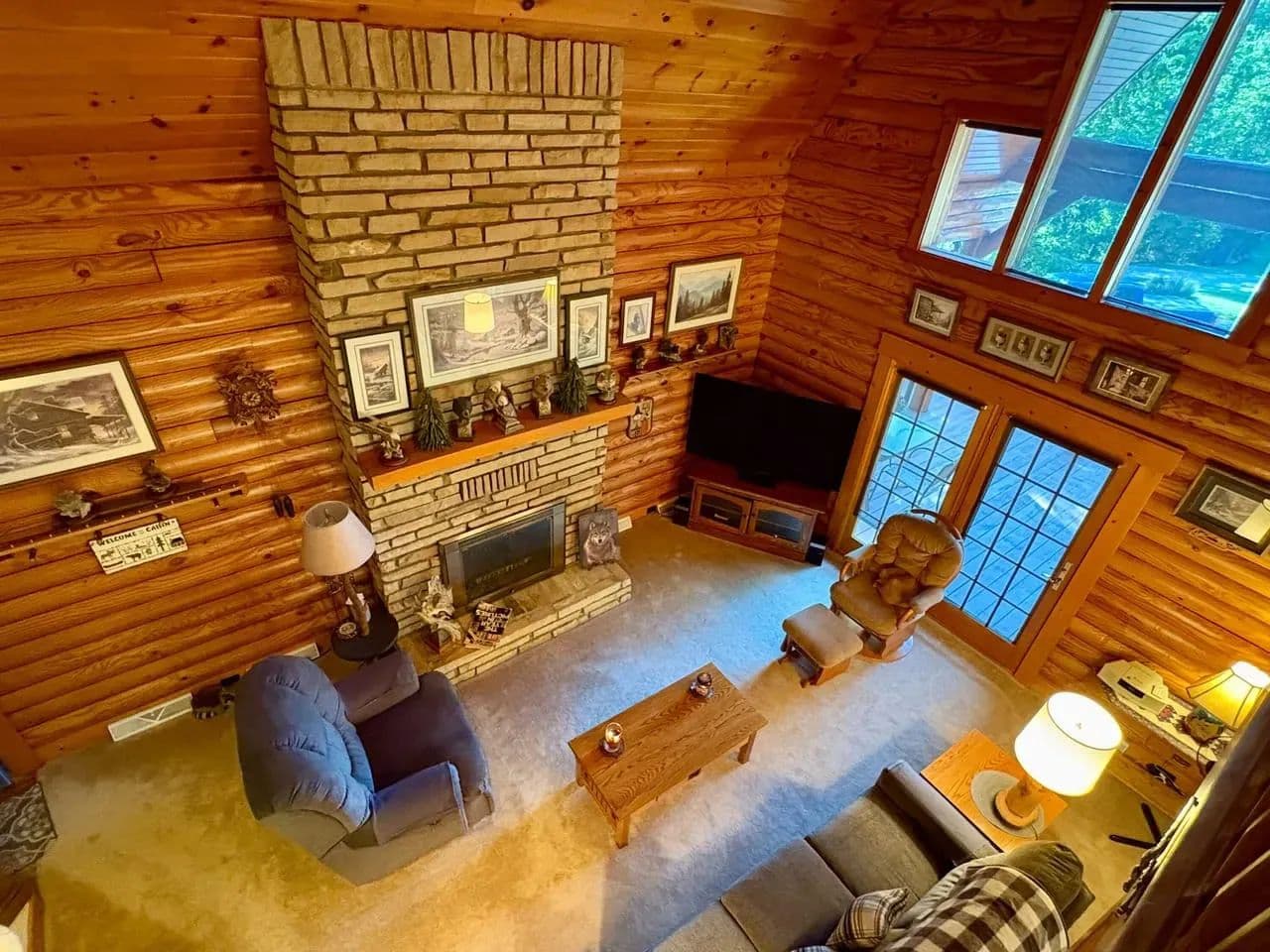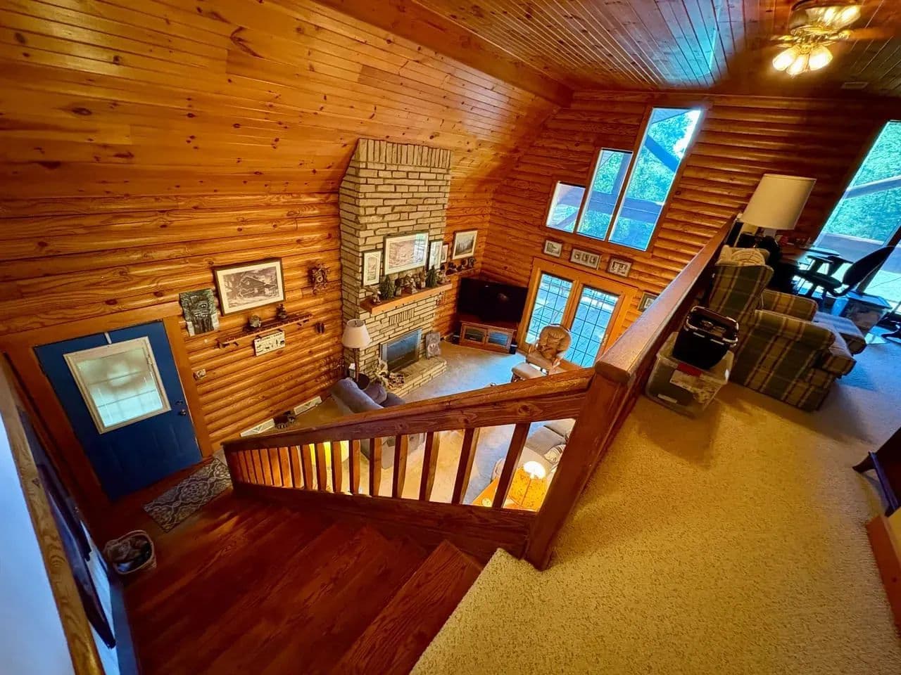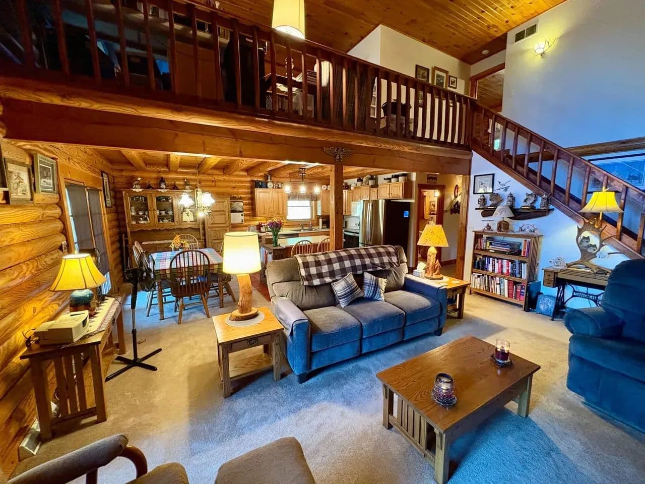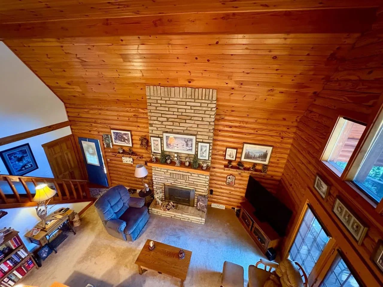 The centerpiece of the home is the great room with its soaring ceilings and wood-burning fireplace, seamlessly open to the kitchen and balcony above. With 3 bedrooms, 2 full baths, and an open floor plan enhanced by warm wood finishes and abundant natural light, the home is both inviting and functional.