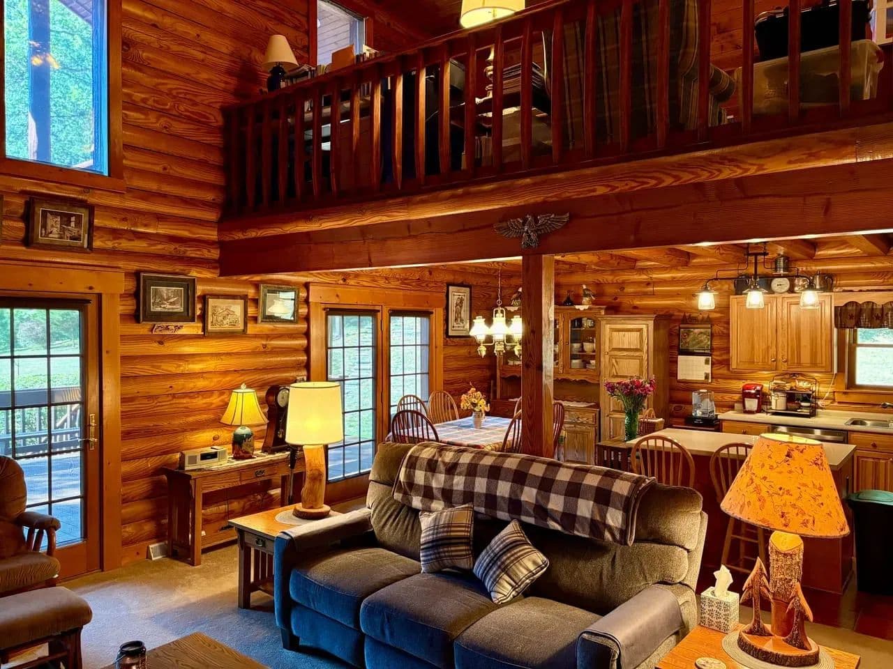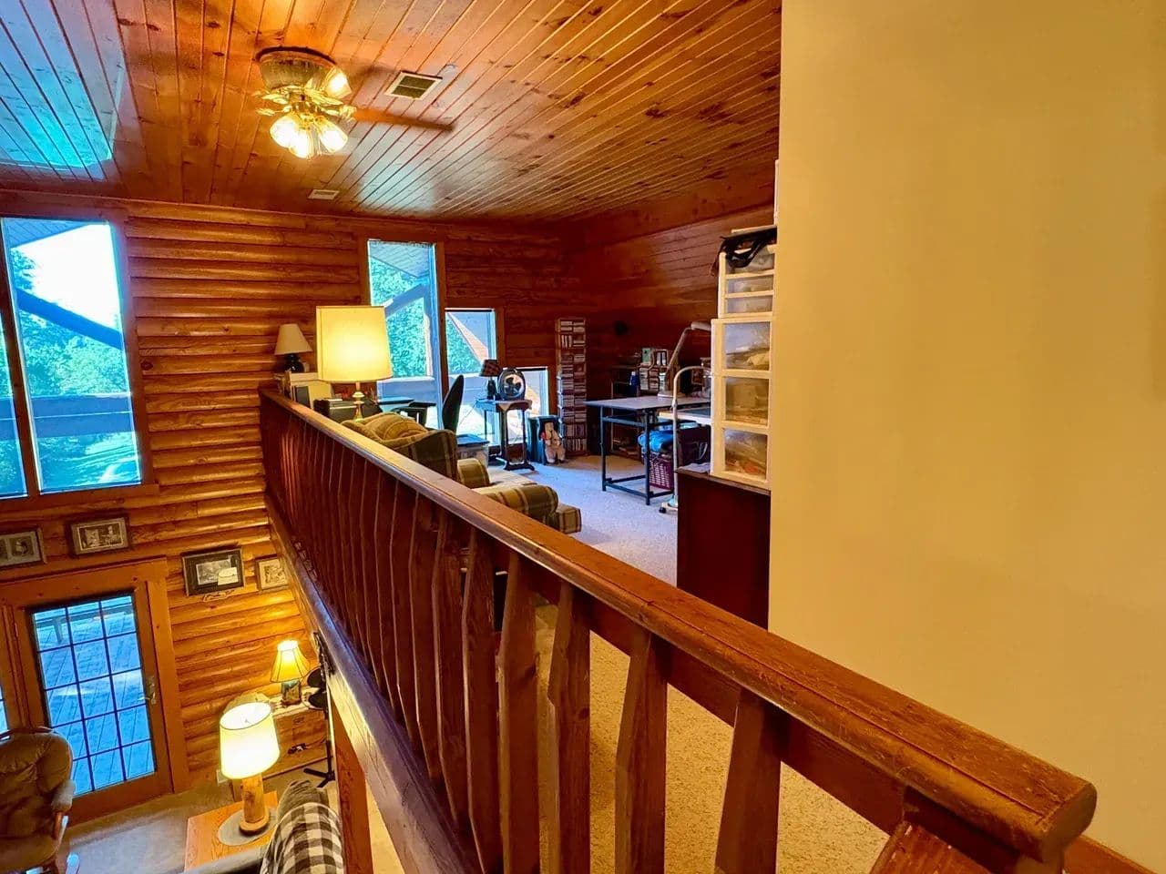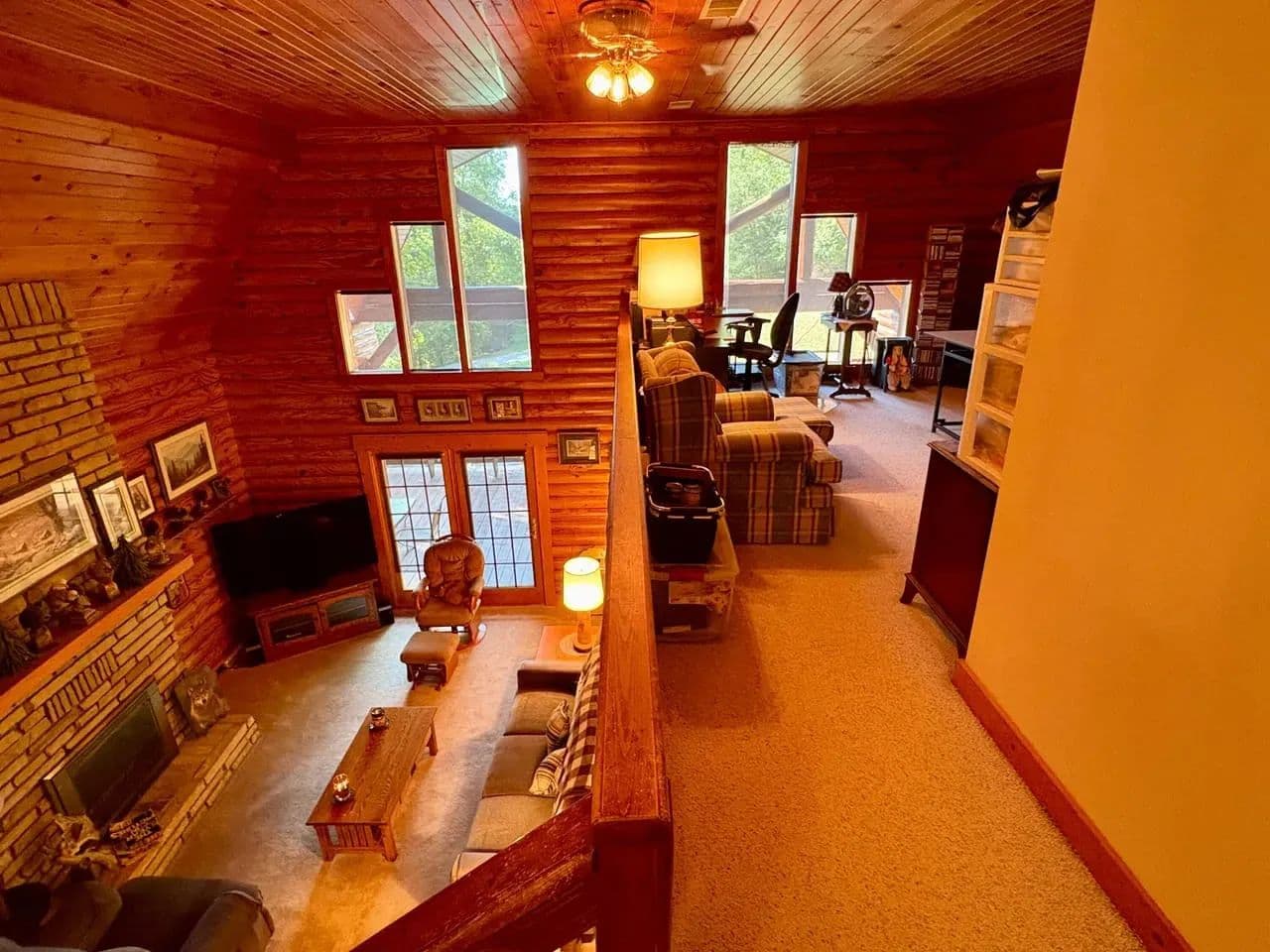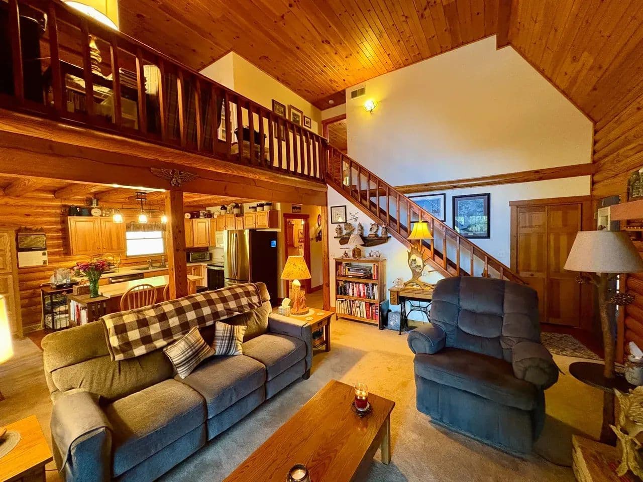 The centerpiece of the home is the great room with its soaring ceilings and wood-burning fireplace, seamlessly open to the kitchen and balcony above. With 3 bedrooms, 2 full baths, and an open floor plan enhanced by warm wood finishes and abundant natural light, the home is both inviting and functional.