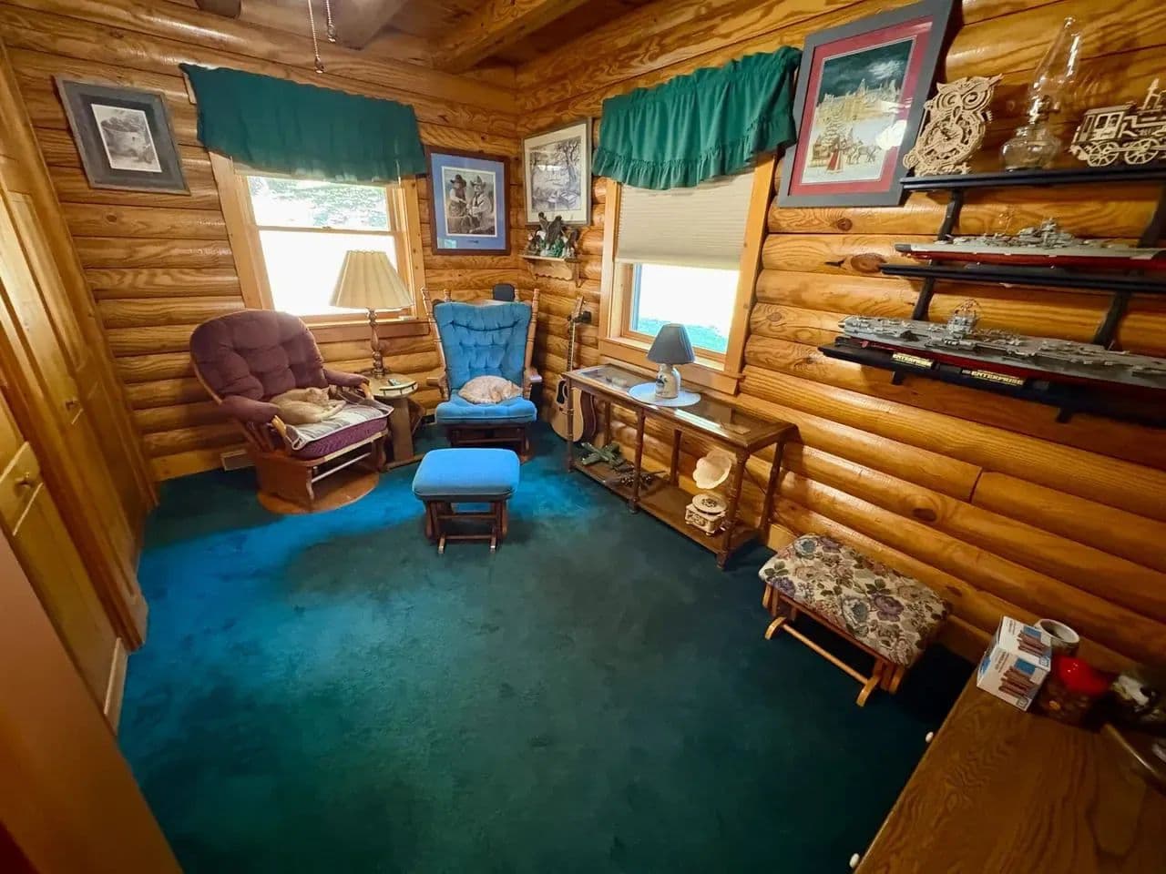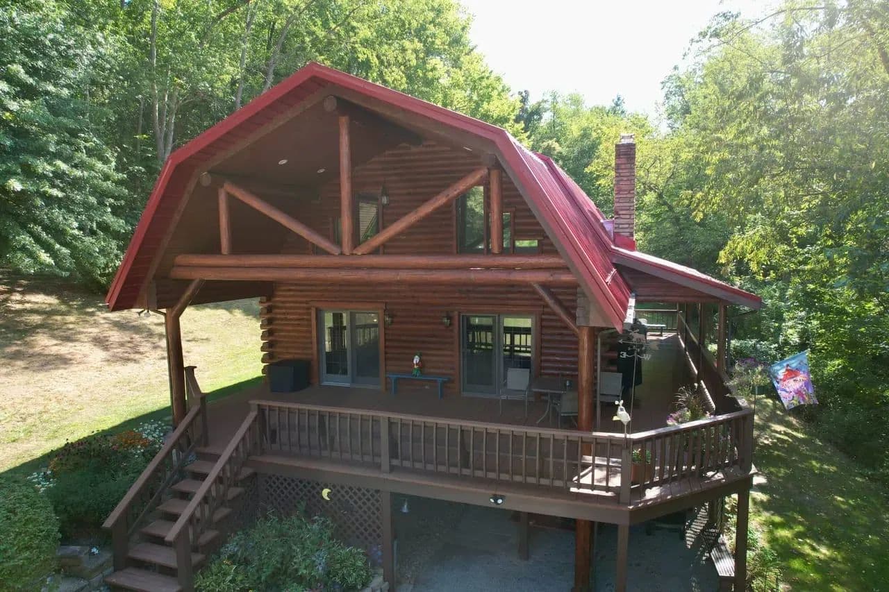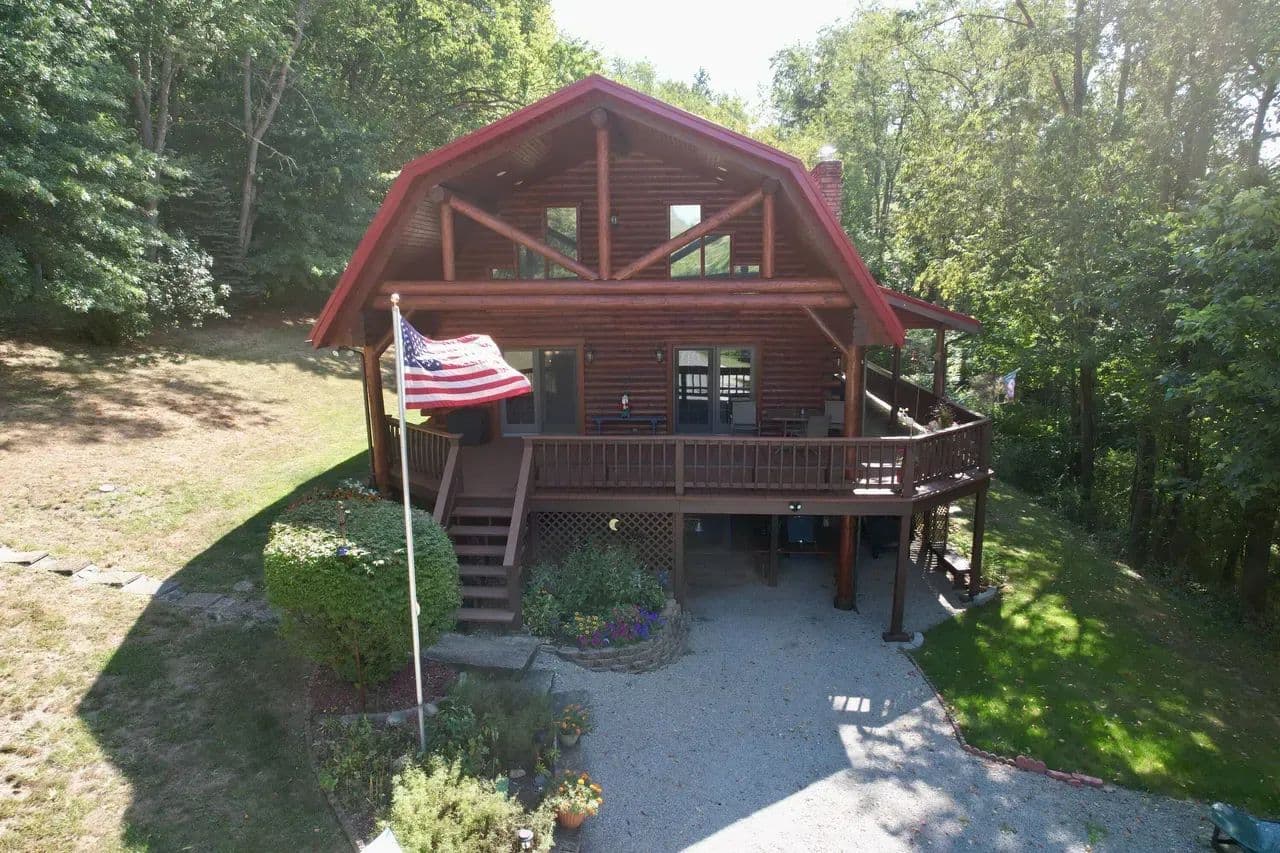 Nestled on 5 +/- private acres in Fayette County, this gambrel-style log home offers the perfect balance of rustic character and modern comfort. Tucked away at the end of a private drive, the setting provides peace, privacy, and the timeless appeal of log home living.