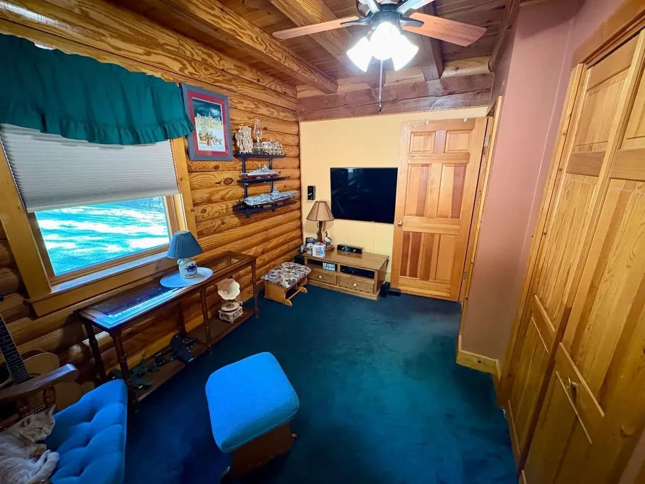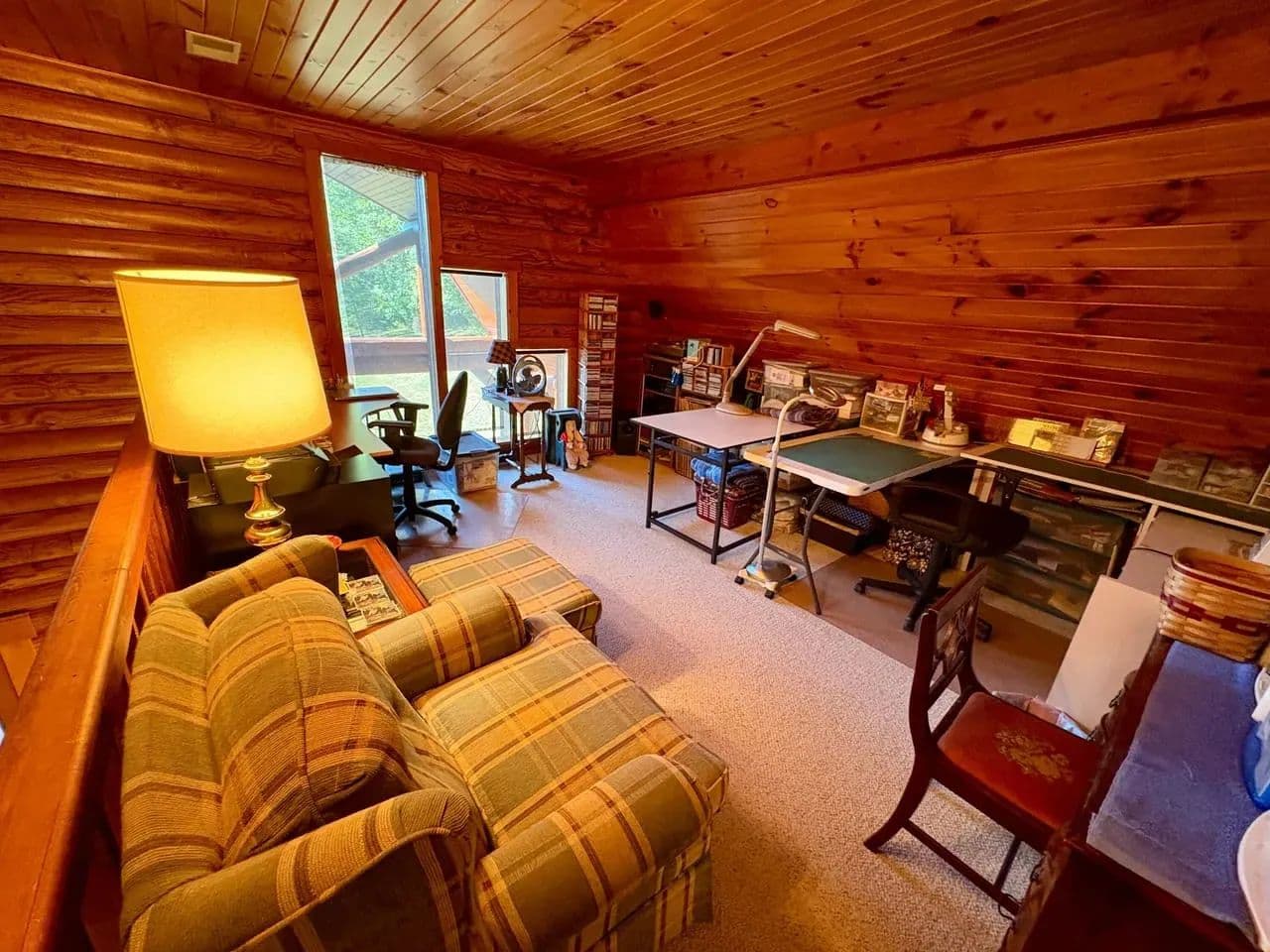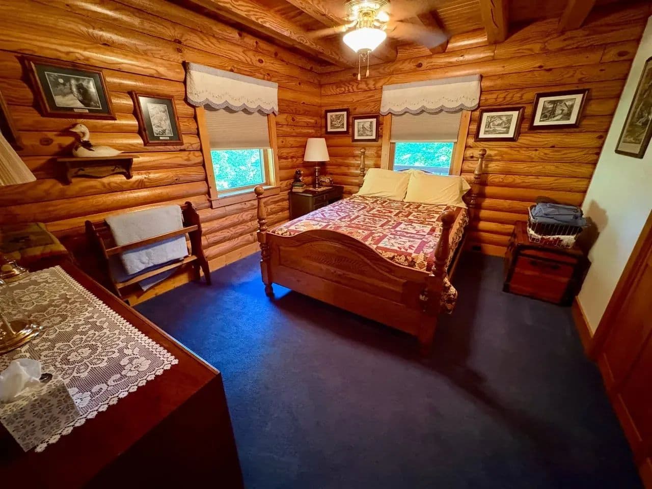 Nestled on 5 +/- private acres in Fayette County, this gambrel-style log home offers the perfect balance of rustic character and modern comfort. Tucked away at the end of a private drive, the setting provides peace, privacy, and the timeless appeal of log home living.