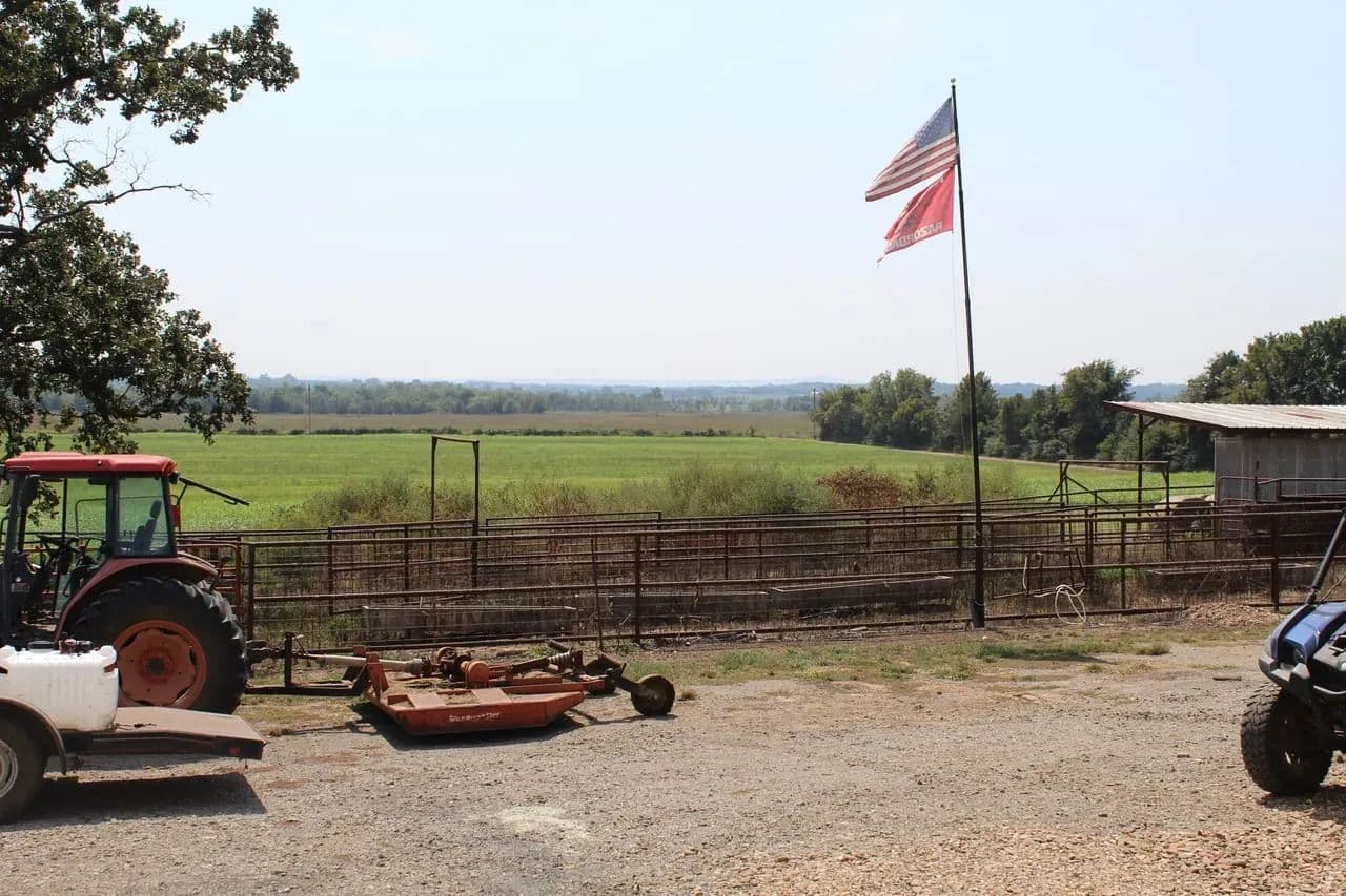 Discover the serenity of country living on this stunning 142-acre property. This expansive estate features rolling pastureland complemented by wooded areas teeming with wildlife, offering exceptional hunting opportunities. A productive 35-40-acre hay pasture, well-equipped cattle working pens, a convenient feed bin, and a practical lean-to enhance the property's functionality. Enjoy the tranquility of two ponds, a flowing wet weather creek, and meticulously maintained fences with cross-fencing. Water is run to the pastures in two separate locations. A feed bin is on the property to store feed for your herd. A diesel tank is also located in proximity to the feed bin to fuel up your farm equipment.