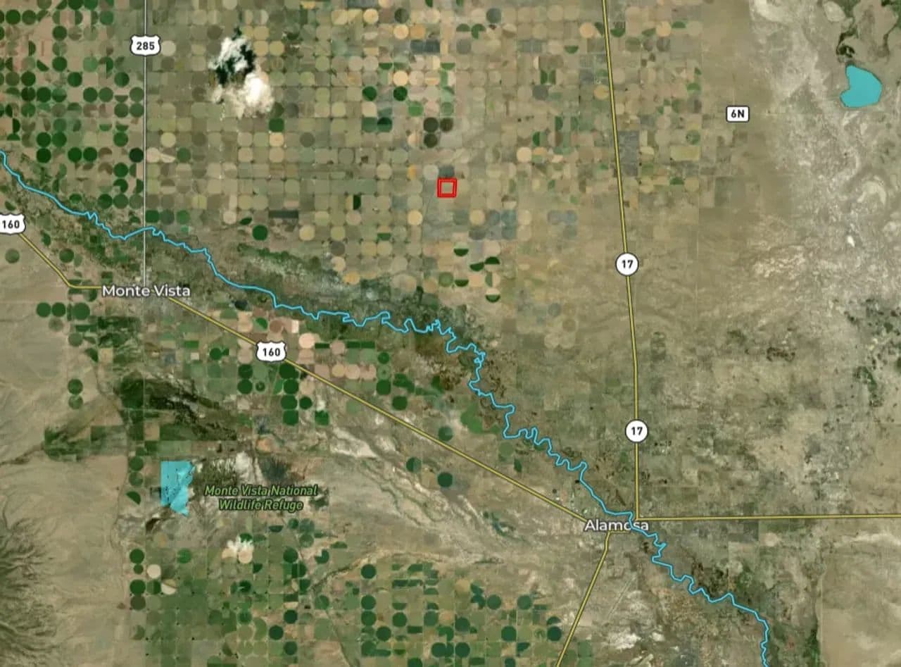 Driving Directions: From Alamosa, CO take Paved State Highway 17 north approximately 11 miles until you reach Land 4N then left (west) for approximately 5.3 miles until you reach the NE corner of the property.