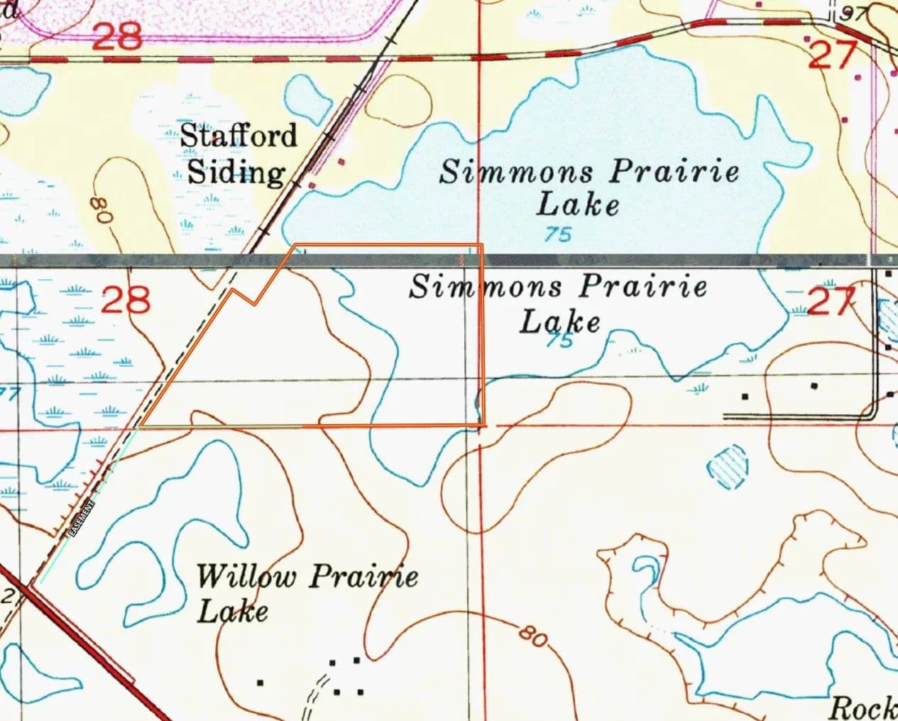 Welcome to a tranquil and stunning expansive 60.80 acres of land on Simmons Prairie Lake. Approximately 37 acres have natural tree cover inside of the lake edge. Within that, about 24 acres are high and dry, fully outside of flood zones and wetlands, according to mapping. With flexibility and natural beauty, this parcel is a great candidate for a family compound, hunting or recreational property, and for a large lakefront homesite or retreat. The zoning is agricultural with a future land use of both rural and conservation, maps are included on the listing. This property is accessible via a private, 15 FT wide private easement which begins on Ponce De Leon Blvd and continues back to the property in a north-easternly direction. Lakefront land like this does not come available often in northern Hernando County, do not miss it!