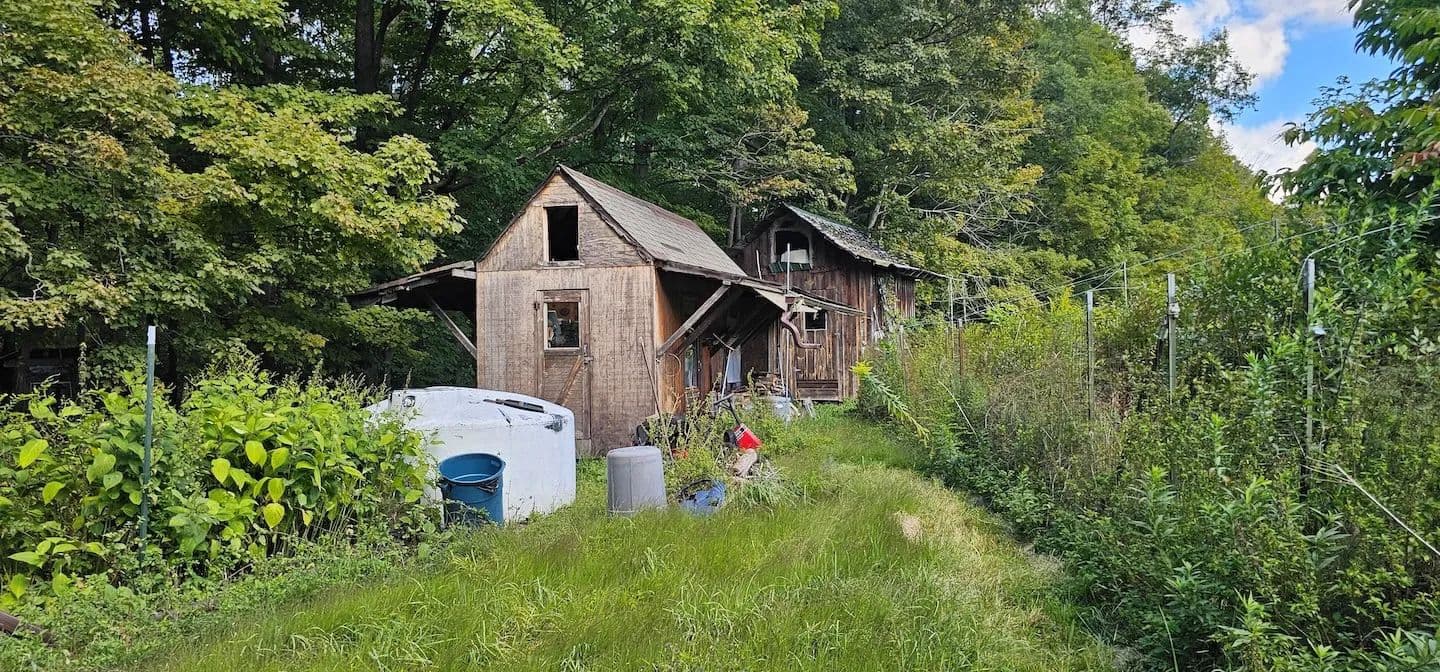 This is a sunny, peaceful haven that feels far from it all, yet is only 30 minutes from Ithaca’s vibrant culture and educational institutions, and just 10 minutes from the conveniences of Dryden. The cottage is very primitive with only electrical power. Water is provided by a rainwater catchment and an outhouse for a bathroom. There are three sheds on the property to store your garden tools and possessions. A few acres around the cottage are fenced in for the orchard. The cottage is in need of repairs and is being sold as-is. There is a small parking area near the road's edge and a short walk through the woods to get to this hidden homestead.