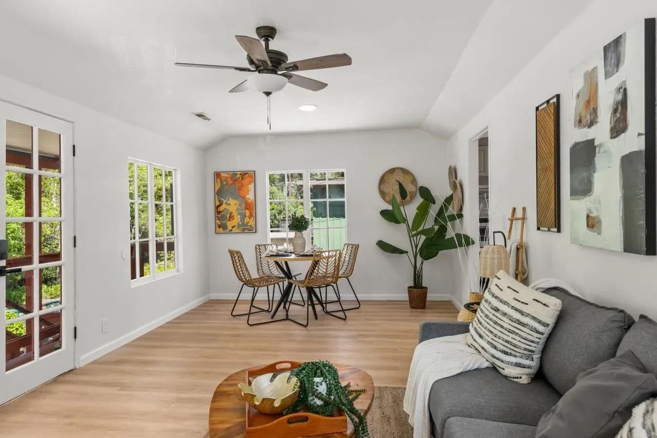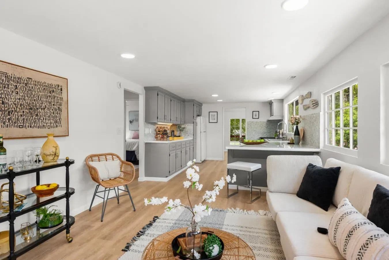 Welcome to your ultimate river escape in Guerneville's most beloved riverfront neighborhood - The Docks! This fully refreshed 2-bedroom, 2-bathroom retreat sits right on one of the deepest, most swimmable stretches of the Russian River with about 12 feet of depth right off your private dock. Inside, the home feels fresh and inviting and has the perfect flow from front to back. The open concept and cabin windows give the whole space a bright, breezy vibe perfect for kicking back after a day on the river. Launch a kayak, hop on a floatie, or cruise your boat straight from your own private dock to Johnson's Beach or even grab a beer at Stumptown Brewery just up the river. Your huge deck and .27-acre lot are ideal for BBQs, stargazing, lawn games, or just laying low with friends or family. There's also plenty of parking for everyone because you know they'll want to visit. Only a 5 minute walk to downtown Guerneville, and a 5 minute drive to Korbel Winery, this home offers the perfect balance of adventure and tranquility. Whether it's a full-time residence, weekend getaway, or dreamy vacation rental, this river gem delivers the fun year-round.