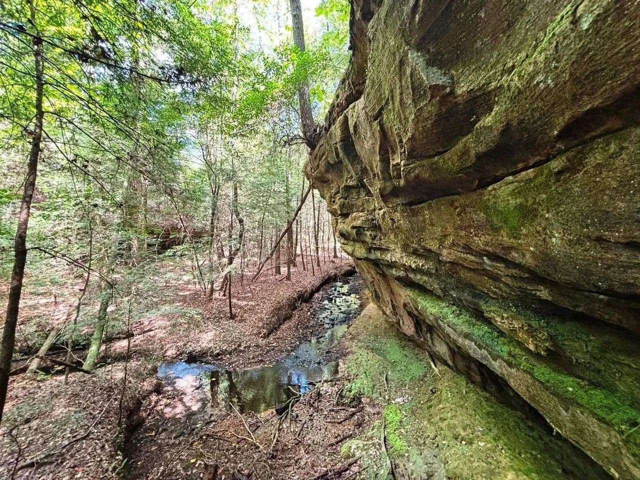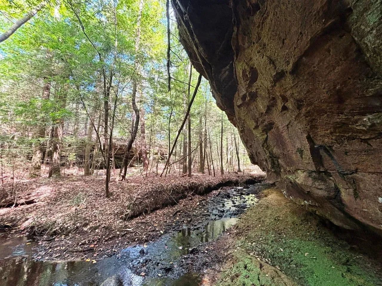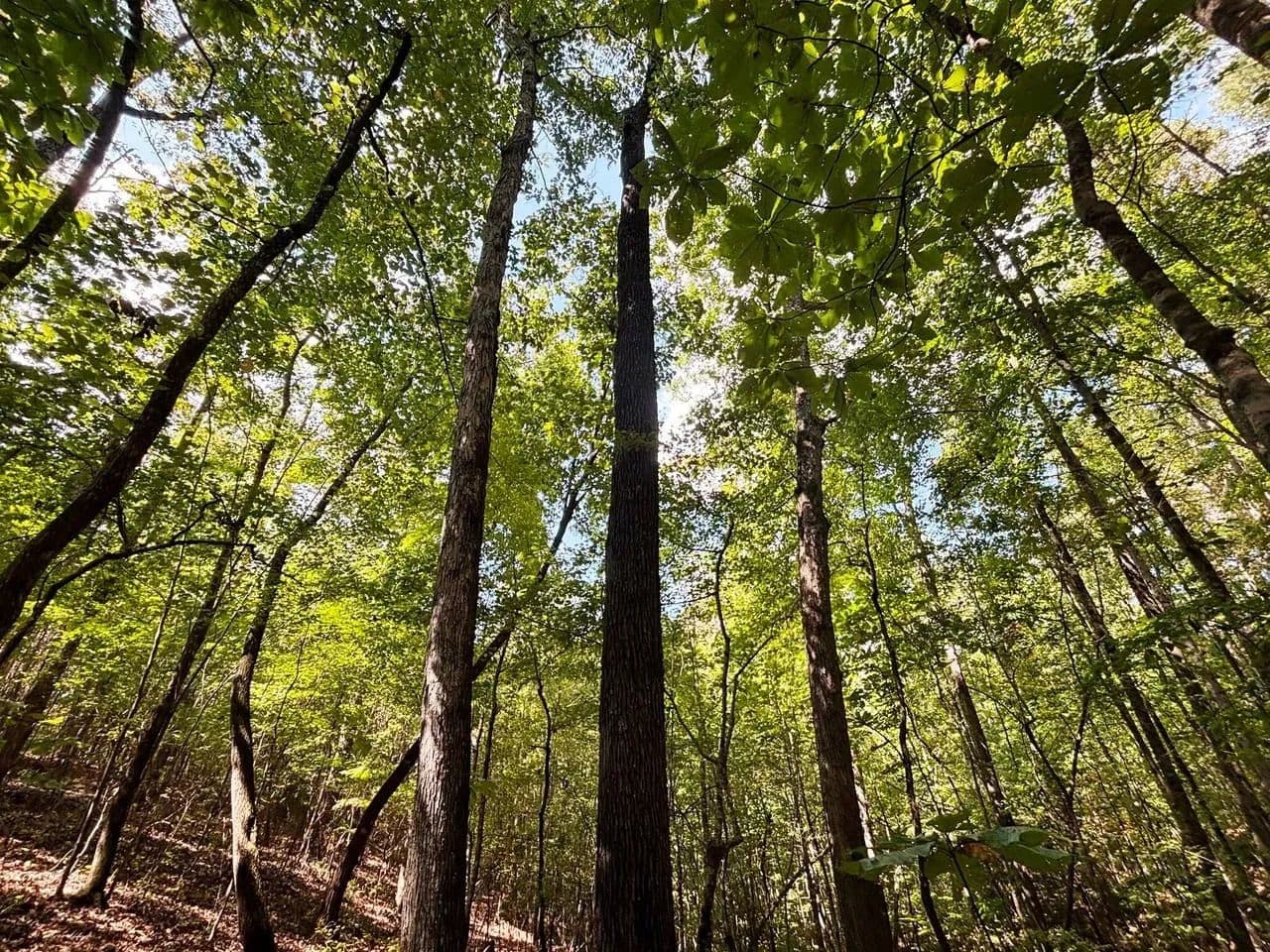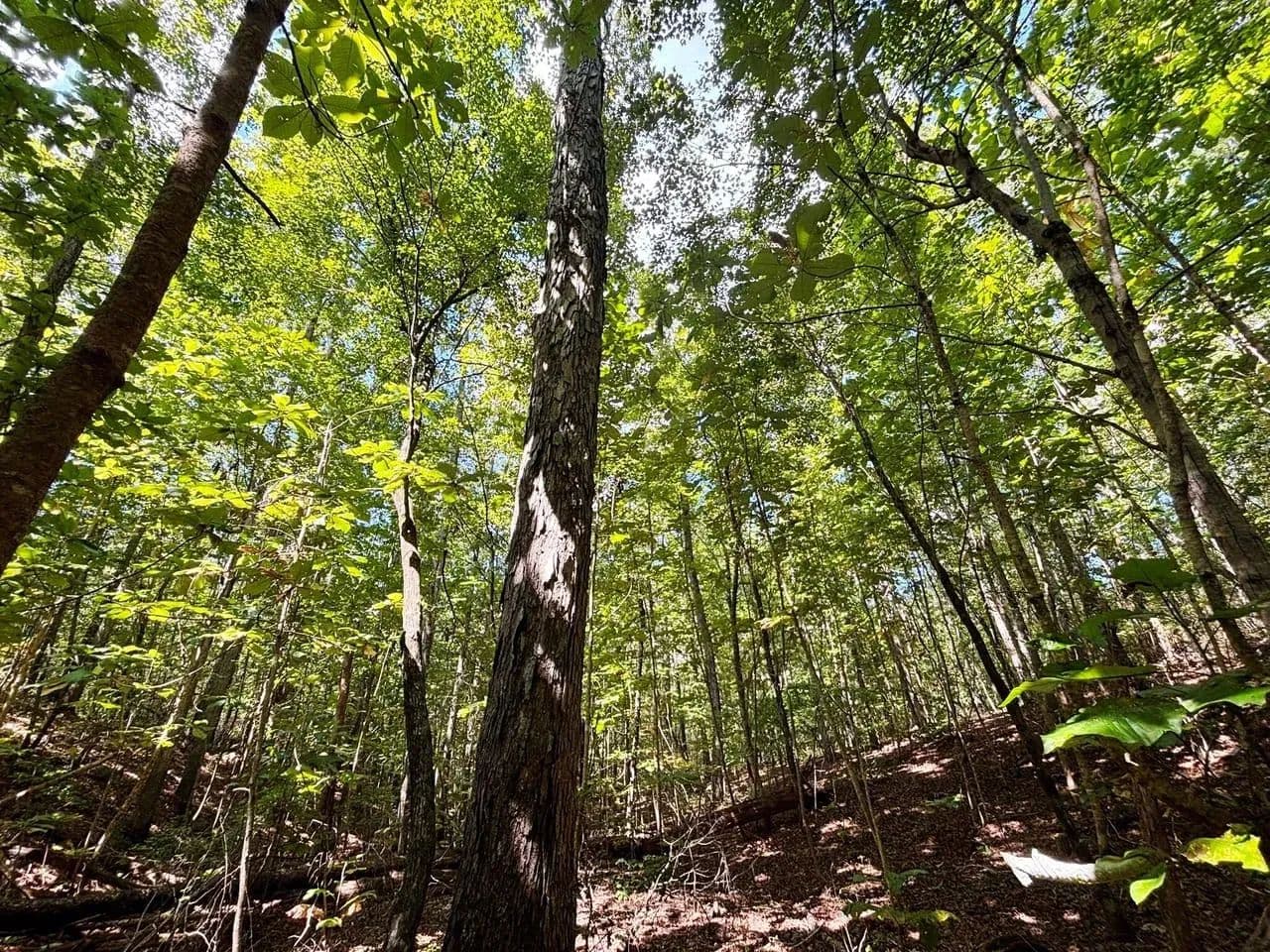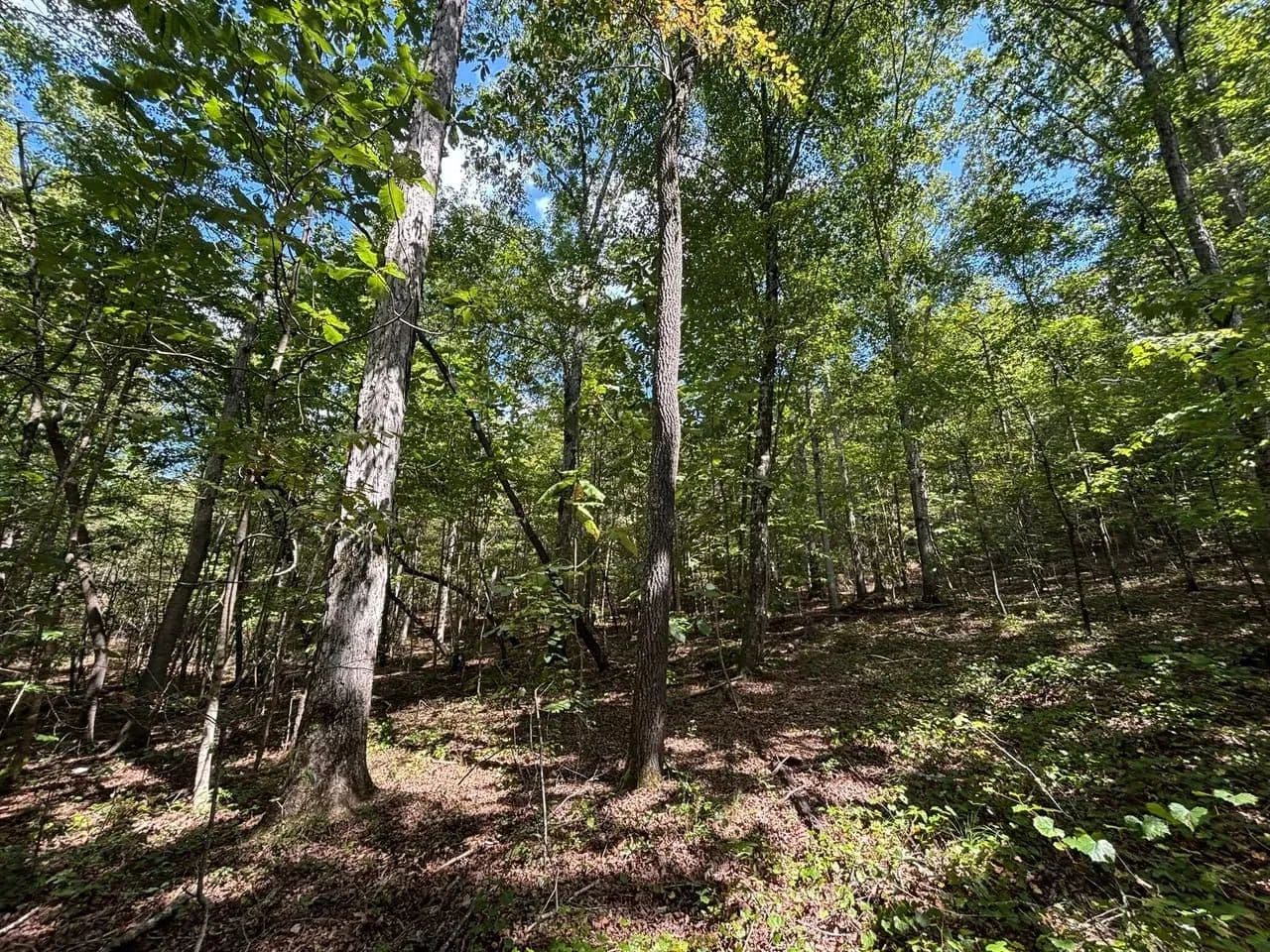 The property features frontage on Clear Creek (feeding Smith Lake)—known for its pristine waters—along with large white oaks in the drains, hemlock-lined creeks, and unique bluff formations on the north end. Wildlife is abundant, making this a versatile tract where you can hunt, canoe, fish, swim, or simply relax in a private setting.