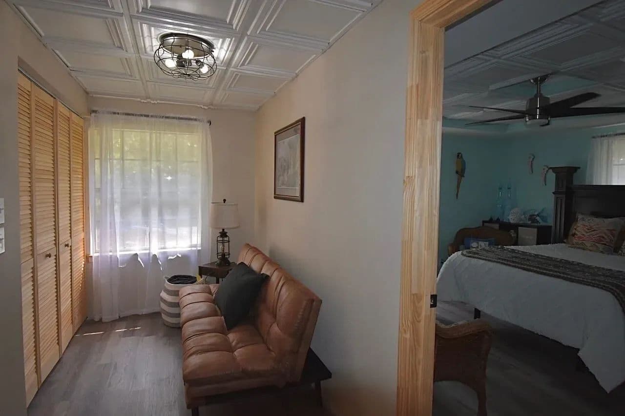 Owner was transferred before renovations were complete. Being sold as-is, where is. Great opportunity for an investor. Renovations include the living area, the 2 upper bedrooms and the bathroom. Seller added a kitchenette in the living area and has been using it as a Air BnB. The rear of the home needs paint, flooring, ceiling replacement, kitchen needs updated. There is a large room downstairs that was originally a 2 car garage that could be redone into a garage or turned into living area. Lots of possibilities.