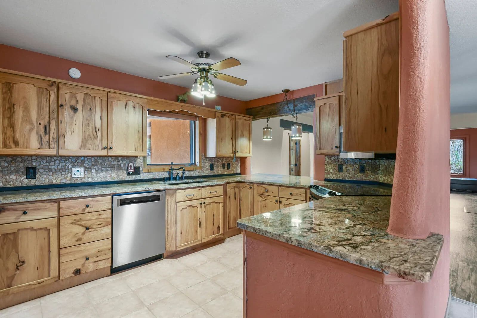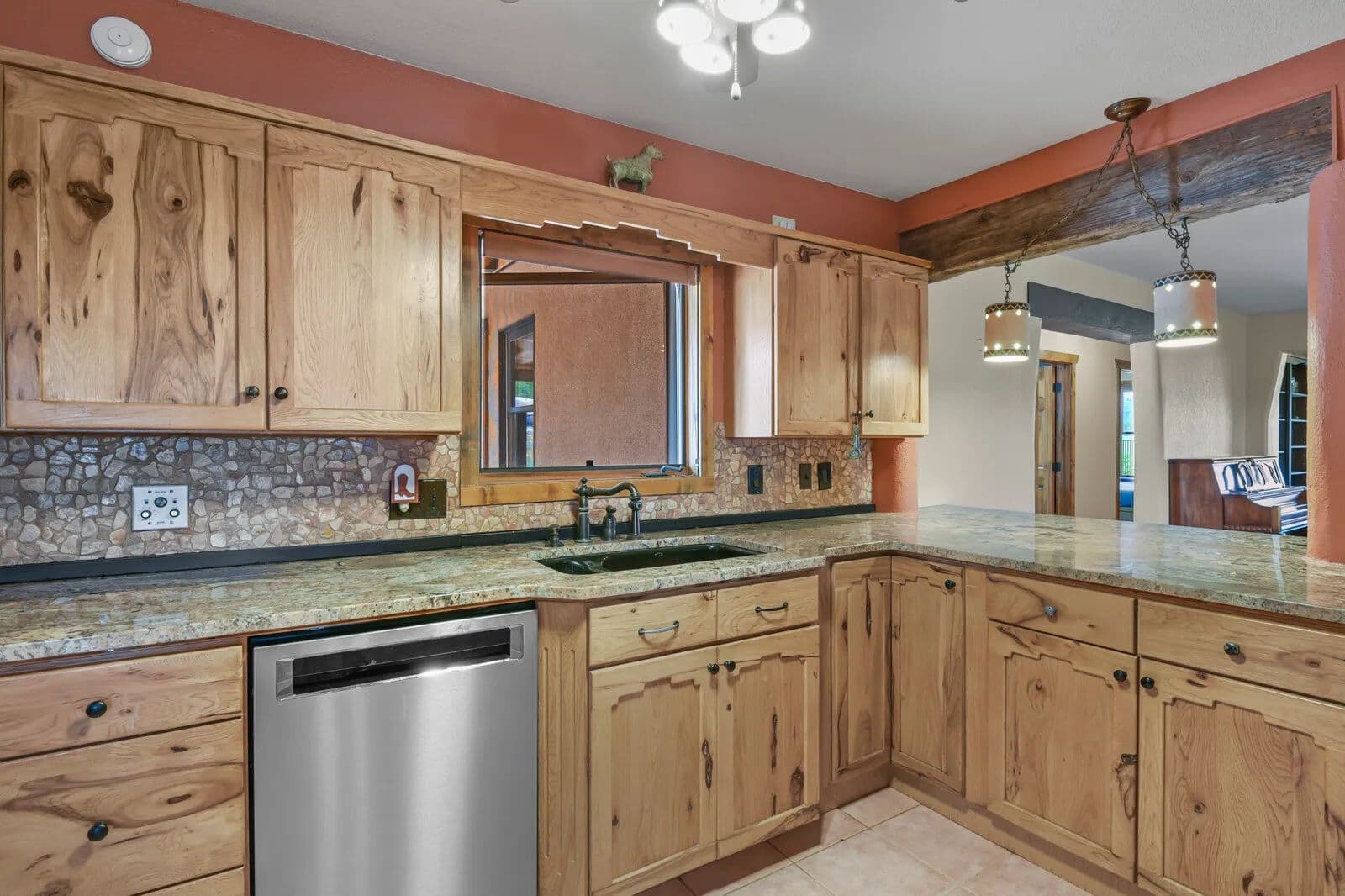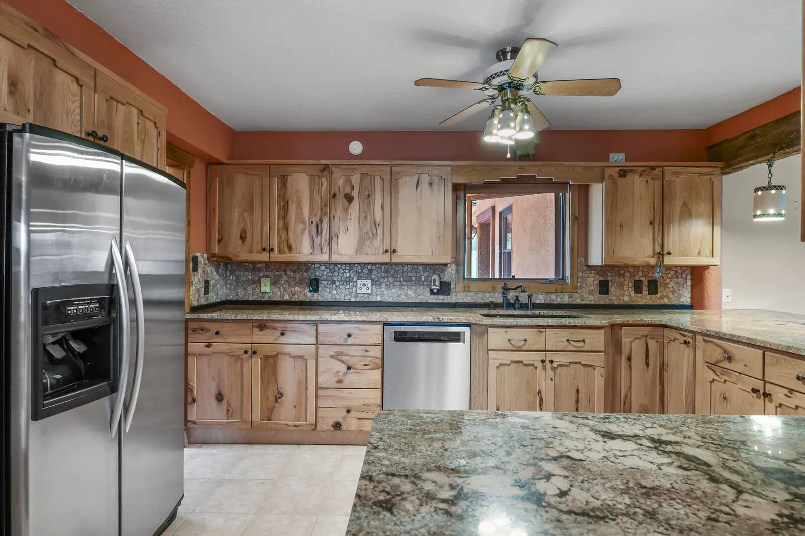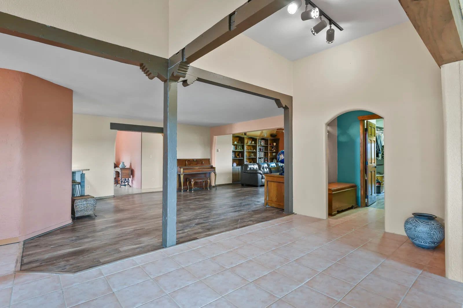 The main residence is a charming 2,915± square-foot Spanish-style adobe home, showcasing classic adobe character with exposed wood beams, luxury vinyl plank flooring, and tile throughout the main level. This level features a large family room, separate living room, dining room, laundry room, and a kitchen with a spacious walk-in pantry. Upstairs, a third bedroom and full bathroom with a private outdoor entry provide excellent flexibility—ideal for guests, a rental unit, multigenerational living, or an office/studio. The home is largely self-sufficient, powered in part by a 72-panel solar array.
