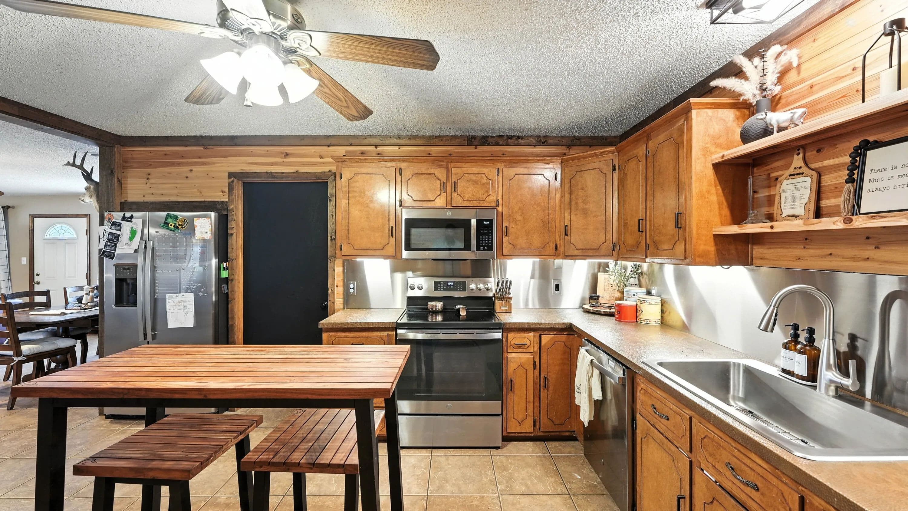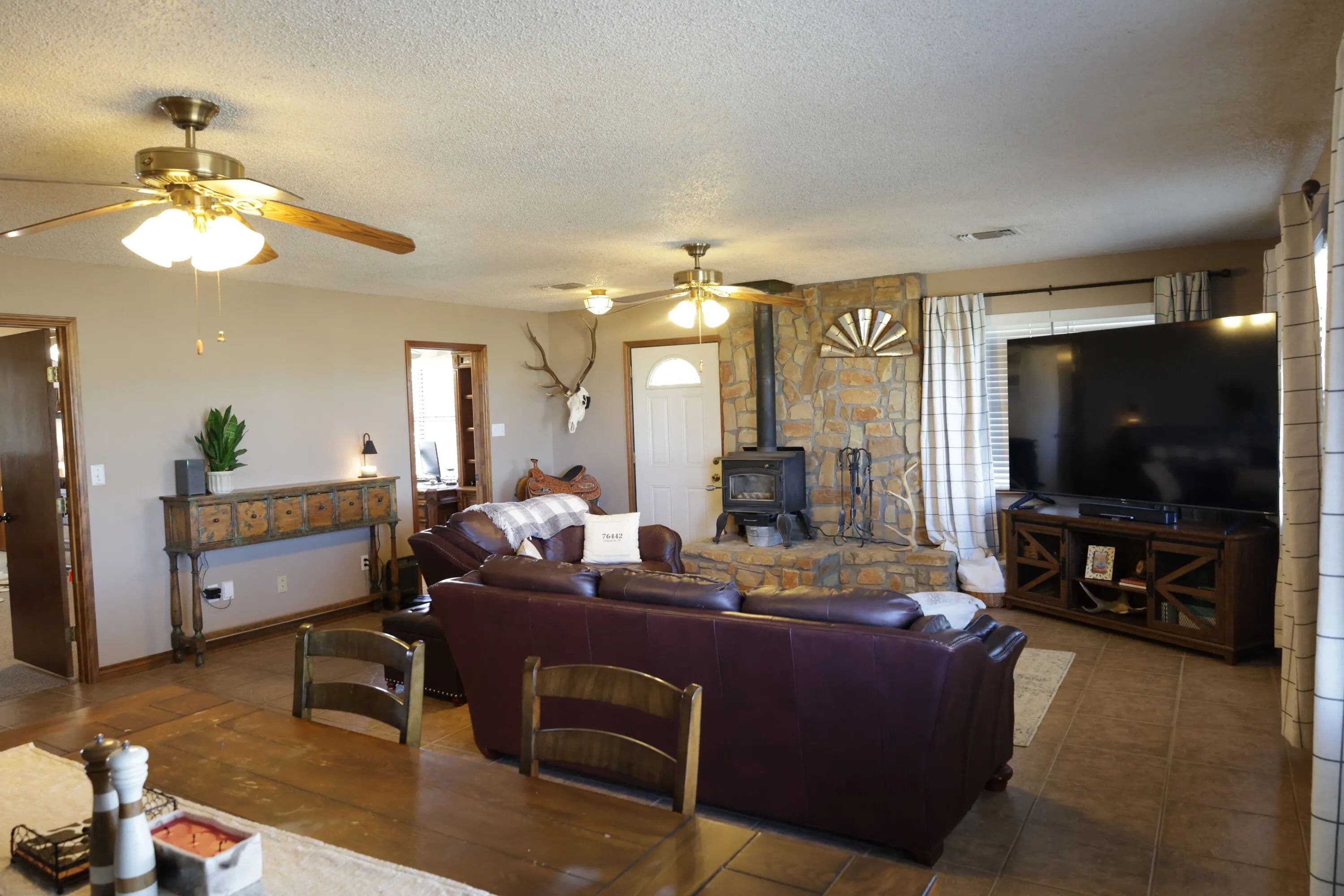 The 2,100 sq. ft. home features 3 bedrooms, 2 bathrooms, and a versatile bonus room currently serving as an office. The open-concept living and kitchen area is ideal for entertaining family and friends. Completely remodeled in 2024, the kitchen showcases custom hammered copper countertops, a stainless-steel backsplash, oversized walk-in pantry, and upgraded finishes that add warmth and elegance. A spacious 240 sq. ft. mudroom/utility/workout room provides extra convenience and keeps clutter out of the main living spaces. Step outside to enjoy Texas sunsets, plenty of parking, and a 20' x 24' carport—perfect for gatherings or quiet evenings at home.