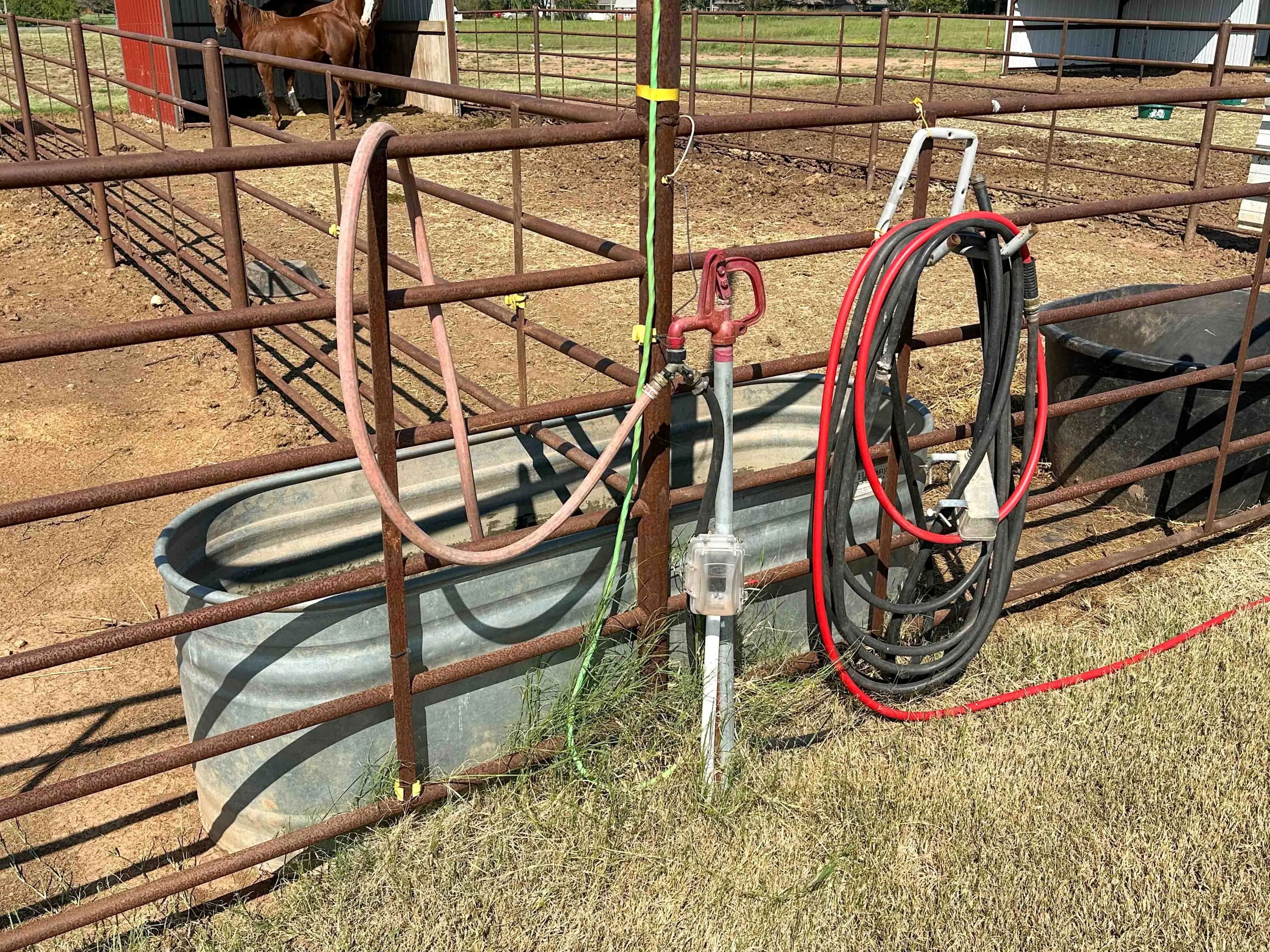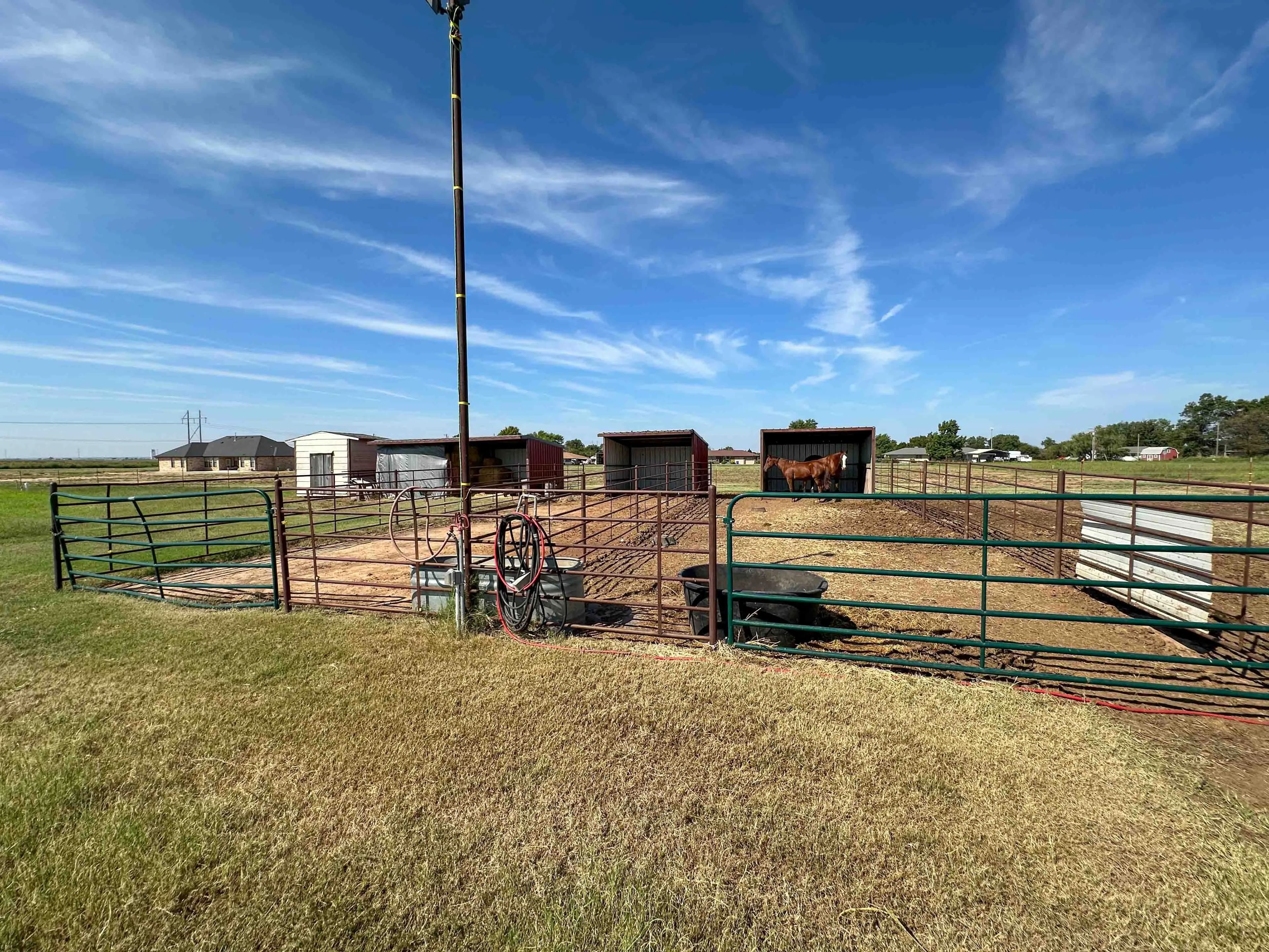 4 horse runs, each with covered shelters and water hydrant access