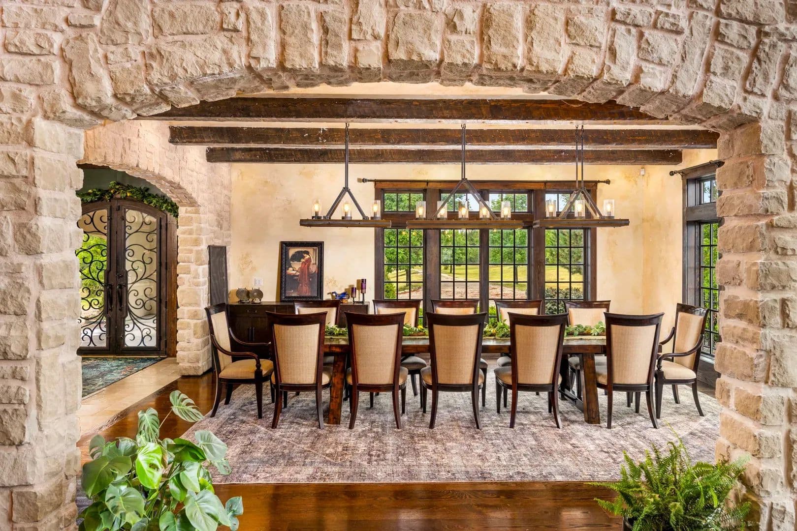 Step foot into this magnificent home where superior craftsmanship meets cutting-edge technology. Soaring 20-foot ceilings with hand-distressed wooden beams frame the Great Room, while the chef’s kitchen gleams beneath its distinctive copper-tile ceiling. Throughout the home, you’ll discover stone walls, arched openings, and Venetian plaster finishes that create an atmosphere of timeless elegance.