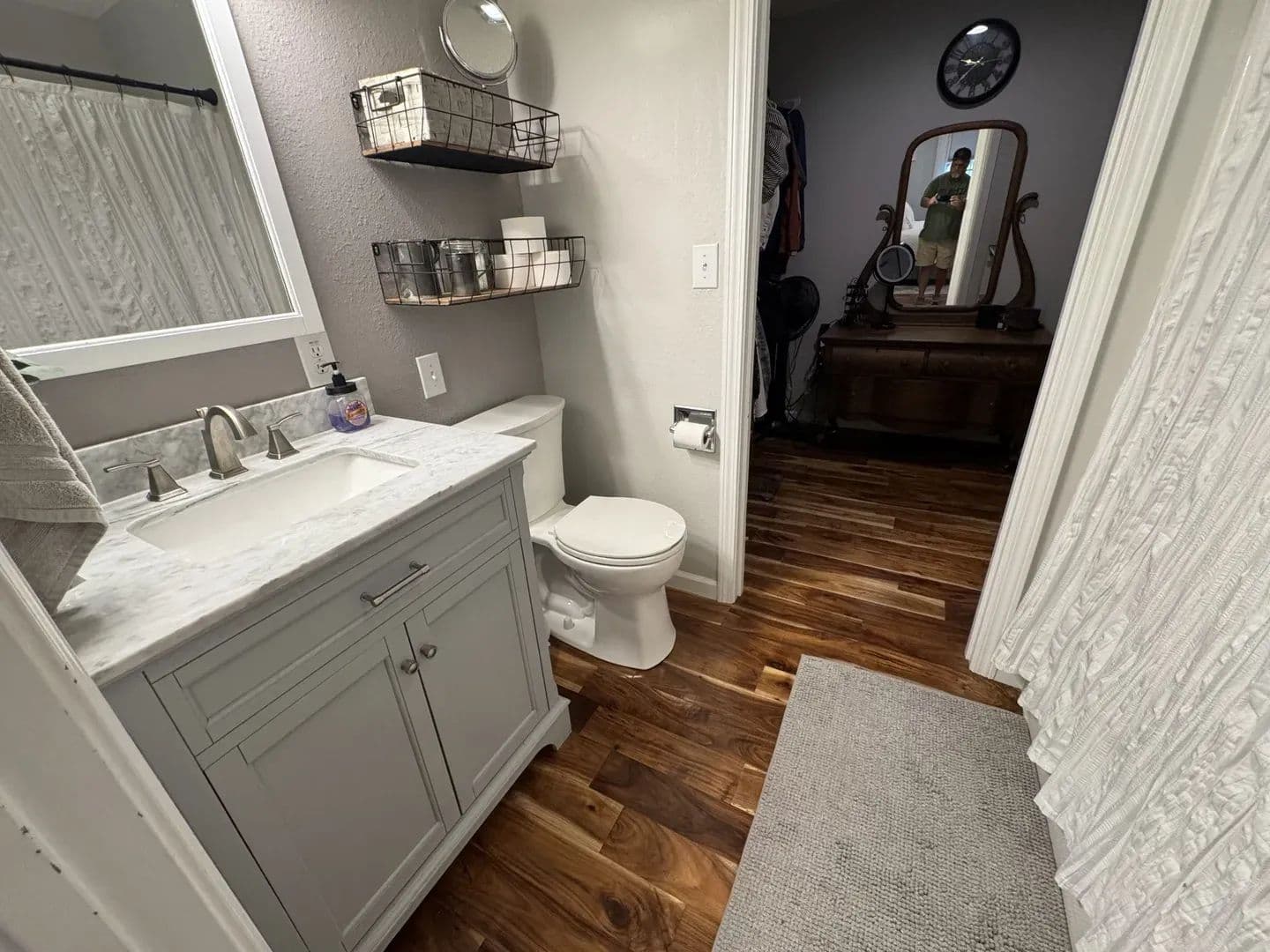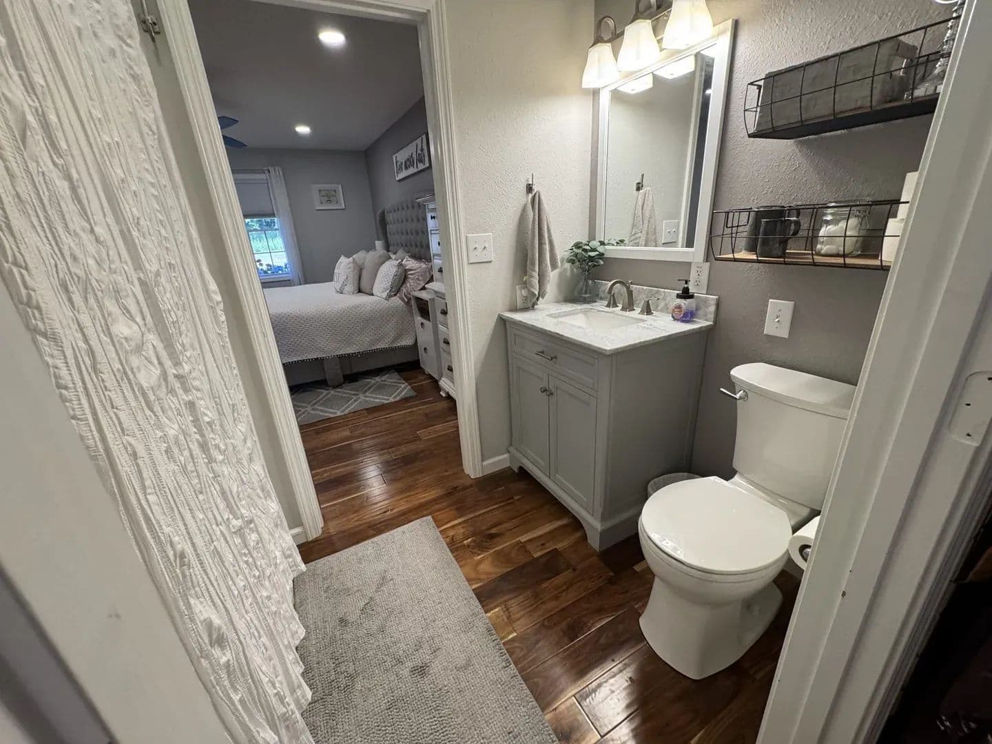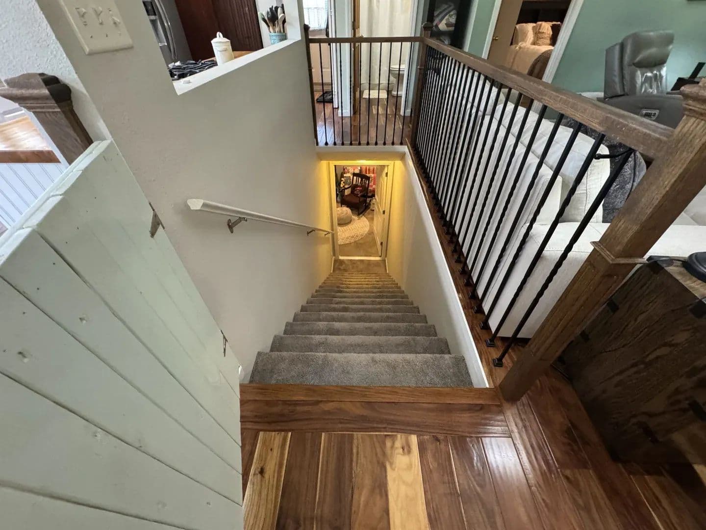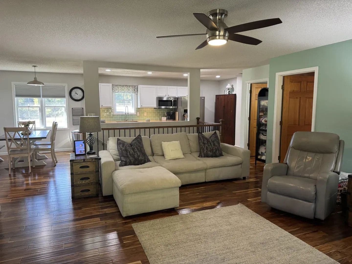 Country Living Close to Town! Enjoy the best of both worlds with this 3-bedroom, 2-bath home on 8.23 + /- acres—just minutes from all the amenities of Mt. Vernon. Step inside and you’ll feel right at home with the open-concept living, dining, and galley kitchen featuring custom cabinetry, a farmhouse sink, and butcher block countertops. Hardwood floors run through most of the home, with cozy carpet in one upstairs bedroom. The home has 2 bedrooms upstairs with a ensuite master