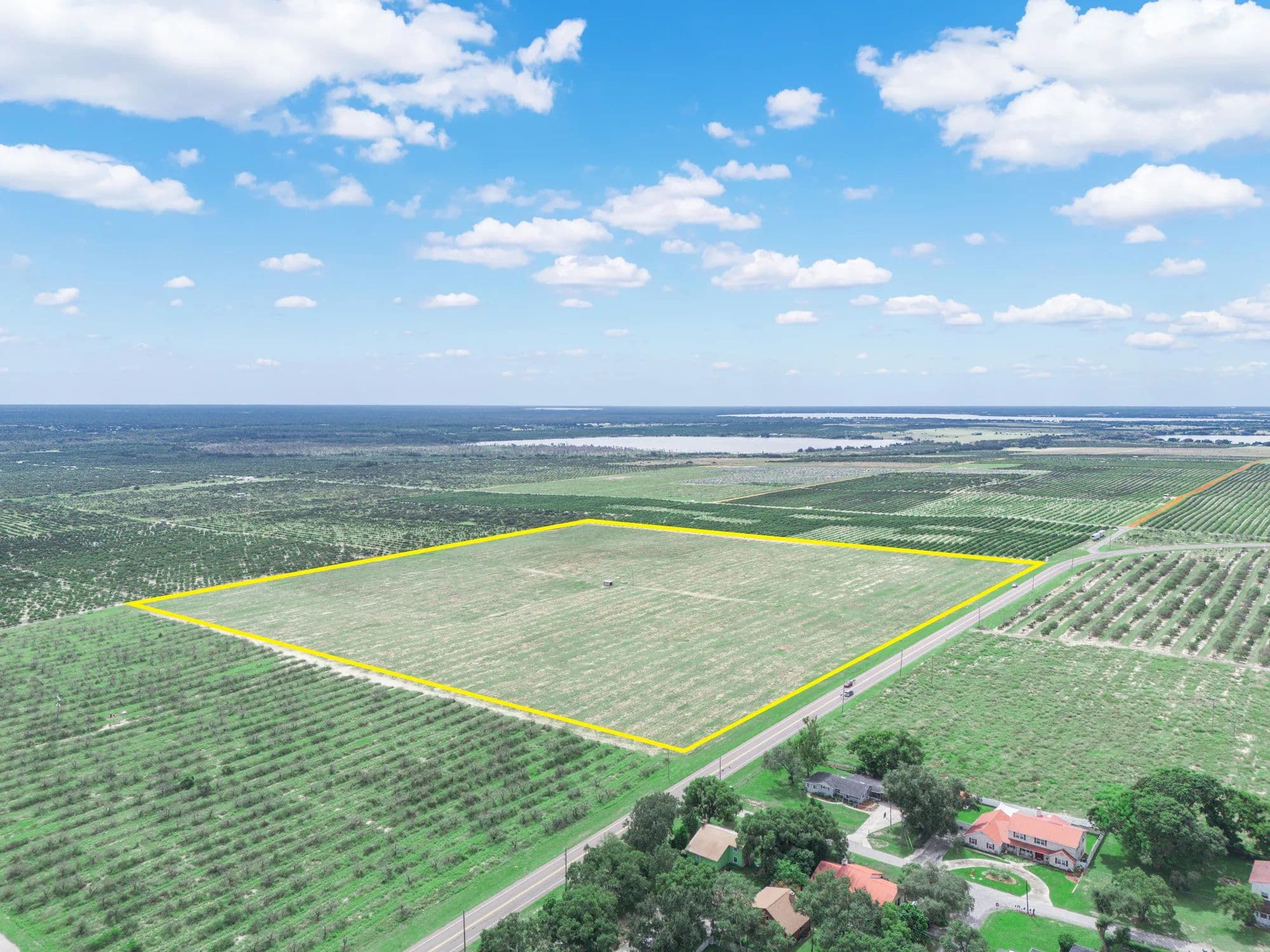39 ± acre former citrus grove that has been cleared. The northwest 10 acres are zoned for up to 5 units per acre. The balance of the property is agriculture land use and will allow one dwelling per five acres or 10 farmworker units per five acres. Located near one of the ridge’s highest points, this property offers wide views in all directions. The gradual eastern slope provides clear sunrise visibility, with Crooked Lake to the west and Lake Moody to the south.