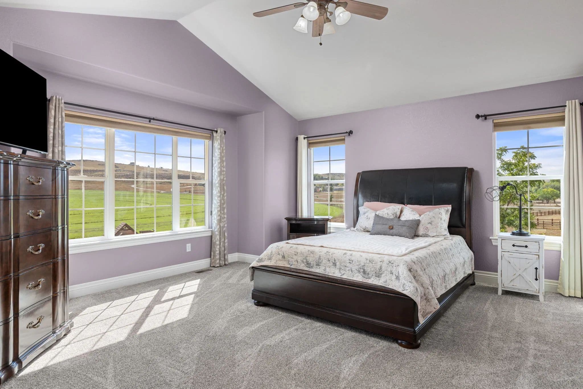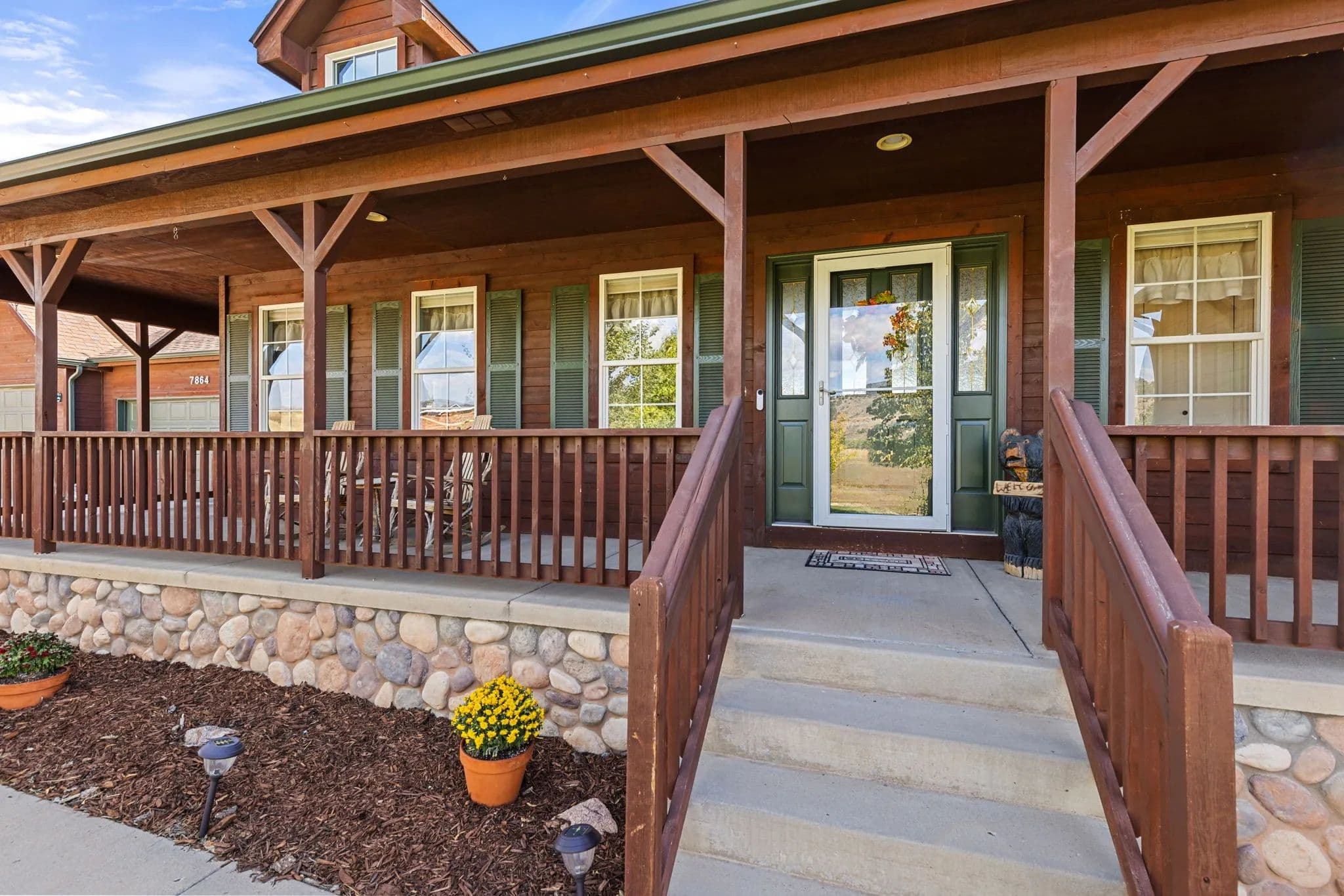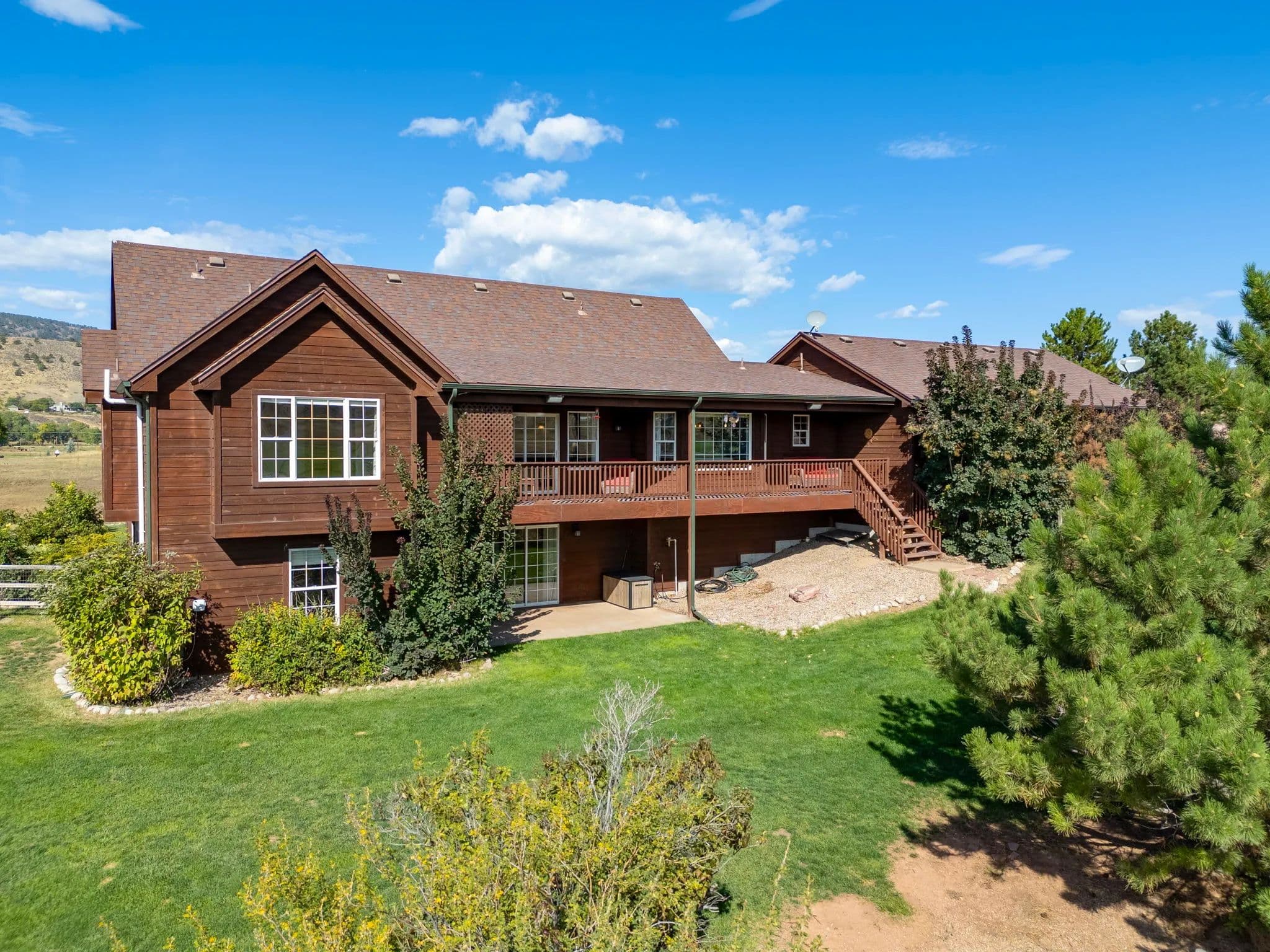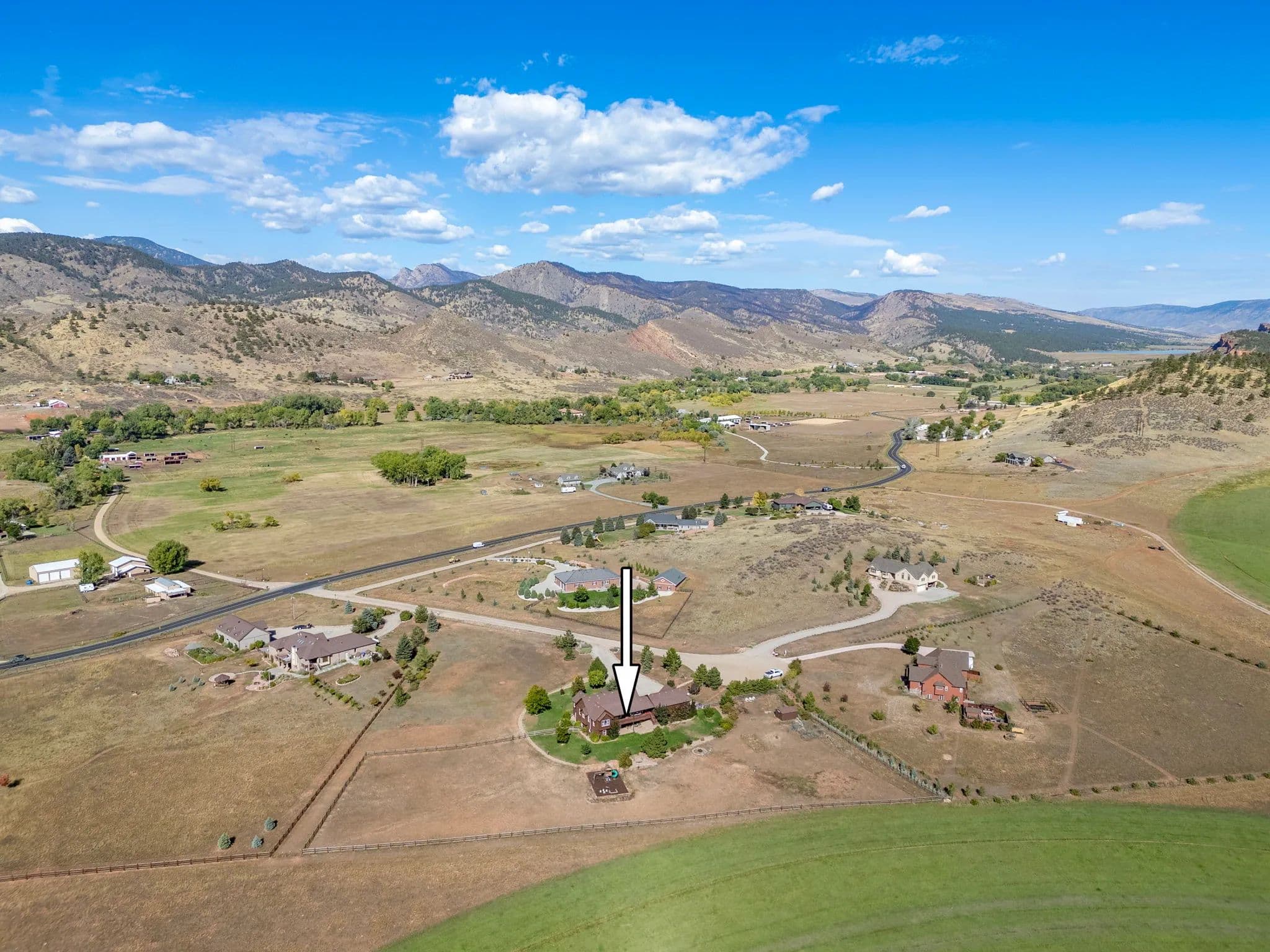 Discover a rare opportunity to own this beautifully maintained 3,643 sq ft ranch-style home in one of Loveland's most desirable west-side locations. Nestled on 3 acres and backing to hundreds of acres of protected conservation land, the property offers both privacy and spectacular views. From the wraparound front deck, enjoy breathtaking foothills vistas, while the rear covered deck and patio frame expansive farmland and open space. Wildlife is frequently seen in the area, with elk and other native species often passing through. Designed for comfortable main-level living, the home features 3 bedrooms and 3 bathrooms on the main level, vaulted ceilings, abundant natural light, and seamless indoor-outdoor flow. The walk-out lower level adds exceptional versatility with a spacious family room, large bedroom, an additional new bathroom, and a convenient mini-kitchen-ideal for guests or multi-generational living. In addition, the home includes an oversized 910 sq ft three-car garage, providing ample room for vehicles, storage, or a workshop. East- and west-facing decks capture both sunrises and sunsets, making every day a chance to enjoy Colorado's natural beauty. The location blends the tranquility of a country lane with unbeatable convenience-just 20 minutes from Downtown Loveland, 40 minutes from Estes Park, 50 minutes to the entrance of Rocky Mountain National Park, and one hour from Denver International Airport. Outdoor enthusiasts will also appreciate the proximity to Carter Lake, Flatiron Reservoir, Pinewood Reservoir, and the future Chimney Hollow Reservoir opening in 2027. This is a home and setting that must be experienced in person to truly appreciate. Properties on Heart J Trail seldom come to market-don't miss your chance to make this serene retreat your own.