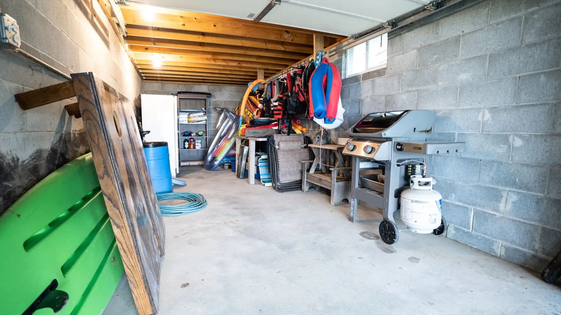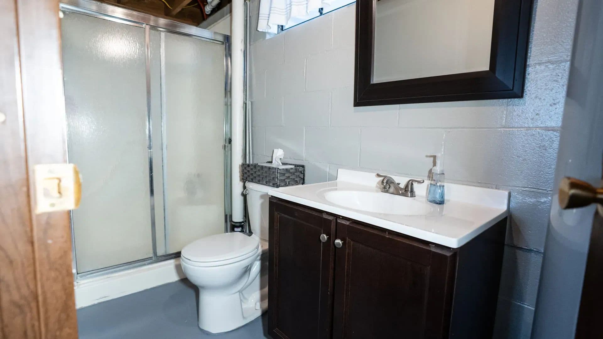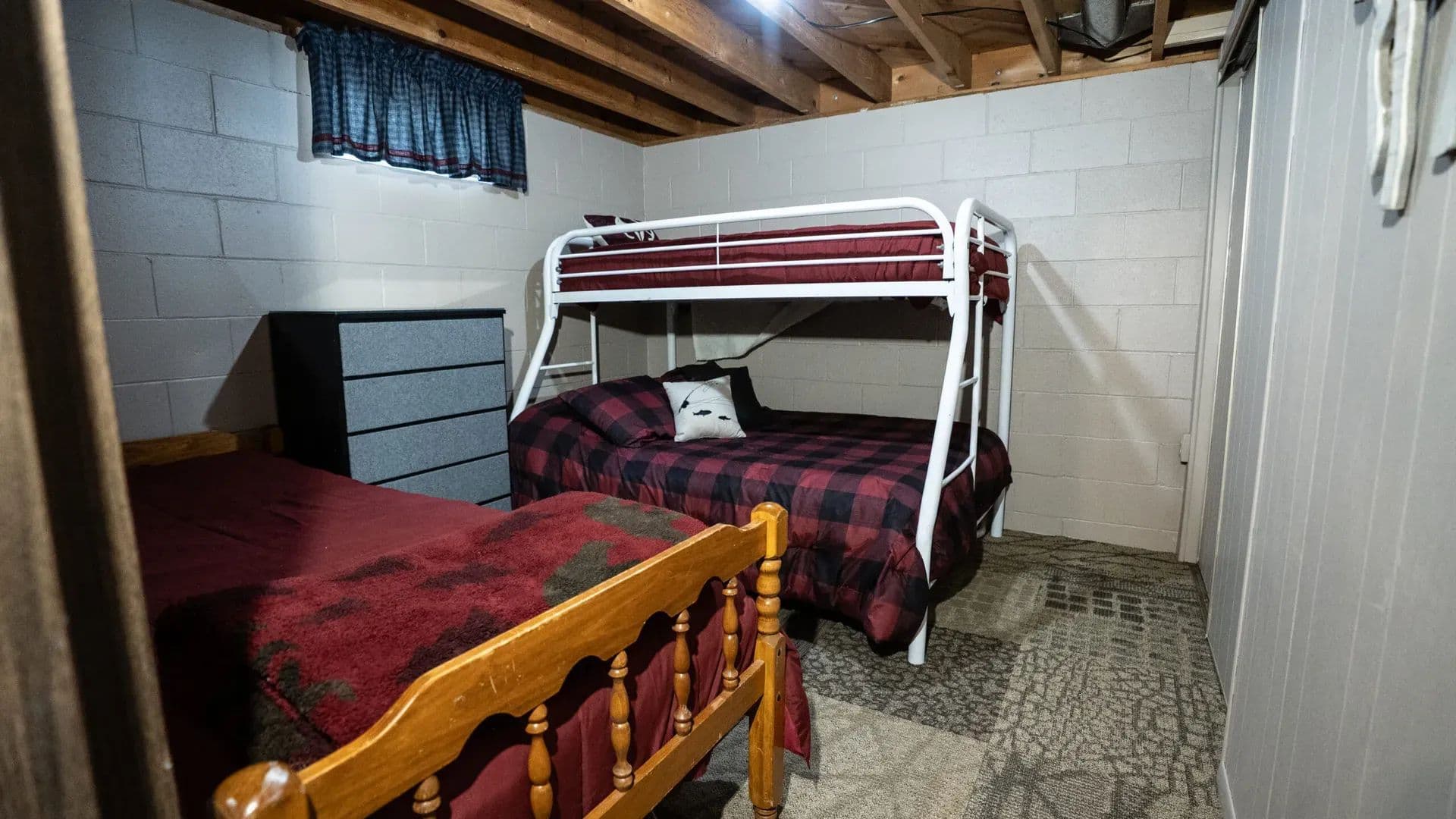 The walk-out basement is a great feature to enjoy indoor-outdoor living. The painted block floor provides practicality in the entry/sitting area allowing it to function like a wet room. The lower level also features 2 more bedrooms (basement bedframes and beds will stay) and another 3/4 bath with walk-in shower.