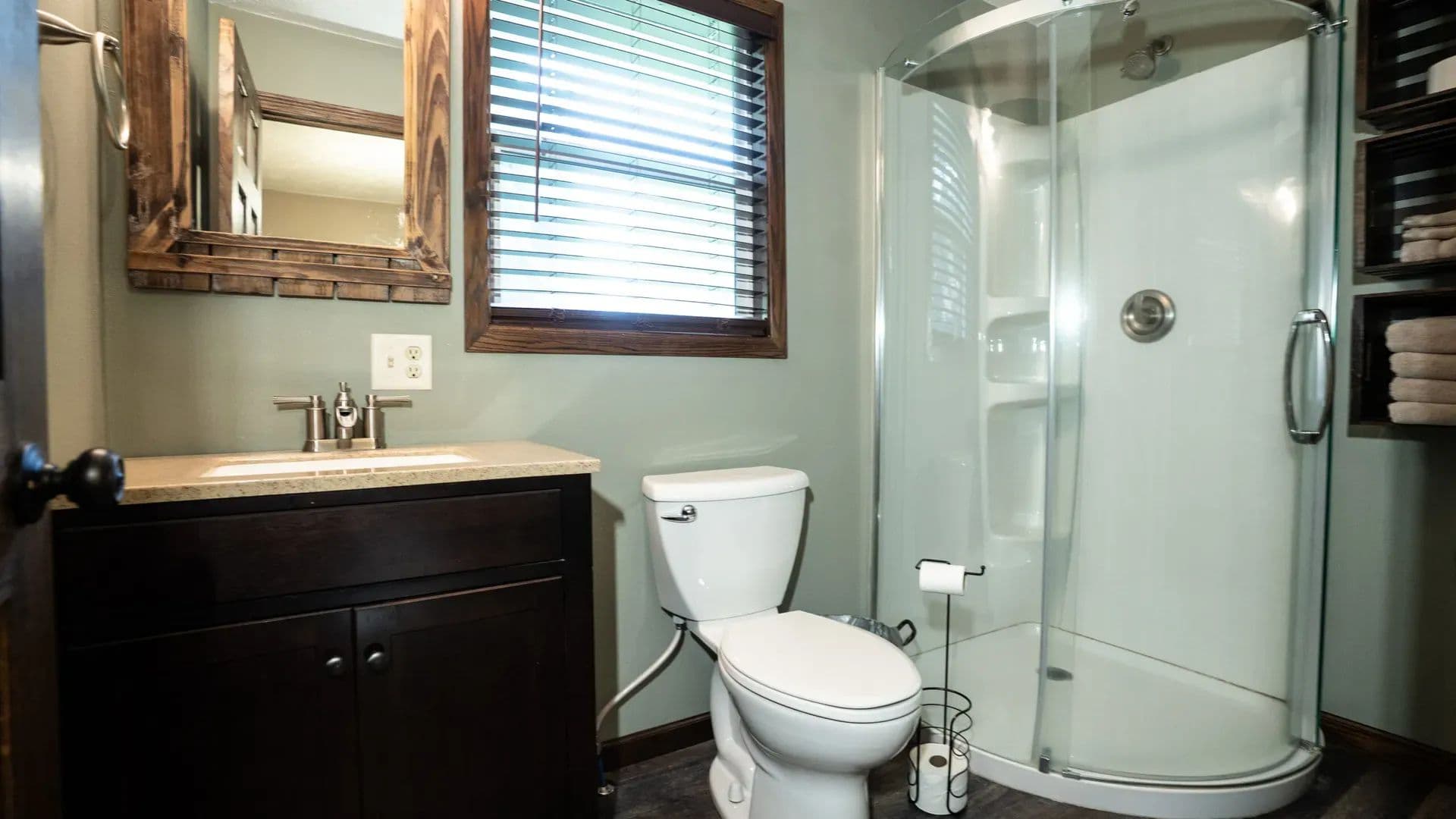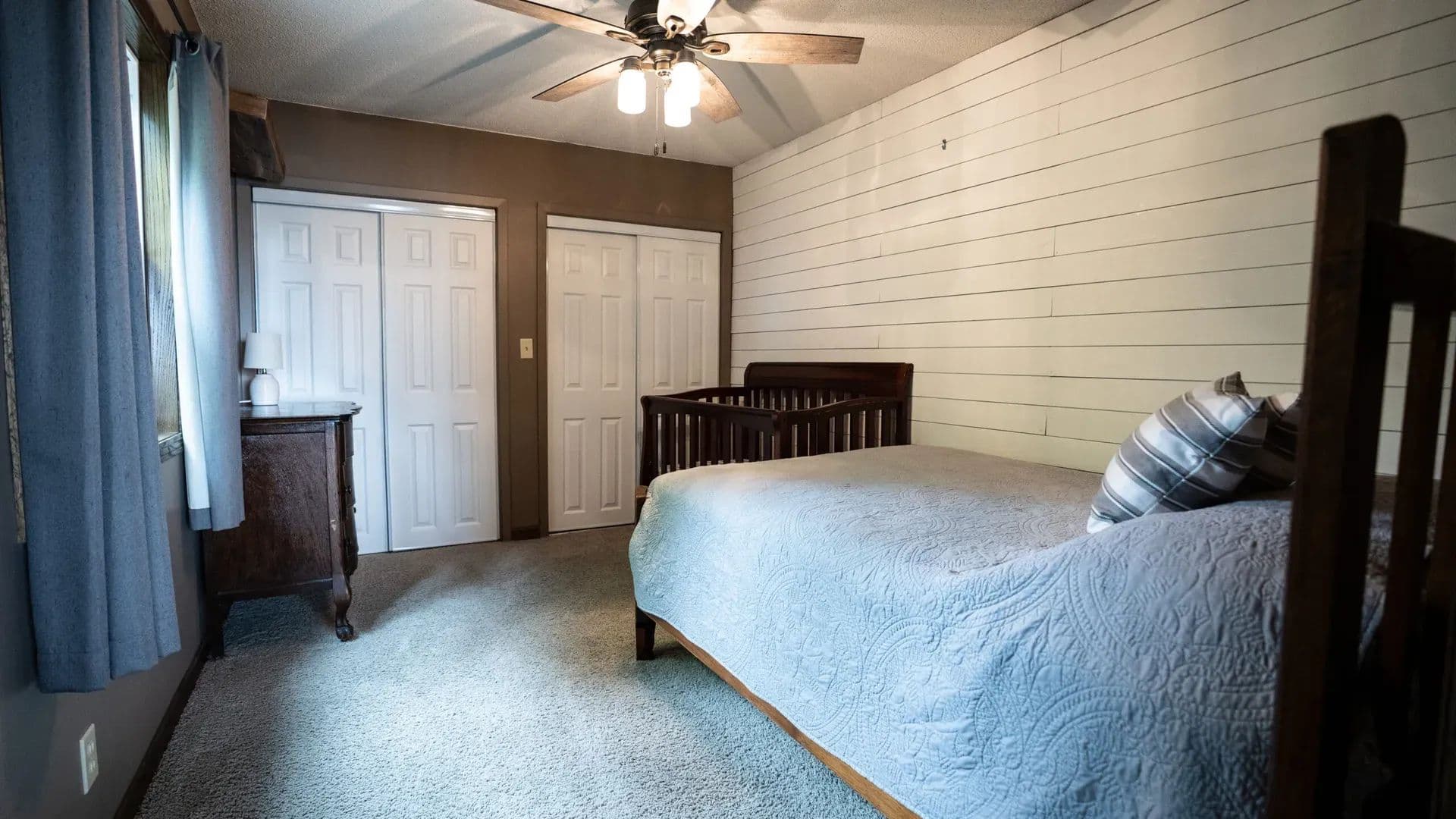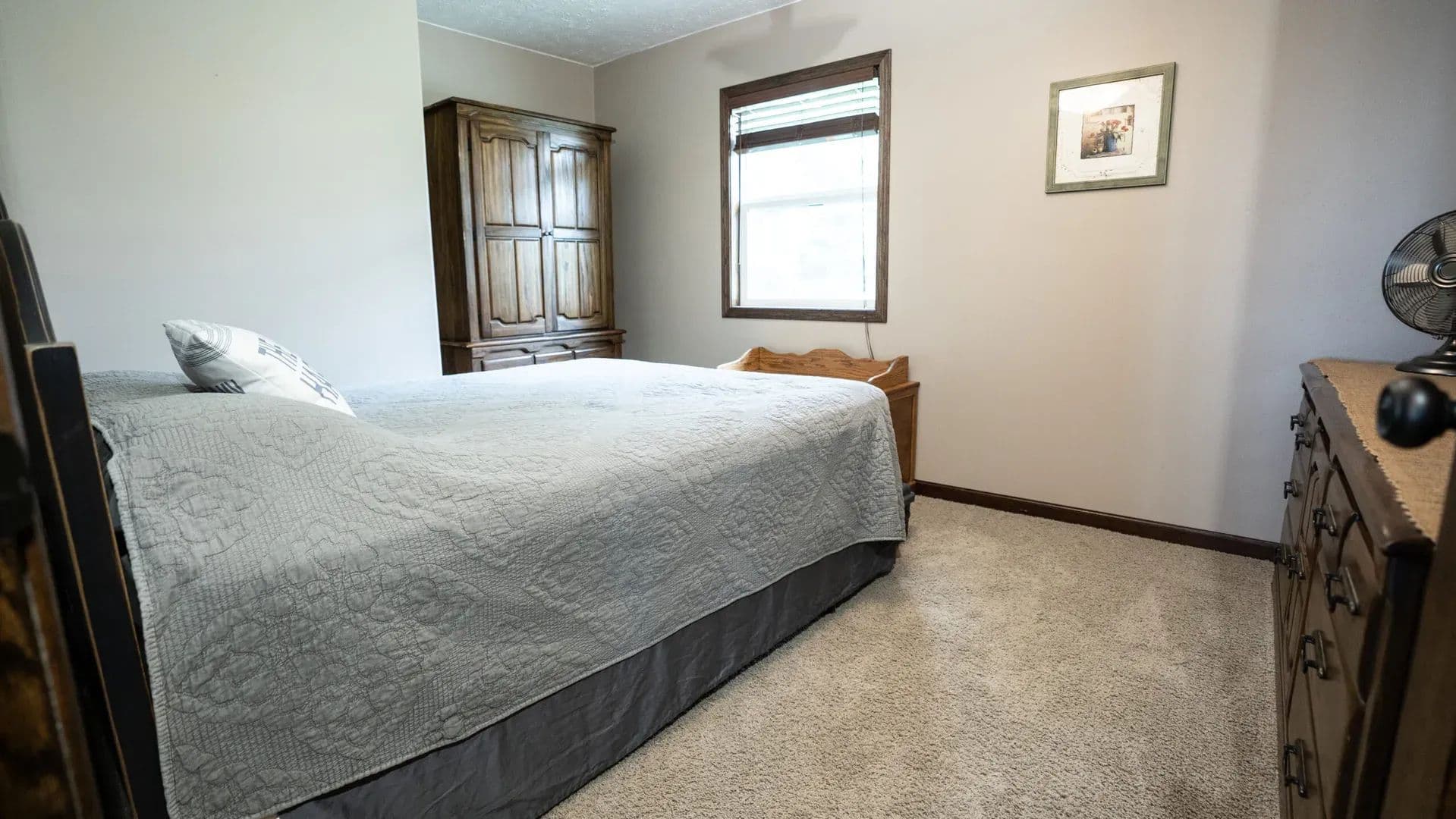 The walk-out basement is a great feature to enjoy indoor-outdoor living. The painted block floor provides practicality in the entry/sitting area allowing it to function like a wet room. The lower level also features 2 more bedrooms (basement bedframes and beds will stay) and another 3/4 bath with walk-in shower.