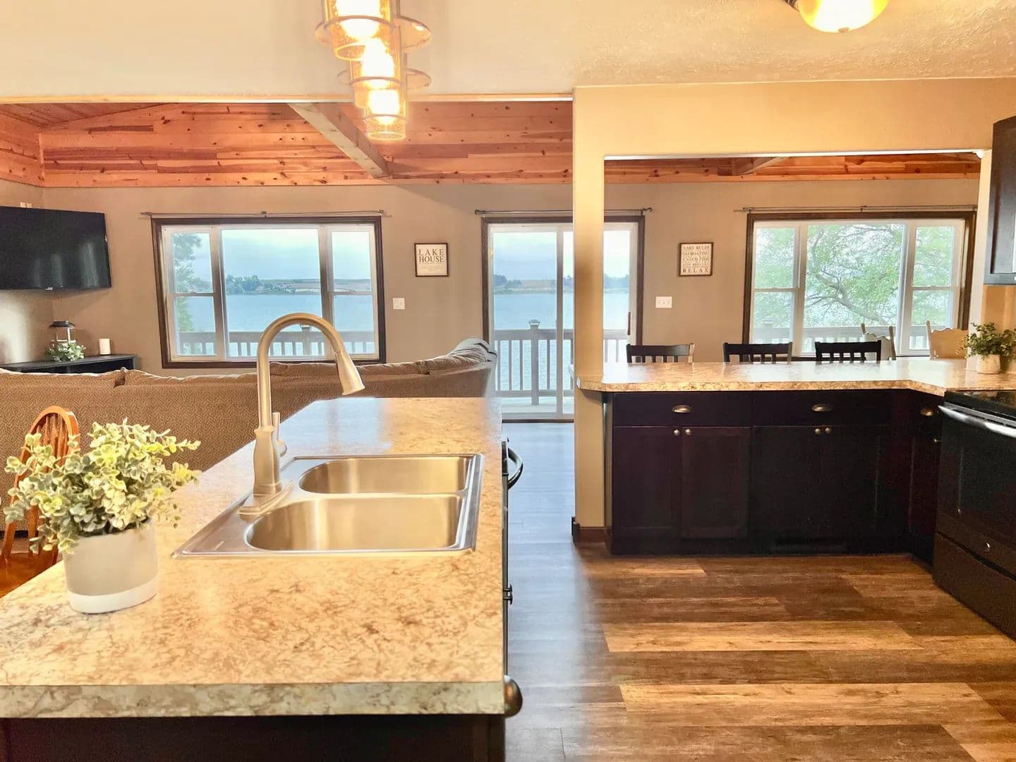 Improvements The interior of this property (1224 sq ft) has been fully remodeled with modern updates that highlight both function and style. The open-concept design connects the kitchen, dining, and living areas enhancing the spacious feel and unobstructed lake views. A bright and airy sunroom (288 sq ft) extends your living space. The kitchen offers great countertop space, plus a pantry. All kitchen appliances will stay.