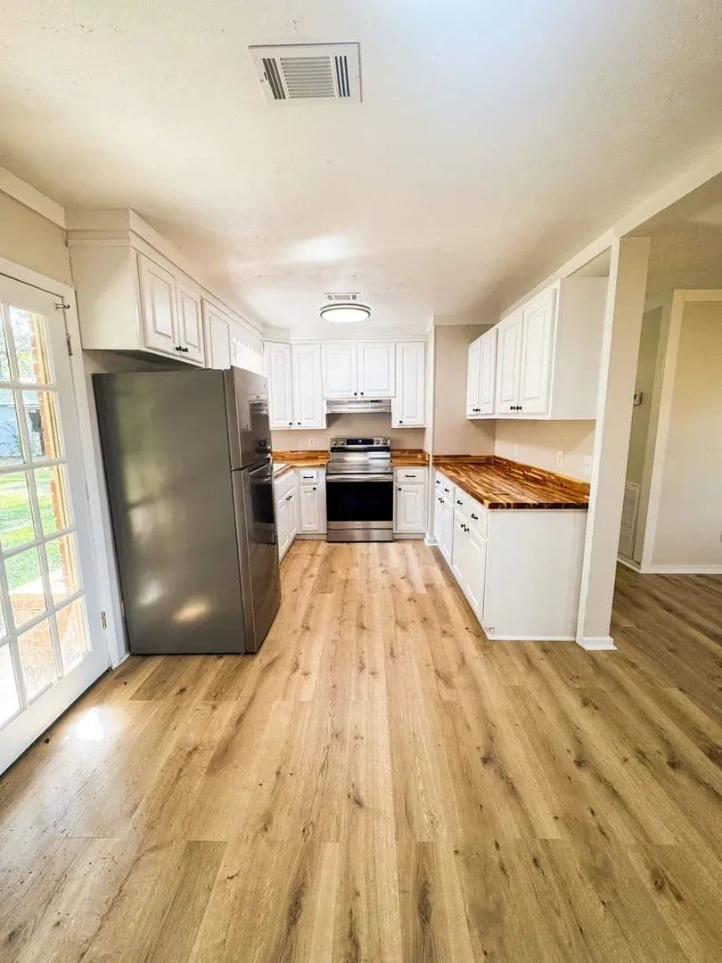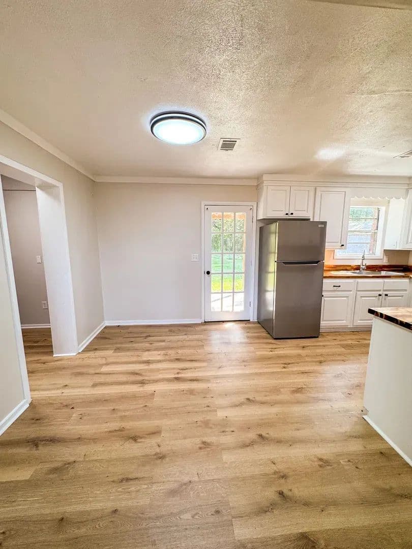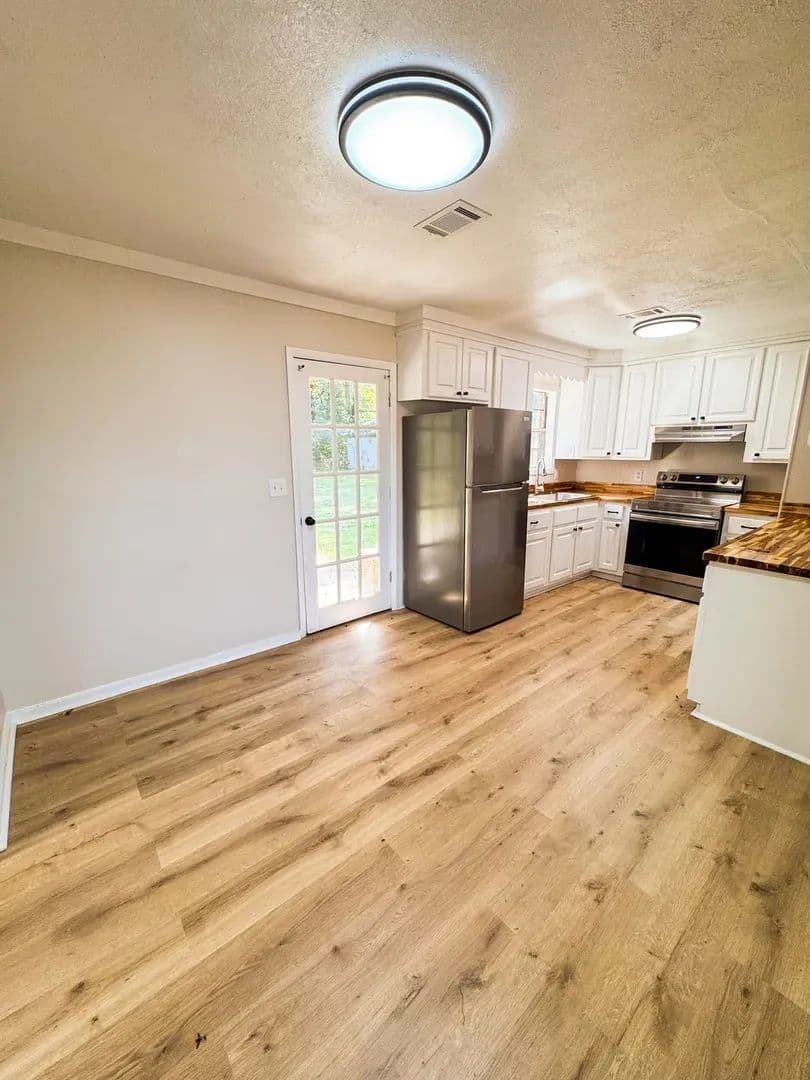 Discover your own slice of country living with this charmingly updated 3-bedroom, 1-bath home. Blending modern convenience with timeless character, this property sits on a quiet, private lot—perfect for anyone looking for both comfort and room to breathe. Inside, you’ll love the inviting open floor plan, featuring new luxury vinyl plank flooring, stylish lighting, and a completely remodeled kitchen with sleek countertops and stainless-steel appliances.