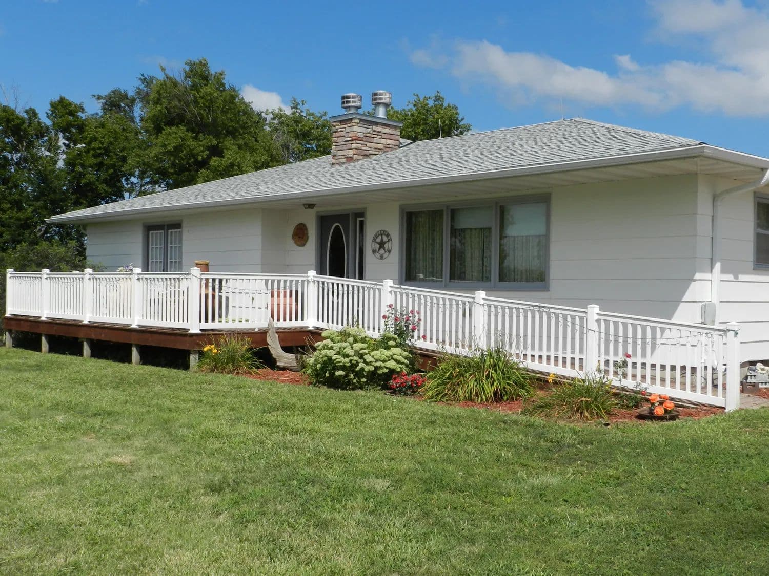 Description: Here is a very nice acreage on the Northeast edge of Campbell, Nebraska. The house is ADA compliant with a wheel chair elevator between floors and a wheel chair accessible shower. On the main floor is 1 bedroom, kitchen, and 1.5 baths. In the basement is 1 bathroom with large wheel chair roll in shower and dual shower heads, family room, 2 bonus rooms, and mechanical room. The house offers look through fireplaces on both the main floor and in the basement. The property has a detached 2-car garage, 3 open front sheds with panel fencing/pens, and a large Quonset building (used for hay storage). Also on the property is a large lighted machine shed, used as an indoor arena, with heat, air compressor, tack rooms, and 4 stalls. Water and electrical are accessible at each pen. Behind the house is approximately 46 acres of grass, with smooth wire fences that are in excellent condition.